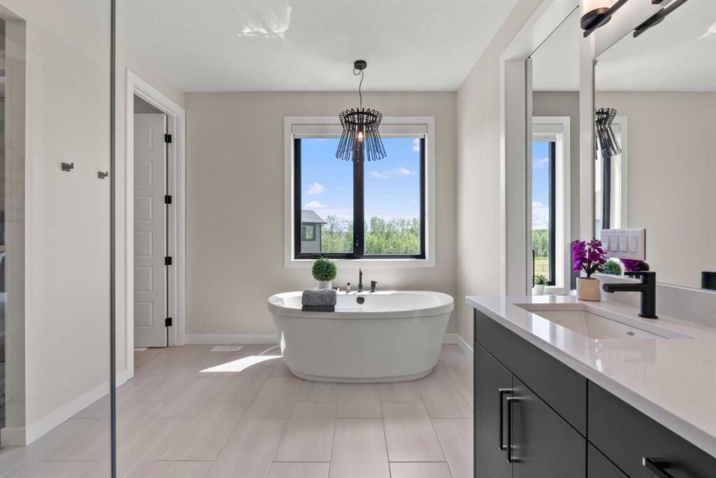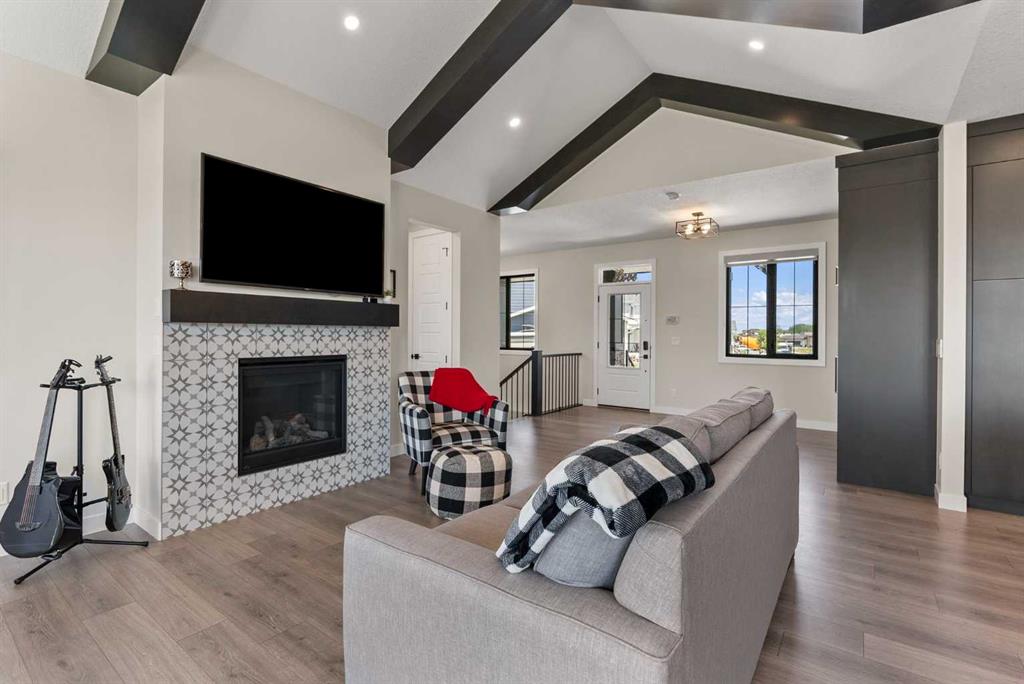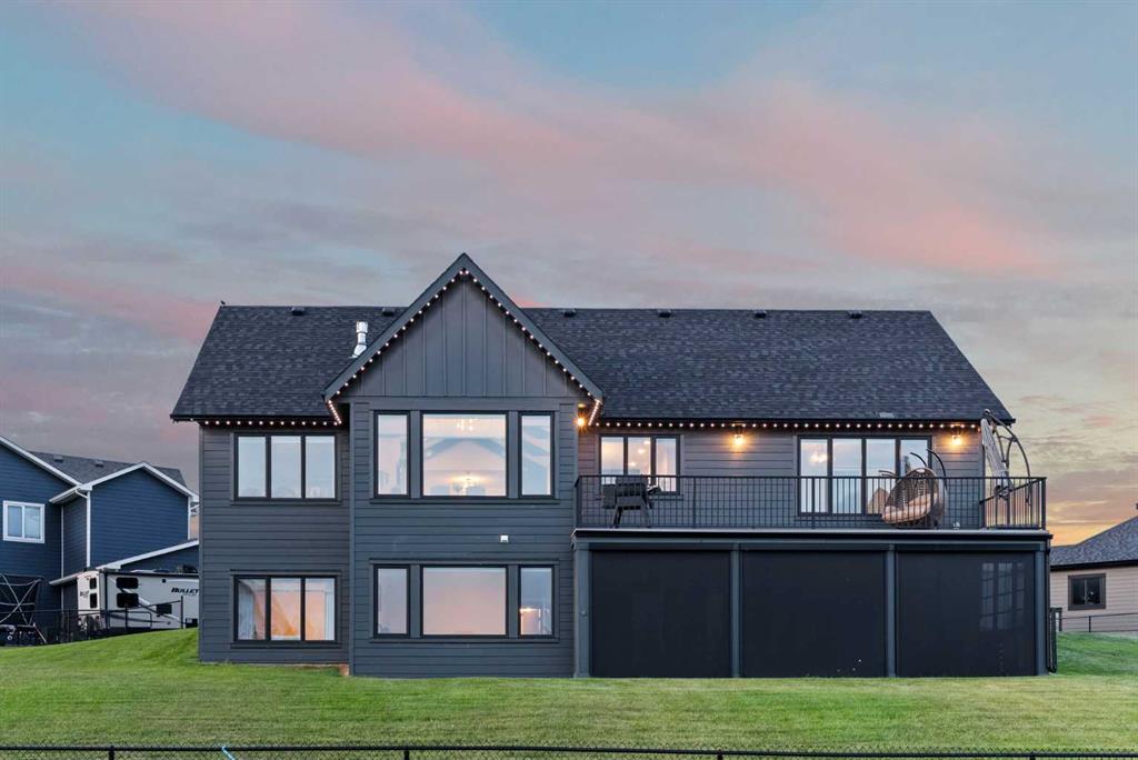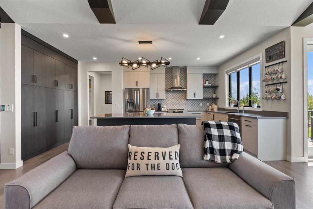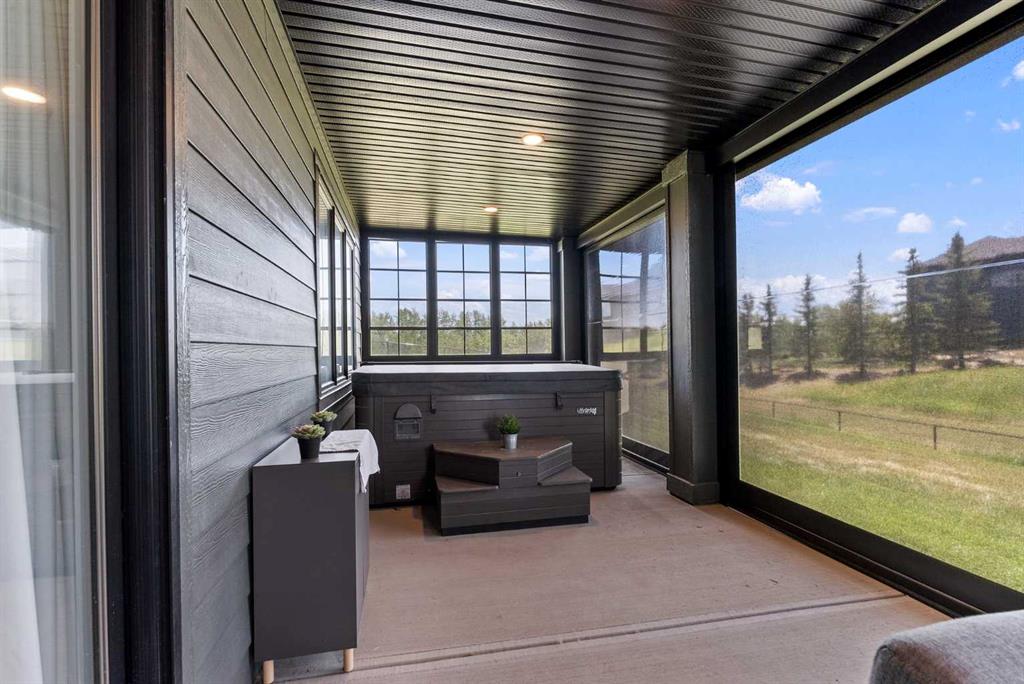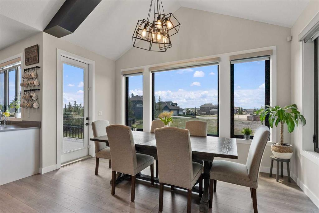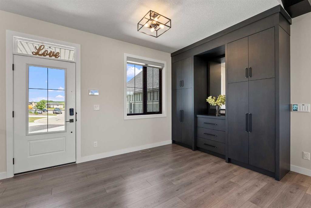 Discover this exceptional home just outside Cochrane in Monterra. Offering nearly 3,400 sq ft of thoughtfully designed living space on a expansive 0.45-acre lot, it delivers the high-end essentials buyers expect. The main floor presents an open, airy layout with vaulted ceilings that create a bright, inviting atmosphere. The chef’s kitchen features a large island and soft-close cabinetry, seamlessly flowing into the dining and living areas—ideal for hosting family and friends. The primary suite serves as a private sanctuary, highlighted by an elegant ensuite that includes a soaker tub, a shower, and dual vanities, complemented by a generous walk-in closet with built-in organizers. Convenience is evident with a well-appointed laundry room located along the corridor to the heated, insulated triple garage. Step outside to expansive decks—12×28 feet on both levels—perfect for outdoor entertaining. The lower deck includes a hot tub, offering a relaxing retreat with stunning mountain views. Throughout the home, you’ll find custom built-ins, including a dedicated office with custom cabinetry and a built-in pantry for ample storage.