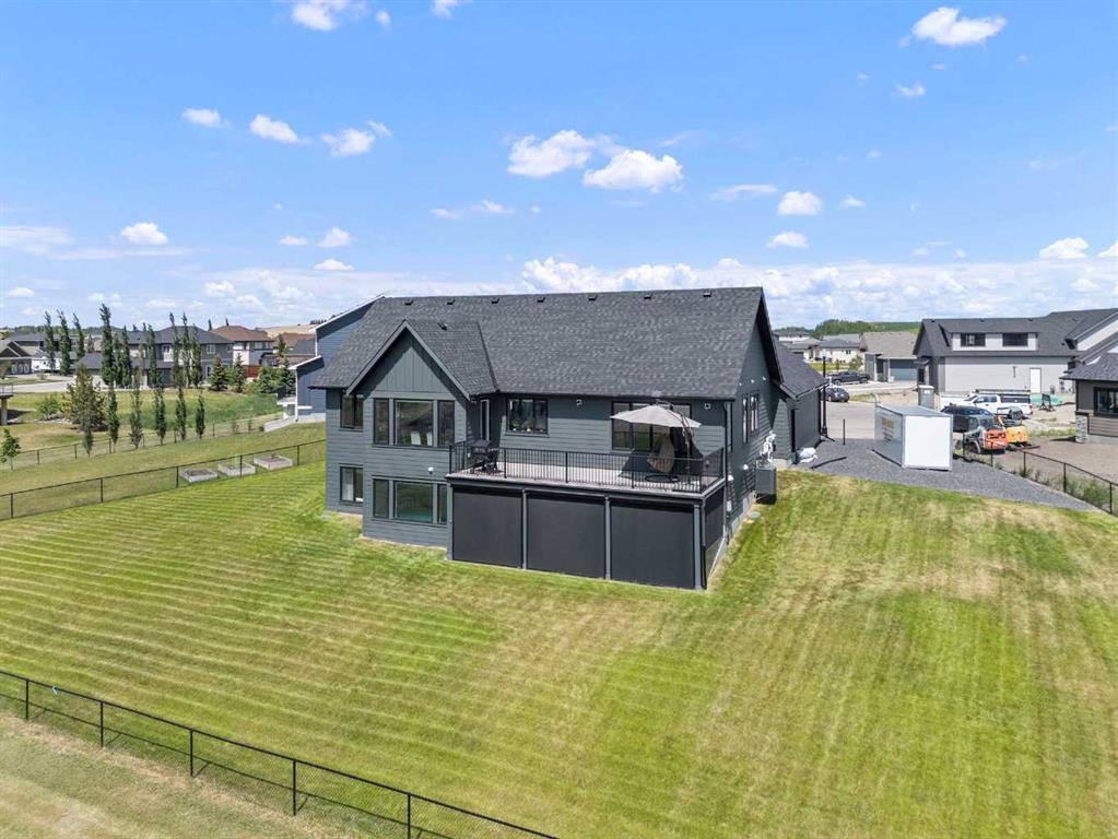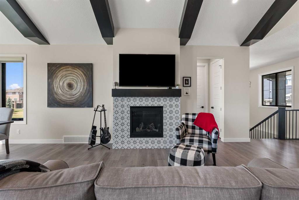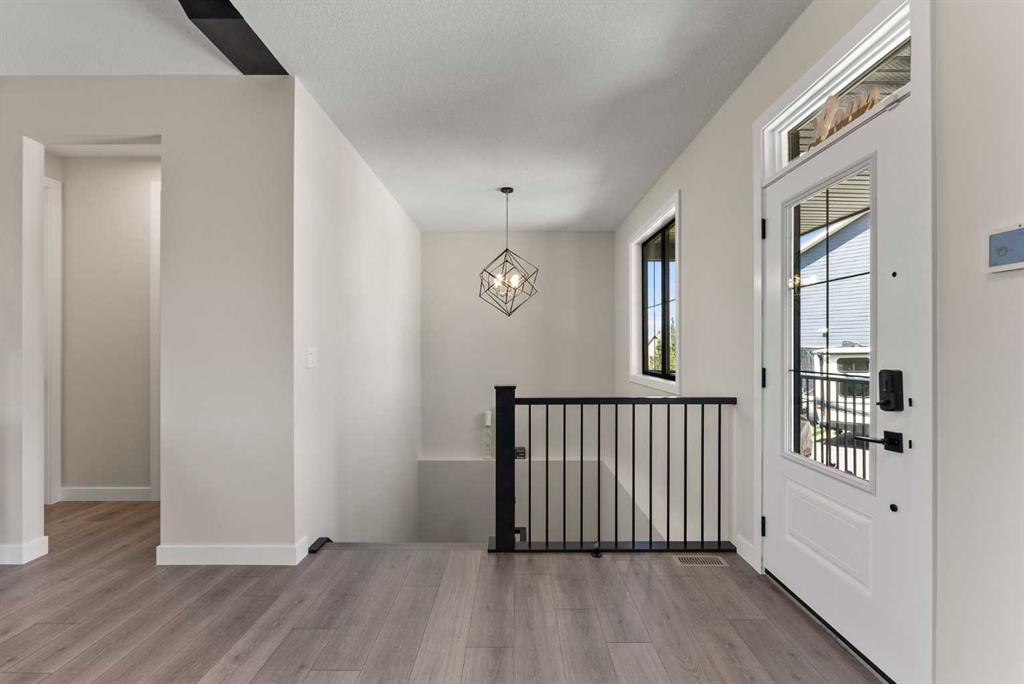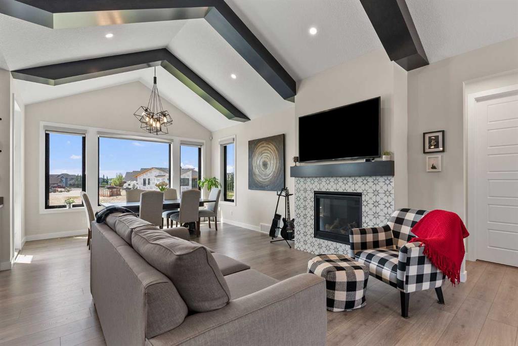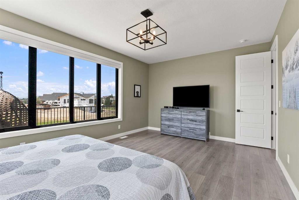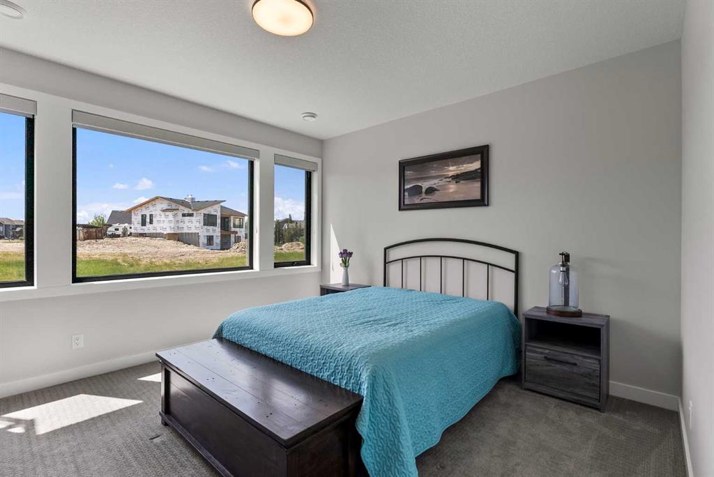 Discover this exceptional home just outside Cochrane in Monterra. Offering nearly 3,400 sq ft of thoughtfully designed living space on a expansive 0.45-acre lot, it delivers the high-end essentials buyers expect. The main floor presents an open, airy layout with vaulted ceilings that create a bright, inviting atmosphere. The chef’s kitchen features a large island and soft-close cabinetry, seamlessly flowing into the dining and living areas—ideal for hosting family and friends. The primary suite serves as a private sanctuary, highlighted by an elegant ensuite that includes a soaker tub, a shower, and dual vanities, complemented by a generous walk-in closet with built-in organizers. Convenience is evident with a well-appointed laundry room located along the corridor to the heated, insulated triple garage. Step outside to expansive decks—12×28 feet on both levels—perfect for outdoor entertaining. The lower deck includes a hot tub, offering a relaxing retreat with stunning mountain views. Throughout the home, you’ll find custom built-ins, including a dedicated office with custom cabinetry and a built-in pantry for ample storage.
