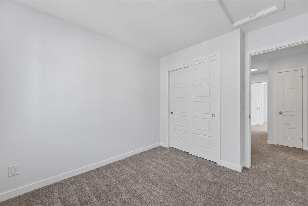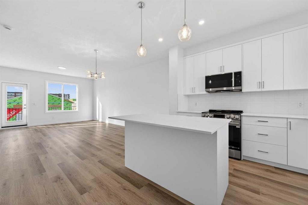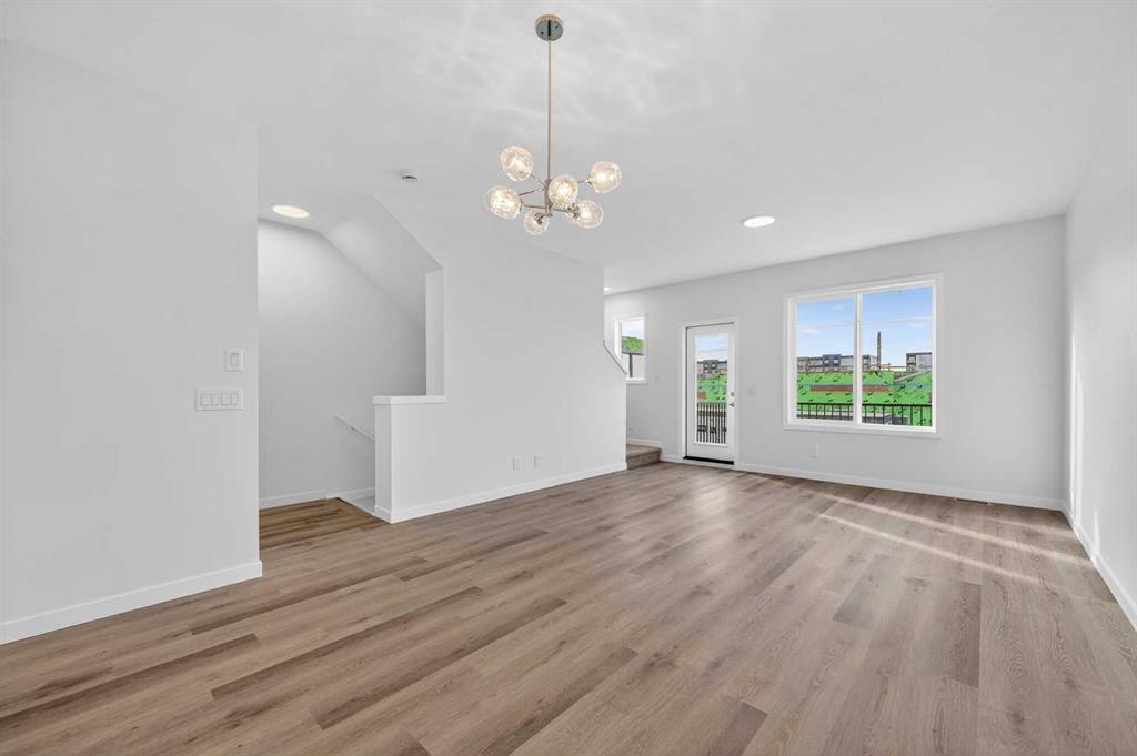 StreetSide proudly presents this exceptionally popular interior-unit townhome, where expansive living areas meet modern comforts and sophisticated finishes. The thoughtfully designed floorplan features three spacious upper-level bedrooms and two and a half well appointed bathrooms, complemented by a versatile lower-level den perfect for a home office or quiet retreat. The heart of the home is an inviting open-concept main floor, anchored by a large gourmet kitchen featuring a functional breakfast bar for casual dining. This bright living space transitions seamlessly to a private balcony, offering a perfect setting for outdoor relaxation. The interior showcases high end craftsmanship, including modern white slab-style cabinetry with a full bank of drawers for maximum storage. The kitchen is further elevated by polished white quartz countertops and a full suite of premium stainless steel appliances. Durable luxury vinyl flooring runs throughout the primary living areas, while the stairs and upper level are finished with plush carpet over an 8lb underlay for superior comfort. Additional conveniences include an attached double car garage, professionally maintained landscaping, and a lifestyle defined by maintenance free living. Located within Redstone Square this home places you at the heart of the dynamic Redstone neighborhood. Enjoy the ease of a convenient location with quick access to major routes, including Stoney Trail, ensuring you are never far from the city’s best. The community is strategically positioned near future commercial developments, promising shops, services, dining, and entertainment options just moments from your doorstep.