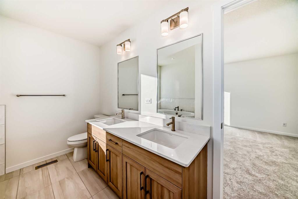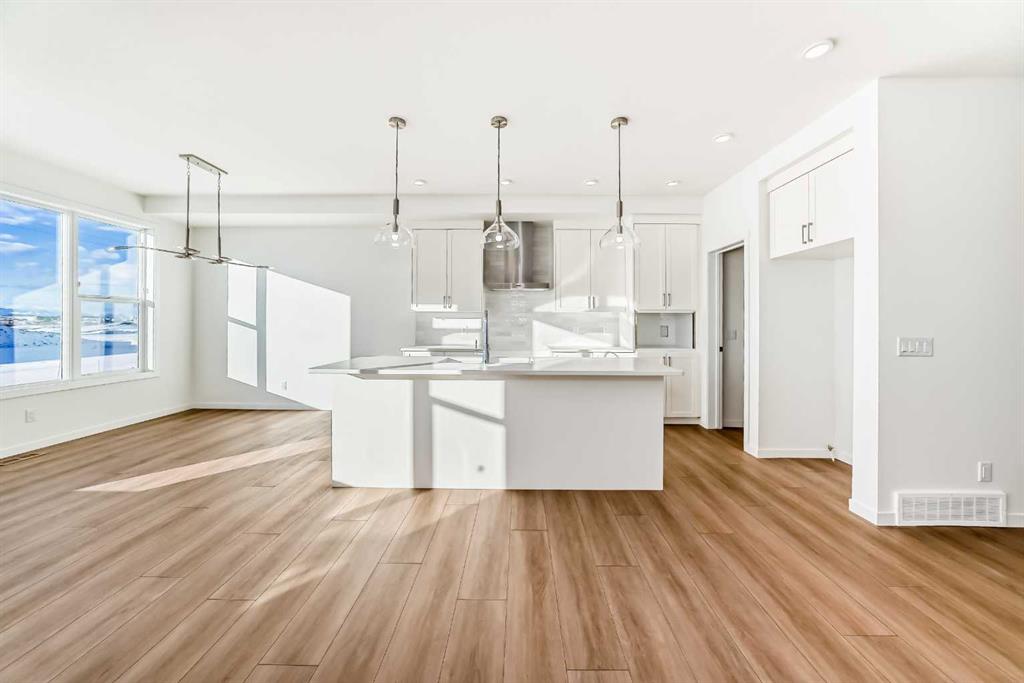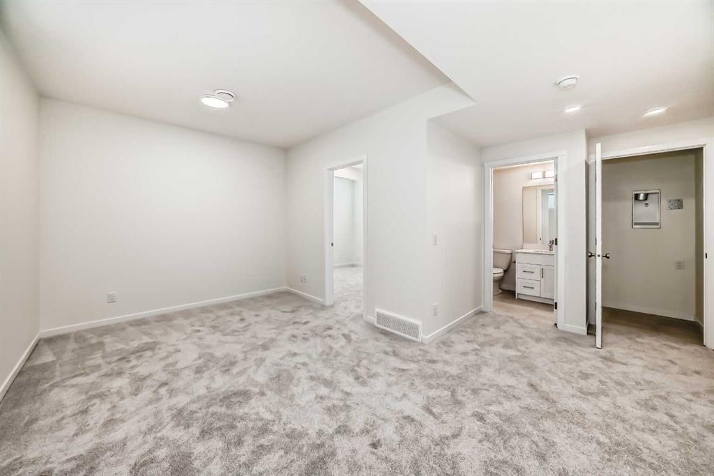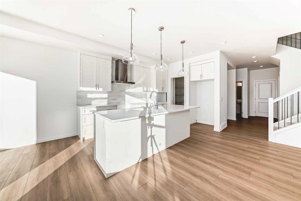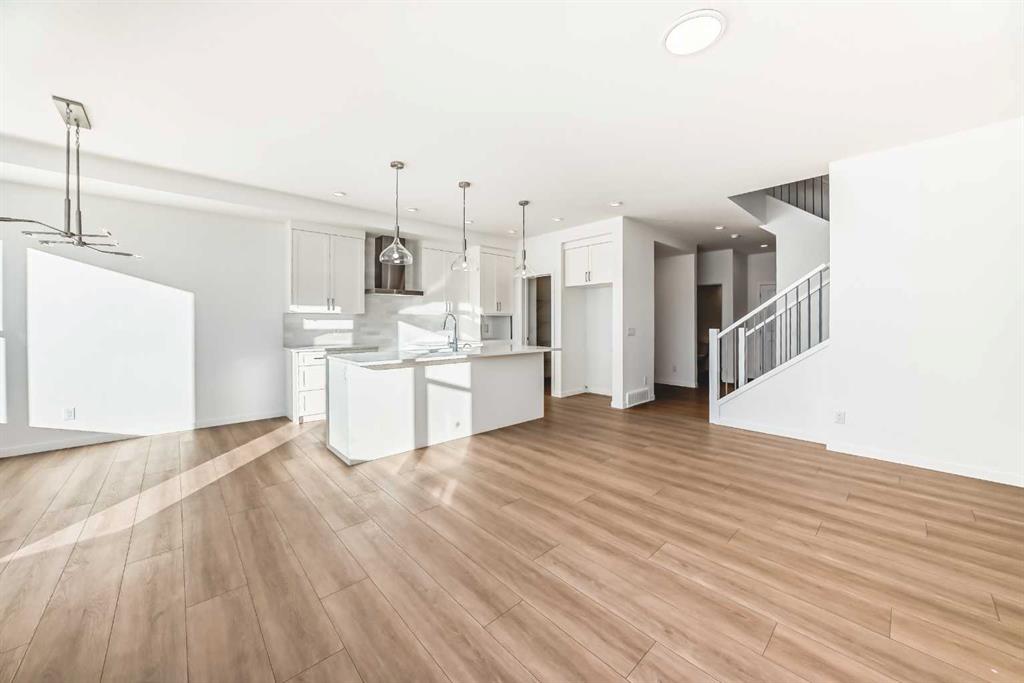 This exceptional half duplex in Cochrane’s rapidly developing Southbow Landing community is a strategic investment, uniquely designed for both premium family living and significant financial advantage, while adhering strictly to a modern, concise, and clear standard. The main floor opens with a welcoming foyer, leading into a bright, open-concept layout defined by durable, contemporary finishes. The core of the home is the functional kitchen, typically featuring an island and ample prep space, which flows naturally into the casual nook and the spacious Great Room, creating an ideal area for daily life and entertaining. Efficiency is maximized by the crucial walk-through pantry connecting the kitchen to the convenient mudroom. Moving upstairs, the floor plan is dedicated to rest and privacy, highlighted by the Primary Bedroom retreat, which boasts a generous 5-piece ensuite bathroom ( with dual sinks) and a walk-in closet. The upper level is completed by two additional well-proportioned bedrooms—one of which includes its own walk-in closet—and a 4-piece secondary bathroom. The true distinguishing feature of this property, however, lies in the lower level: a fully finished and professionally legal secondary suite. This self-contained, income-generating unit is positioned as a powerful mortgage helper or an excellent option for multi-generational living, featuring its own additional spacious bedroom, a full bathroom, a complete second kitchen, and a private family room, offering independence and a strong return on investment within a highly desirable community close to pathways, parks, and all of Cochrane’s amenities.