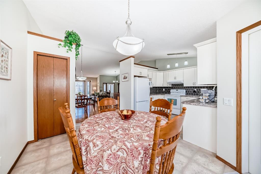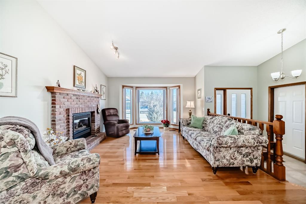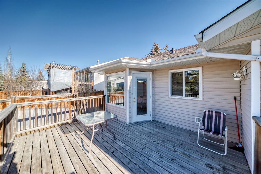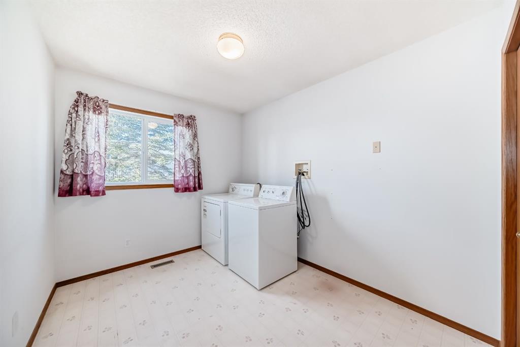 Welcome to 32 W Mackay Crescent, ideally located within walking and biking distance to everything Cochrane has to offer, restaurants, shops, schools and the beautiful Bow River pathways. Offered for the first time, this lovingly maintained bungalow was built in 1991 by the original owner and has been exceptionally cared for ever since. The home features a spacious double attached garage and beautifully landscaped and fully fenced front yard and back yard with mature flower beds for great curb appeal. Inside, a bright open concept layout connects the front living room and dining area, highlighted by vaulted ceilings, updated windows that fill the space with natural light, and a cozy fireplace that creates the perfect gathering spot. The kitchen offers generous workspace, newer appliances, white and bright cabinetry and tile back splash with direct access to an extended deck ideal for summer BBQs. The main level also includes a spacious primary bedroom with two large closets and a 3 piece ensuite, a second bedroom, a 4 piece bathroom, and convenient upper-level laundry that could be converted back to a third bedroom if desired. The fully developed basement features a large family room, a third bedroom or office, and a sizeable mechanical room with ample storage. Additional updates include an irrigation system, roof replaced in 2017, newer upper-level vinyl windows, hardwood flooring in the upper bedrooms, updated tile in the bathrooms, hot water tank replaced in 2016, and an original furnace that has been professionally serviced and cleaned annually. Pride of ownership is evident throughout this exceptional home. Book a showing today, this one won’t last long!
