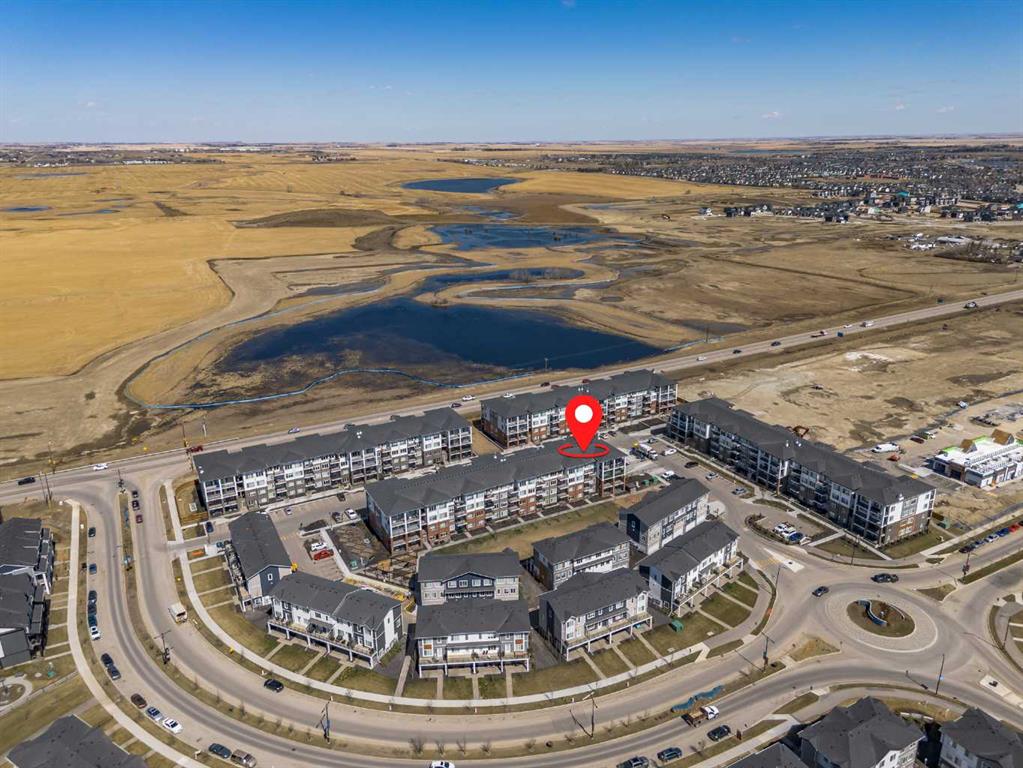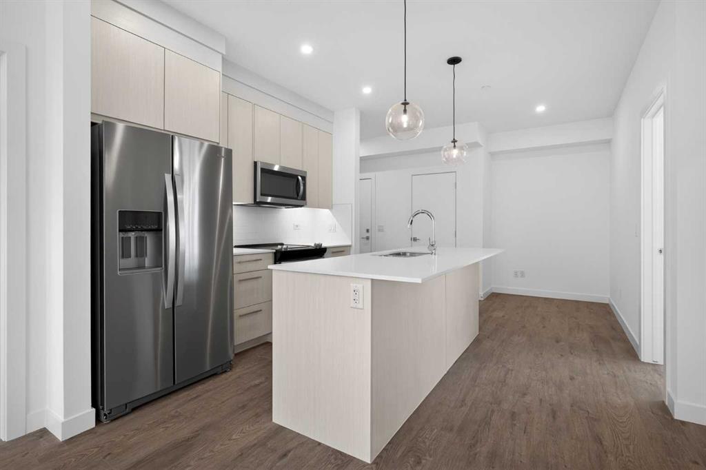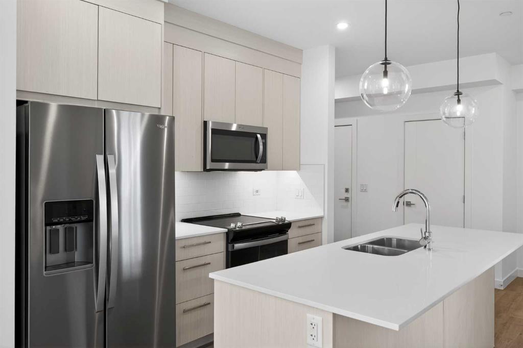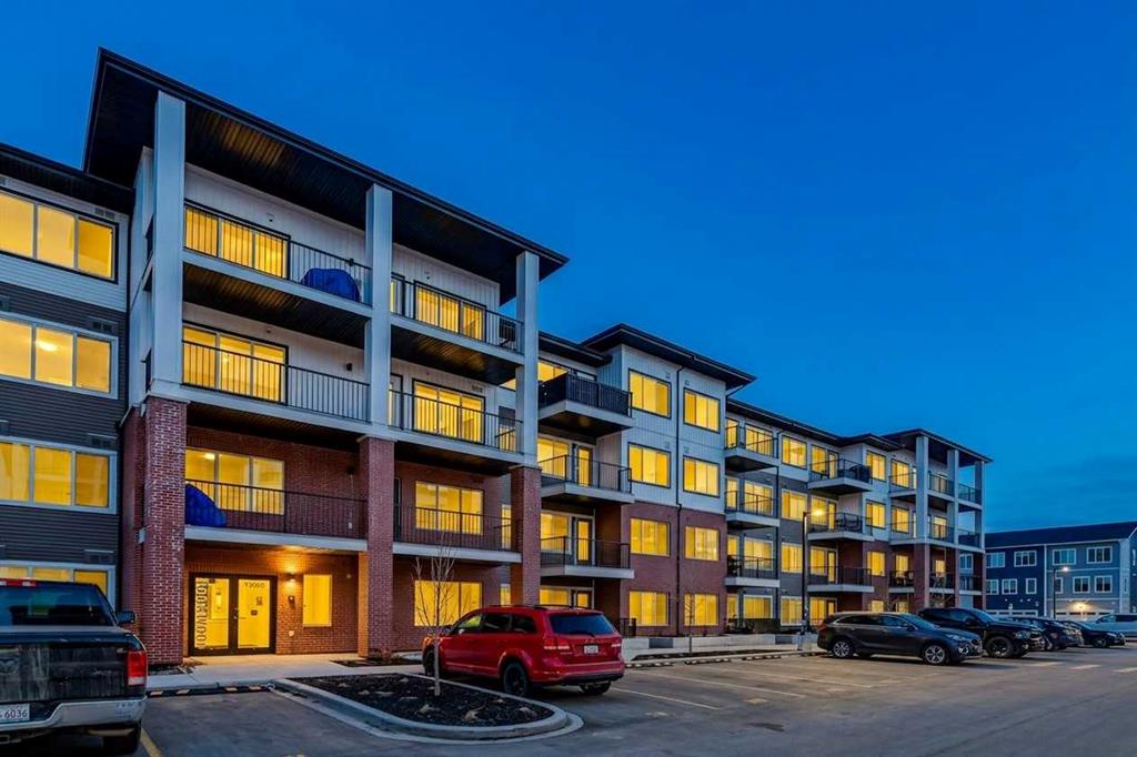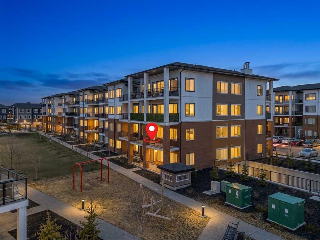 Three bedrooms, two full bathrooms, and two titled parking stalls are getting harder to find in newer condos. Welcome to Unit 3201 in Lockwood, located in Chelsea on the west edge of Chestermere, just minutes from Calgary. This unit stands out with a nearly 30 foot south facing balcony overlooking greenspace and a playground, giving you both light and privacy. Inside, the kitchen is sharp and functional with quartz countertops, a large island with breakfast bar, full height cabinetry, and stainless steel appliances. The layout works. A comfortable living area, a dedicated workspace, and smart separation between bedrooms that suits a small family, roommates, or a home office setup. The building adds real value with a top floor gym and access to a resident lounge in a neighbouring building. Chelsea is a fast growing community with planned schools, pathways, parks, and easy access to 17 Avenue and Stoney Trail, making the commute into Calgary simple. If you are trying to find space, functionality, and future upside without stretching your budget, this is one worth a look.