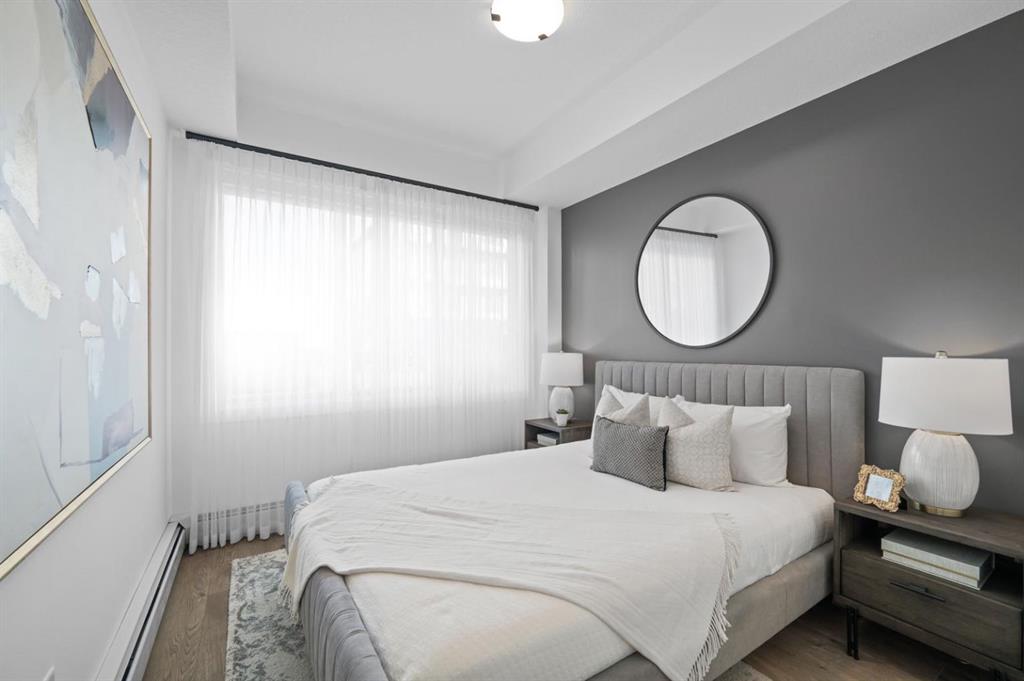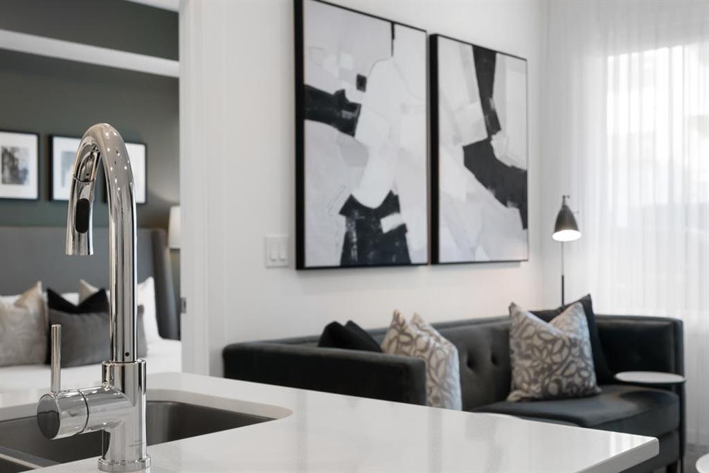 Welcome to Lockwood, where comfort meets convenience in this stunning 2-bedroom, 2-bathroom unit with a titled parking stall, located in the vibrant and fast-growing community of Chelsea in Chestermere. Surrounded by parks, playgrounds, and scenic walking trails—and just moments from Chestermere Lake—this home is perfectly positioned for both relaxation and adventure. Enjoy easy access to local amenities like Chestermere Station, Chestermere Crossing, and an array of shopping and dining options, all just minutes away. Step inside to experience a thoughtfully designed open-concept layout featuring an oversized south-facing balcony that floods the living space with natural light and offers serene views—perfect for outdoor dining or relaxing in the sun. Every detail has been carefully curated, from the luxurious vinyl plank flooring and soaring ceilings, to the chef-inspired kitchen complete with full-height soft-close cabinetry, sleek stainless steel appliances, a pantry, and an elegant eat-up bar topped with quartz countertops—ideal for casual meals and entertaining. The primary bedroom, features a generous walk-through closet and a private 3-piece ensuite. A second bedroom, perfect for guests or a home office, and a stylish 4-piece main bathroom complete the space. Beyond your private residence, enjoy a wealth of on-site amenities including a fully equipped fitness centre, owners’ lounge, bike storage, and more—all designed to complement an active and social lifestyle. This bright and modern home is move-in ready, offering a premium opportunity to embrace the TRUMAN lifestyle in one of Chestermere’s most exciting new communities. *Photos shown are of a similar unit