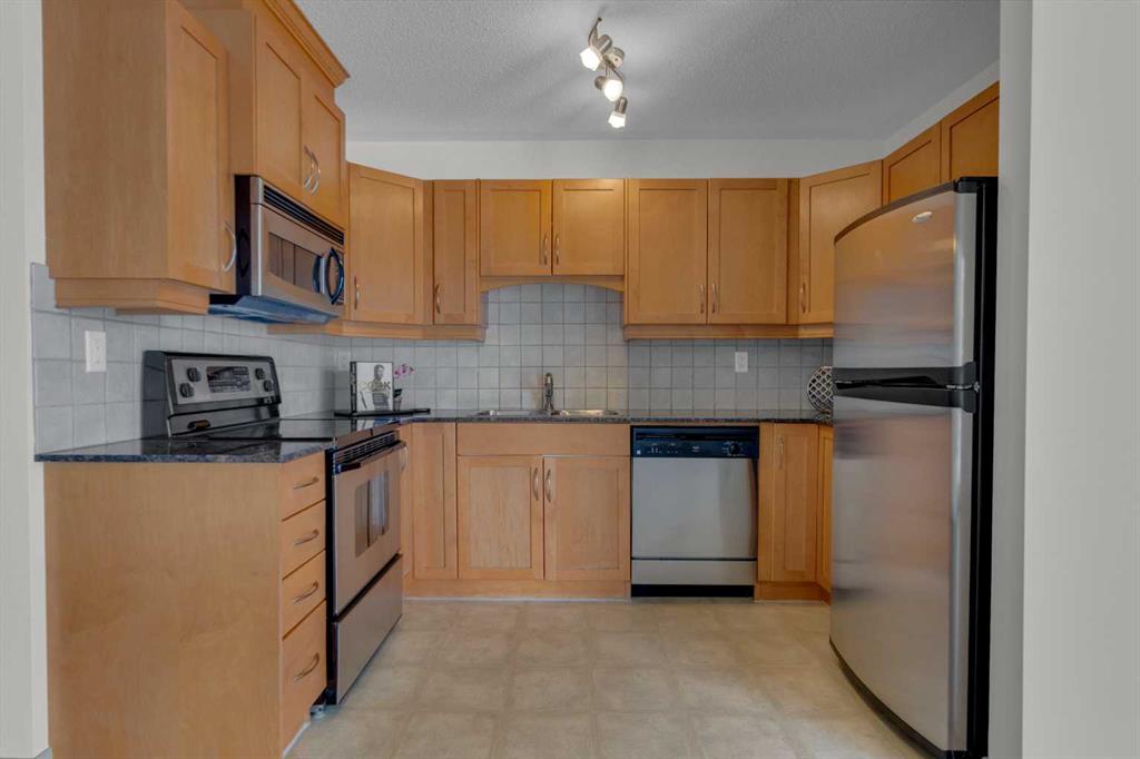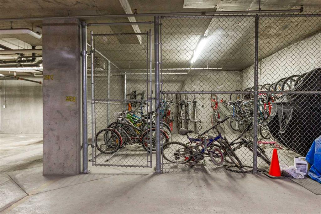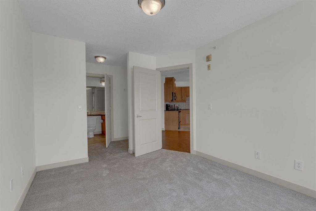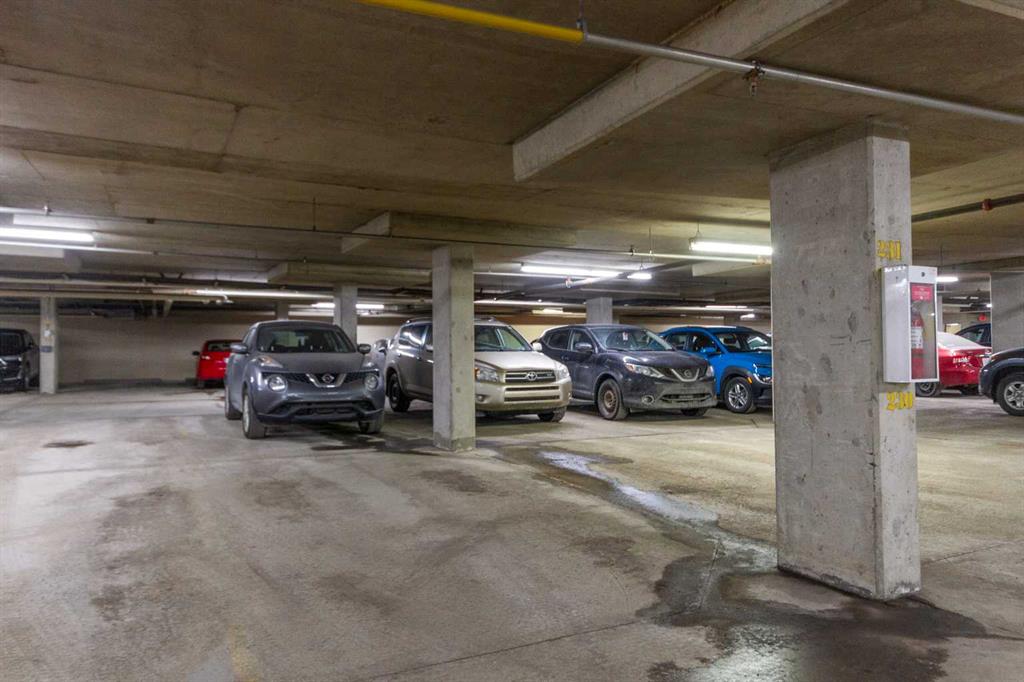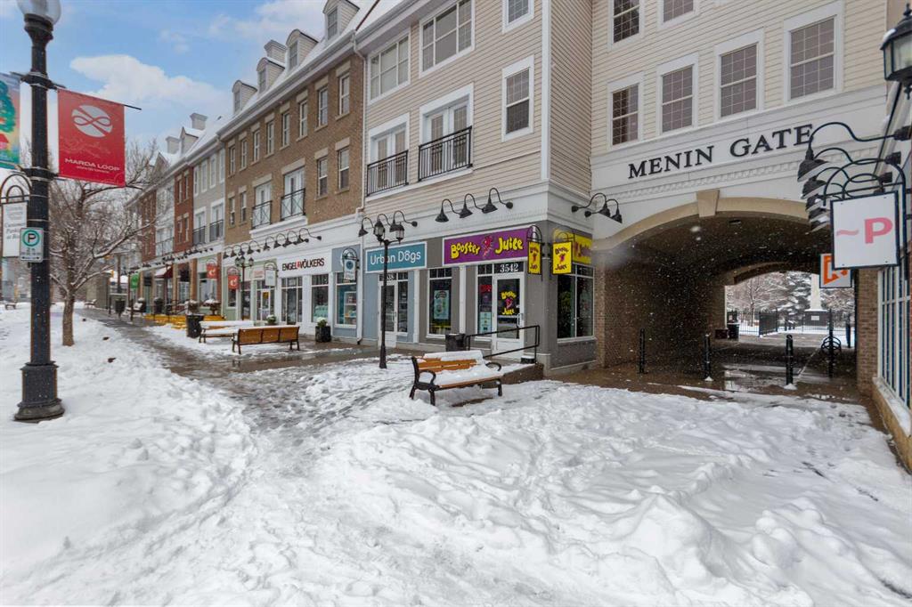 Welcome to this very clean top-floor, south-facing condo in the heart of Marda Loop, featuring fresh paint, brand new carpet, titled underground parking, and a titled storage locker. This well laid out one bedroom plus den condo is bright, welcoming and move-in ready. The open concept kitchen offers lots of cabinetry, stainless steel appliances and opens on to space for a dining table. The sun filled living room showcases beautiful views of the surrounding neighbourhood and beyond, while sliding patio doors open to a private south-facing balcony complete with a gas line for your BBQ. The bedroom has brand new carpet, a walk-through closet with shelving and access to the 4-piece cheater ensuite. The bathroom was just updated with a new bathroom fan, new light fixture and new flat painted ceiling. At the front of the condo is the flexible den space, ideal for an at home office or mudroom. In-suite laundry with lots of additional space in this room for your vacuum, linens, and anything else you wish to store in-suite. Convenient location within the building, just steps from the elevator that takes you directly to the parkade where your parking stall and storage locker are located. Enjoy living in the heart of Marda Loop in this well managed, pet friendly building with underground visitor parking, underground bike storage, third level party room with large balcony, and all the utilities included (gas, electricity, water, & sewer) in the reasonable condo fees. Just steps from Starbucks, restaurants, Safeway, banks, parks and schools. Easy access in and out of the community to Crowchild Trail and Glenmore Trail.
