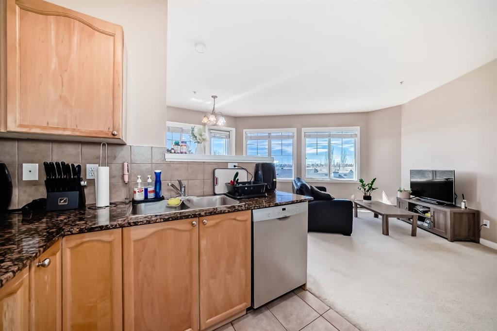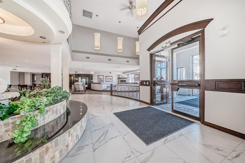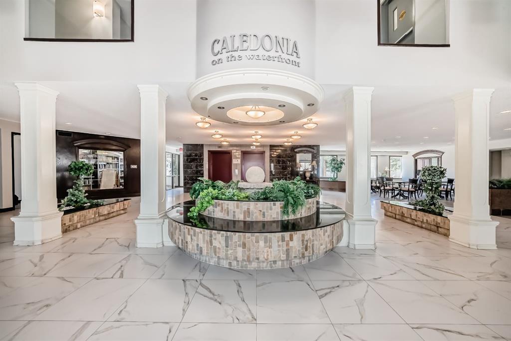 Caledonia on the Waterfront! Welcome home to this sun-drenched GEM featuring a prime south-backing location with breathtaking views of the Rockies. This 2-bedroom, 2-bathroom residence boasts an open-concept layout with soaring 9-foot ceilings and massive windows that flood the space with natural light. The chef-inspired kitchen shines with granite countertops, upgraded maple cabinetry, and ample storage. Designed for maximum privacy, the bedrooms are tucked on opposite sides of the unit; the primary suite features a private 4-piece ensuite, while the second bedroom offers a 3-piece ensuite with dual access to the living area. Enjoy the fresh air on your expansive balcony that spans the dining area and second bedroom! Practicality is key with a recently replaced in-suite washer and dryer, plus a premium oversized parking stall near the elevator that easily fits a full-sized SUV and a storage container. Residents enjoy luxury building amenities including a grand hotel-style lobby, resident social lounges, a library, and a party room with a kitchenette. Perfectly situated in a secure, pet-friendly building next to scenic ponds and walking paths, you are steps away from McKenzie Towne High Street and minutes from South Health Campus and major retail hubs. Don’t miss this rare combination of mountain views and maintenance-free living!