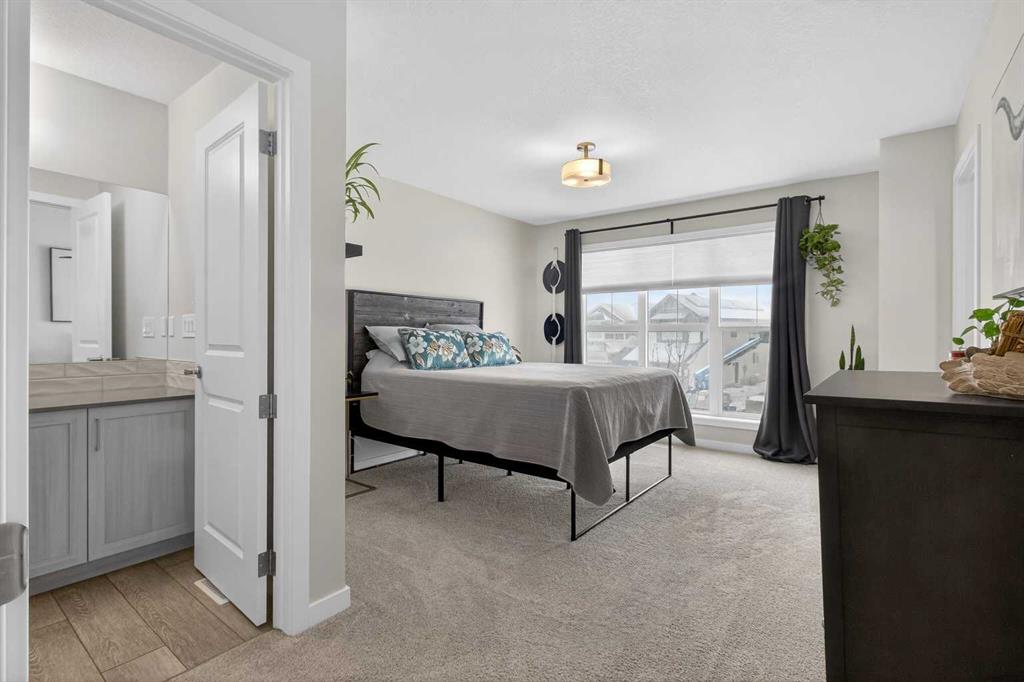 Located in the sought-after lake community of Mahogany, this upgraded and move-in ready home offers over 2,600 sq ft of developed living space, with 5 bedrooms, 3.5 bathrooms, and over $50,000 in thoughtful upgrades throughout. The main floor delivers both function and flow, with 9-foot ceilings and a bright, open-concept layout. A versatile front flex room adapts easily as a home office, sitting area, or playroom. The kitchen anchors the space with upgraded quartz countertops, extended cabinetry, upgraded appliances, and refined lighting and plumbing fixtures. An oversized 8-foot island provides additional seating and workspace, seamlessly connecting the kitchen, dining, and living areas. Upstairs features three well-sized bedrooms, a large bonus room, and the convenience of upper-floor laundry. The primary suite offers a walk-in closet and a well-appointed ensuite, creating a comfortable and private retreat. The professionally developed basement, completed by the builder, offers 9-foot ceilings, fire-rated separation, two additional bedrooms, a full bathroom, and a spacious recreation area. A separate side entrance and rough-ins for a future kitchen provide added flexibility for extended family or future suite potential (subject to City of Calgary approval). The exterior is equally well considered, with a fully fenced yard, a large rear deck, and a poured concrete pad ready for a future hot tub. The double detached garage is finished with durable Hardie board siding to match the home. All improvements have been completed with permits, and a compliant RPR is available. Mahogany is one of Calgary’s premier lake communities, offering year-round access to the lake, beaches, parks, pathways, playgrounds, schools, and the shops and restaurants of Westman Village just minutes away.With its size, level of finish, fully developed basement, and overall functionality, this property is competitively positioned within the Mahogany market—offering a level of space and upgrades that is increasingly difficult to find at this price point.