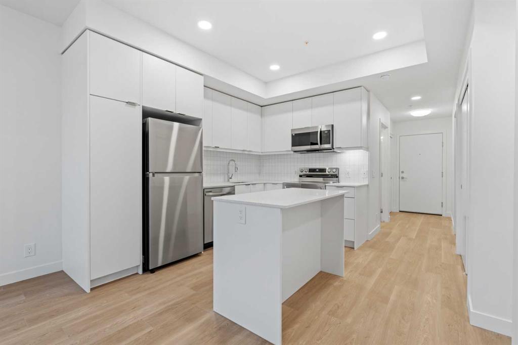This brand-new 2 bedroom, 1 bathroom condo offers a smart and functional layout with 756 sq ft of well-designed living space and modern finishes throughout. The kitchen is centrally located within the home and features a large island, stainless steel appliances, and ample cabinetry for storage. The open-concept design flows seamlessly into the living area at the back of the home, where you’ll find access to the balcony, ideal for relaxing, entertaining, or enjoying summer evenings.