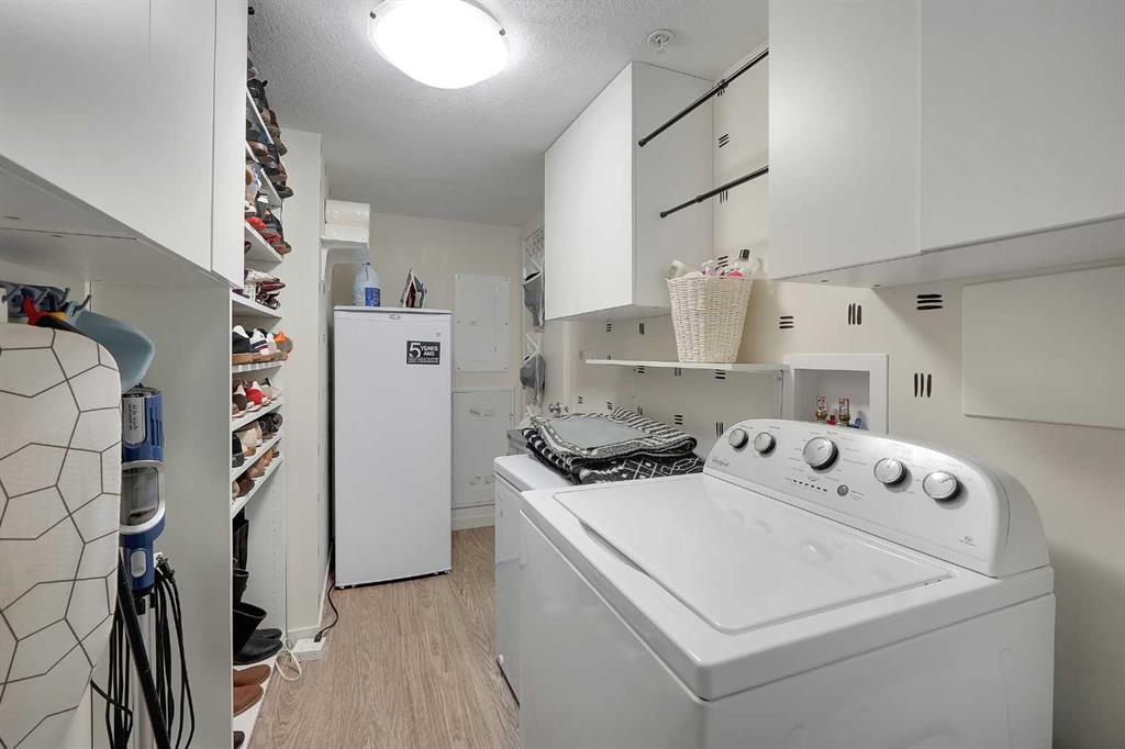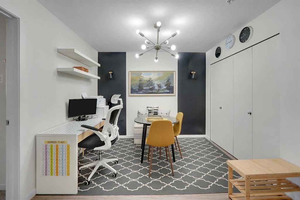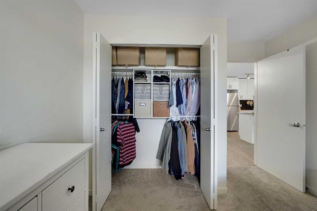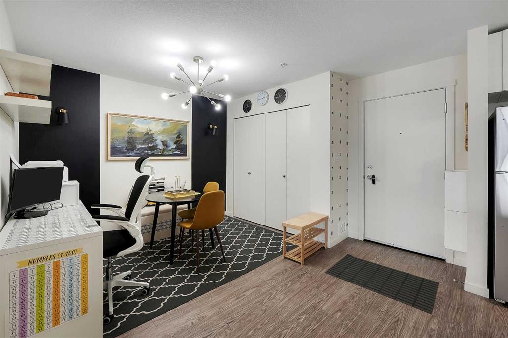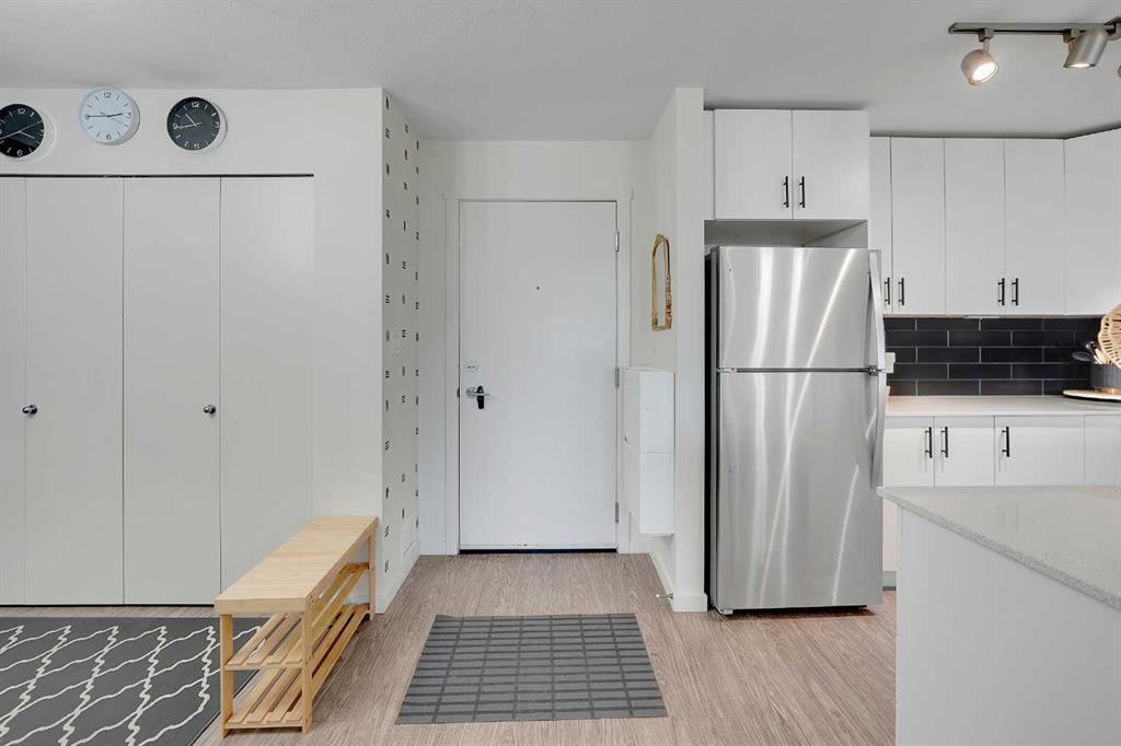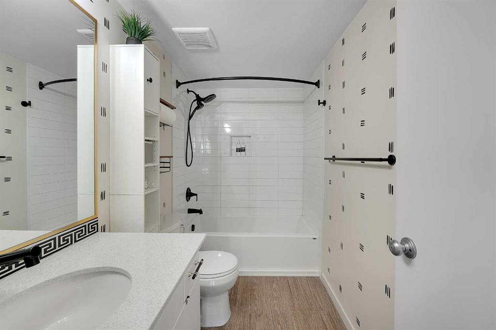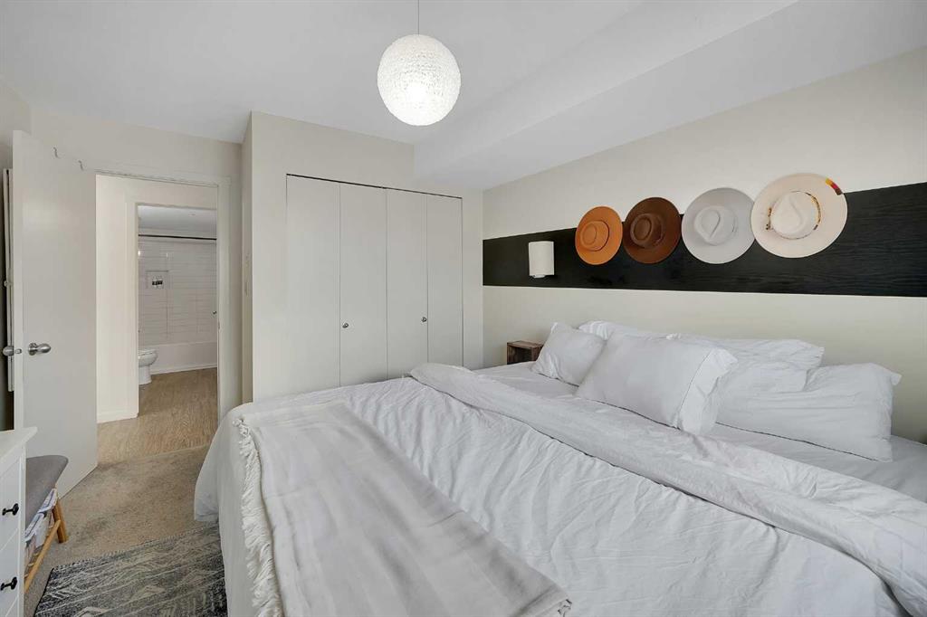 Step into this bright, open-concept sanctuary where modern comfort meets an amenity-rich lifestyle at McCall Landing. This meticulously maintained home welcomes you with a seamless blend of durable laminate flooring and plush carpet, elevated by a suite of upgrades that truly set it apart. The kitchen features upgraded new backsplash, a gourmet sink, and sleek high-arc faucets. The bathroom is refreshed with a new bathtub and contemporary fixtures. Designer lighting throughout the dining, living, and sleeping areas creates a warm, sophisticated ambience, while smart storage solutions; including integrated laundry shelving and expanded closet systems in both bedrooms. Your morning coffee will taste better on the private balcony where unobstructed views offer a peaceful escape from the city bustle. Peace of mind is built right in with triple-pane windows and advanced noise-reduction engineering in the floors and walls, making this one of the quietest buildings in the Northeast. Beyond your front door, the McCall Landing advantage gives you exclusive access to a private fitness centre, a vibrant community lounge for hosting, a community garden with dedicated grow beds, and even a fenced dog run for your furry companions. Complete with a heated underground parking spot and seamless access to Stoney Trail, the Airport, and the diverse shops of Skyview, this move-in-ready gem is the perfect opportunity for those who refuse to compromise on quality. Book your showing today!