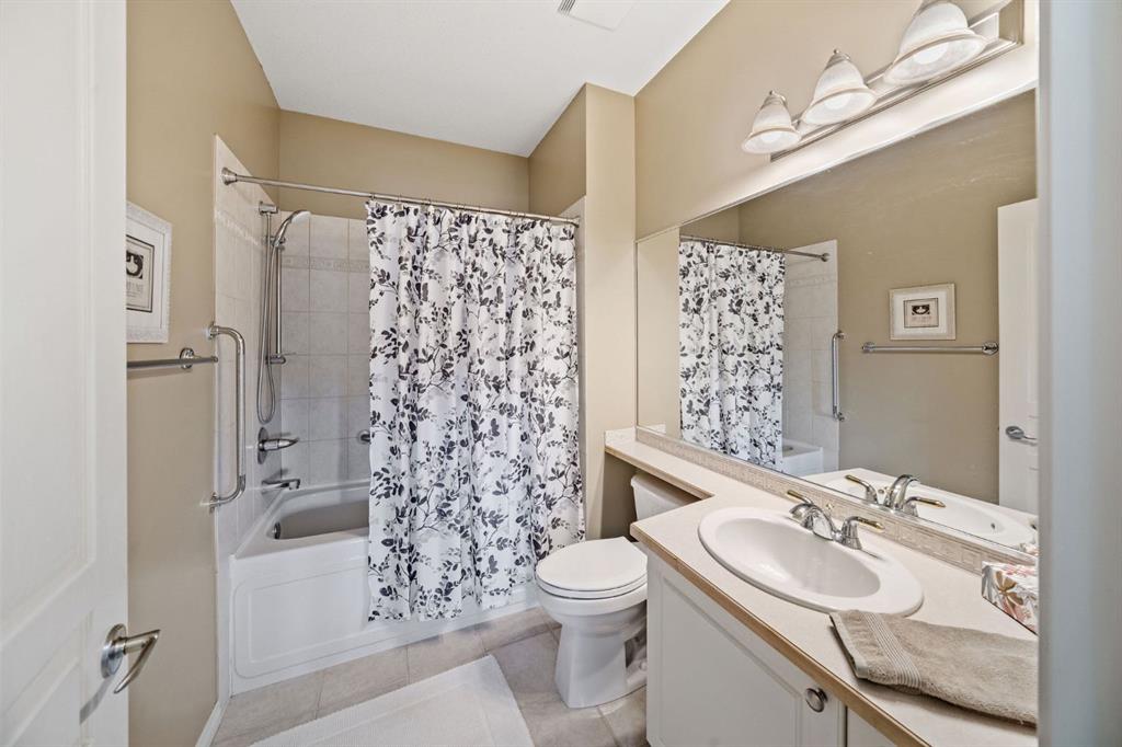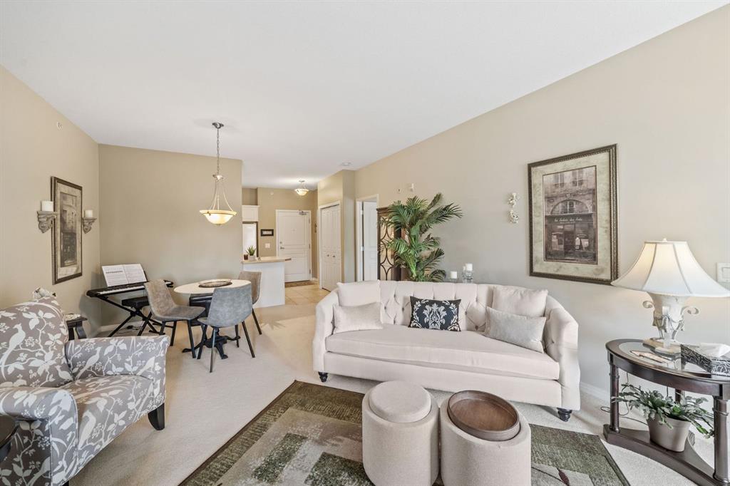 This one bedroom top floor condo is located in the amenity rich, and gated community of Bonavista Estates. A large kitchen welcomes you that is well equipped with plenty of storage and countertop space. The powder room is conveniently located just off the kitchen, which also houses the washer and dryer. The dining and living room have great natural light and a centred fireplace for those cooler months ahead. The east facing bedroom is a great size with double closets and a 4 piece ensuite bathroom. This unit also has a partially covered east facing balcony with a gas line for your bbq or heater. One titled underground stall that is directly connected to the adjacent building, providing access to the amenities in building 1000 in the winter months. The storage unit is very close to the elevator and provides very easy access. This community offers top tier amenities, including private clubhouse, a fully equipped fitness room, theatre room, guest suite, and a car wash station in the parkade. Located in the highly desirable Bonavista Estates, this gated community offers security and peace of mind while being just minutes from shopping, dining, and SouthCentre Mall.