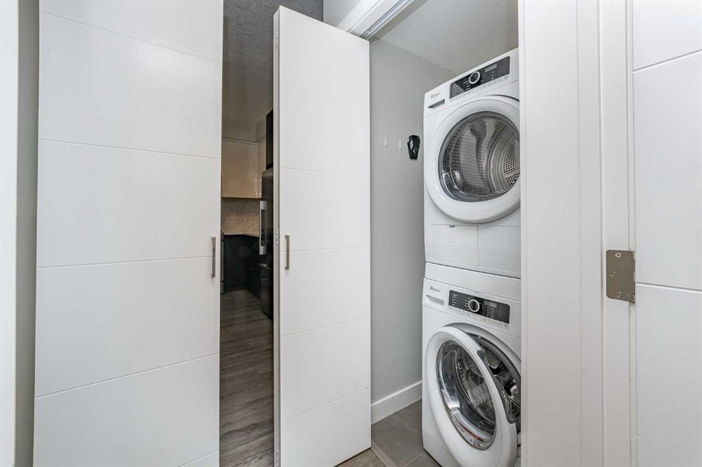 BUILDER SALE! Looking for upgrades in a spec unit? This might be the one. Welcome to the Axess building, located in the heart of the historic Currie Barracks community! Step inside to find luxury vinyl plank flooring and an abundance of natural light streaming through oversized windows. The stylish kitchen showcases a modern blend of crisp white and dark cabinetry, upgraded stainless steel appliances including a gas stove, quartz countertops, and a designer tile backsplash. An open counter connects seamlessly to the dining area, perfect for entertaining. The spacious living room leads to a second-floor balcony with a gas BBQ line, easy connect. The generously sized primary bedroom features a walk-through closet with direct access to the elegant 4-piece bathroom, complete with tile flooring, quartz countertops, and a soaker tub. Just off the kitchen is a versatile nook—ideal for extra storage or a small home office setup. Additional highlights include in-suite laundry, underground parking with a car wash, and a private storage locker located directly in front of your parking stall. All this in a prime location—steps from Mount Royal University, walking paths, parks, shopping, and with easy access via Crowchild Trail to Marda Loop and downtown Calgary. A truly exceptional opportunity to own in one of Calgary’s most desirable communities