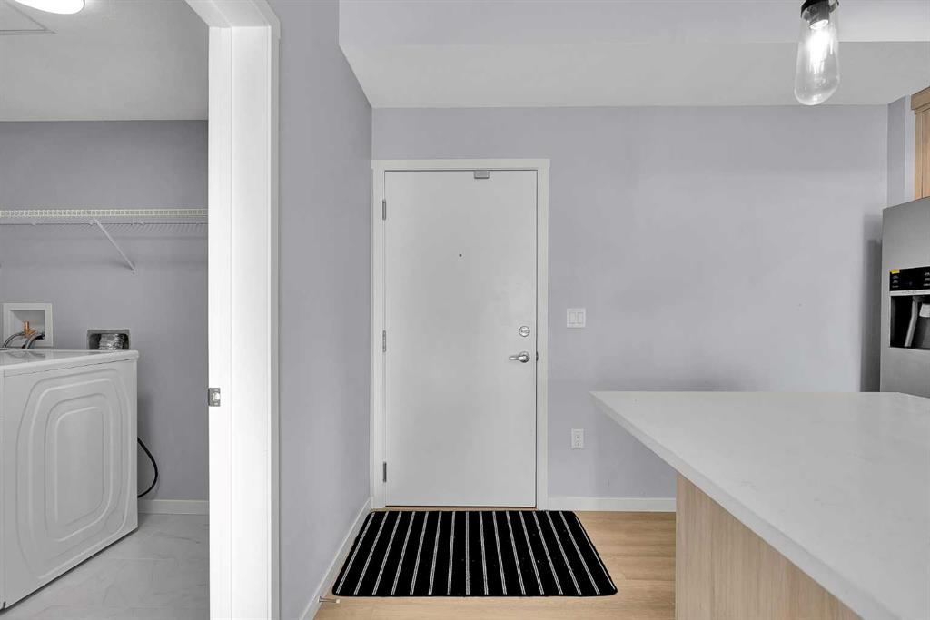 The well-designed layout offers two generously sized bedrooms, including a primary suite complete with a walk-in closet and a private ensuite featuring a standing shower with upgraded cabinetry providing additional drawer storage. The second bedroom is thoughtfully positioned next to the main bathroom, which also features upgraded cabinetry with extra drawers for enhanced organization. In-unit laundry and additional storage further enhance everyday convenience.