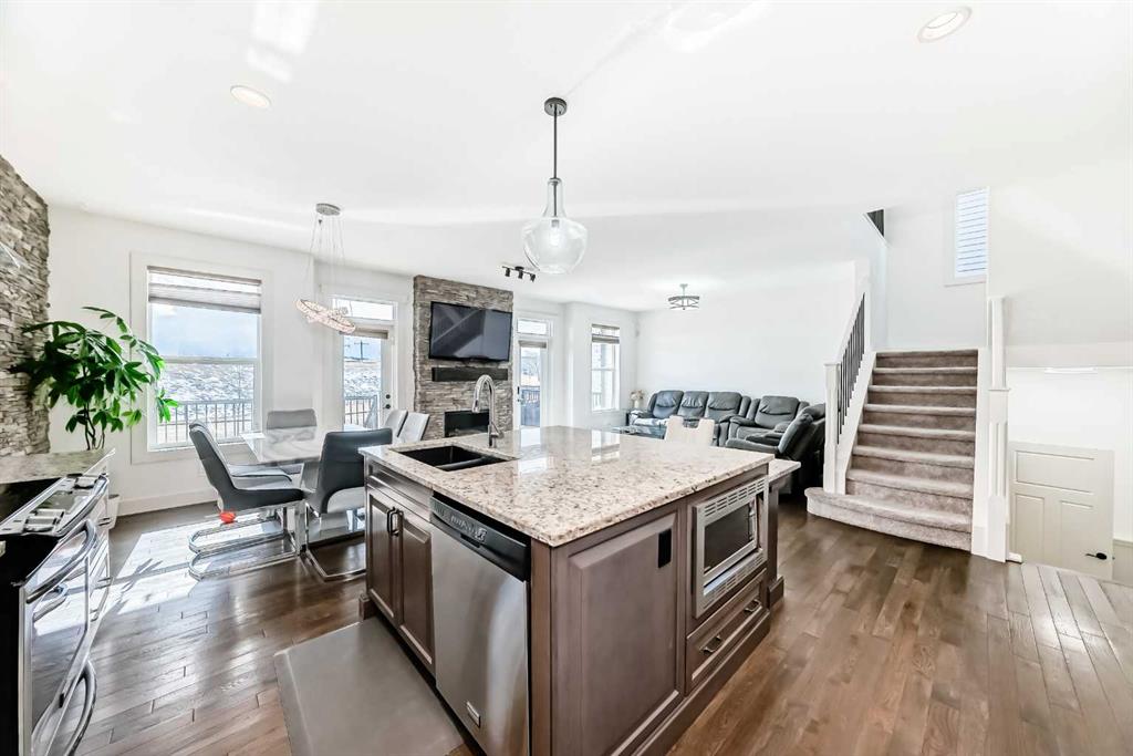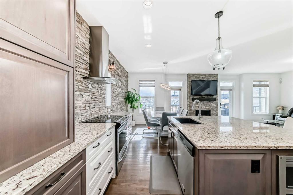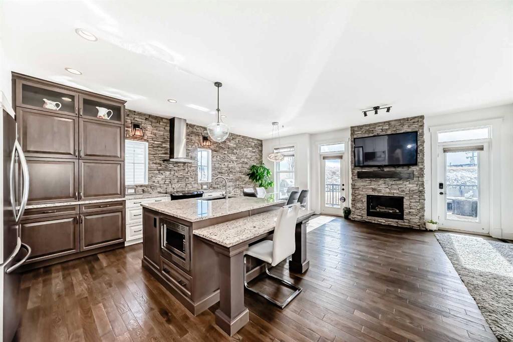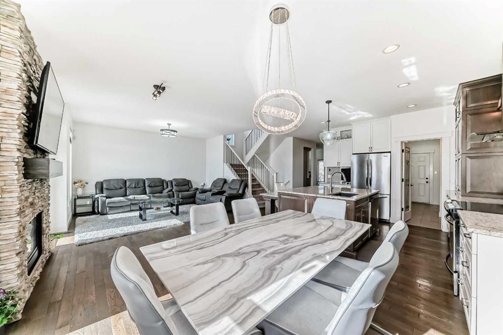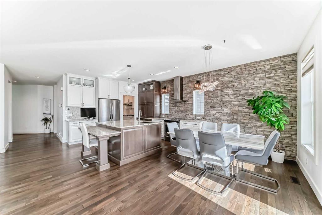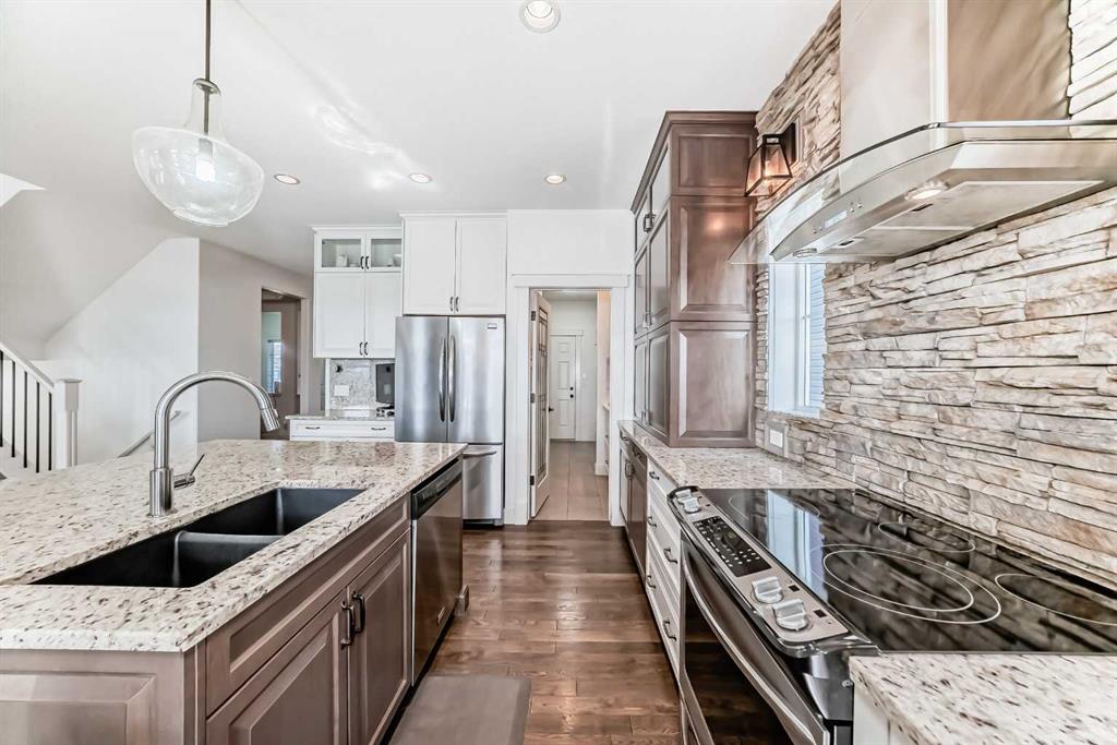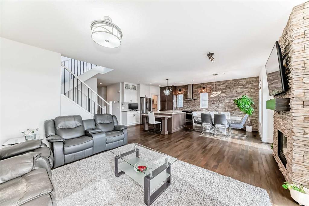 Welcome to This Fully Upgraded Home in the community of Reunion. Step into over 3,100 sq ft of beautifully designed living space, featuring 4 bedrooms, 3.5 bathrooms, and a fully finished basement perfect for recreation and entertaining. The main floor showcases hardwood flooring throughout, a versatile den/home office or kids’ playroom, and an open-concept layout connecting the living room, dining area, and a stunning upgraded kitchen with stainless steel appliances, a large granite island, and a hidden spice kitchen—ideal for serious cooking and hosting guests. Elegant stone accent walls flow seamlessly through the kitchen, fireplace, and den, adding warmth and character. Enjoy a main-floor powder room, a luxurious primary ensuite with double vanity and soaker tub, and a spa-like basement bathroom with steam shower—perfect for unwinding after a long day.