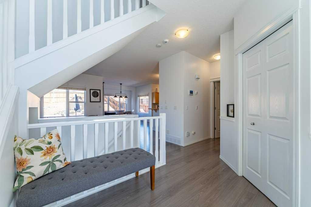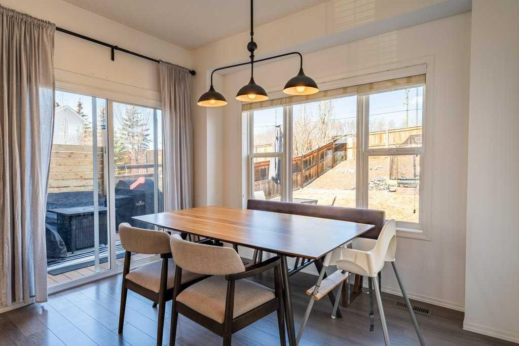 Perfectly positioned with stunning mountain views from the front, this home offers an exceptional lifestyle at the gateway to the Rocky Mountains. The inviting main floor is bright and open, designed with modern living in mind. Large windows flood the space with natural light, highlighting the contemporary finishes and the cozy gas fireplace that anchors the living area. The layout flows seamlessly, ideal for both everyday living and entertaining.