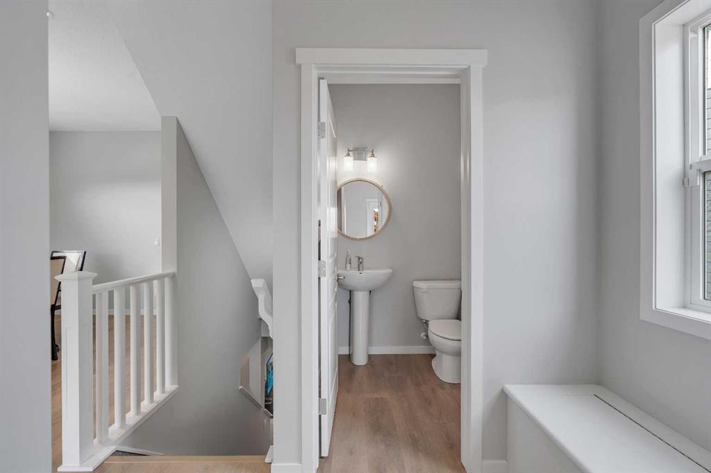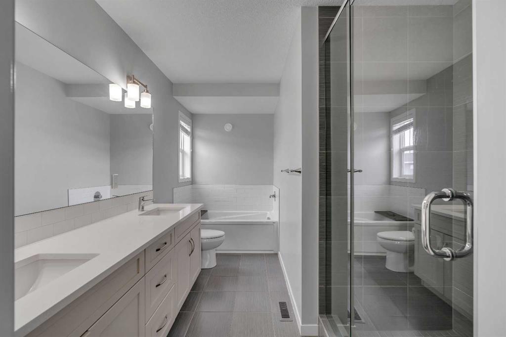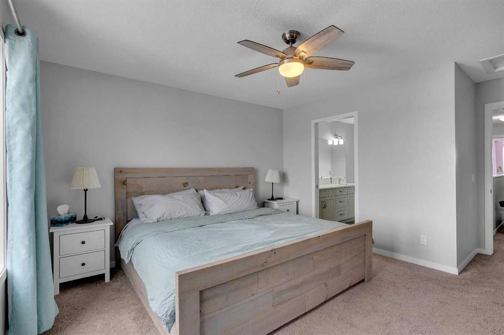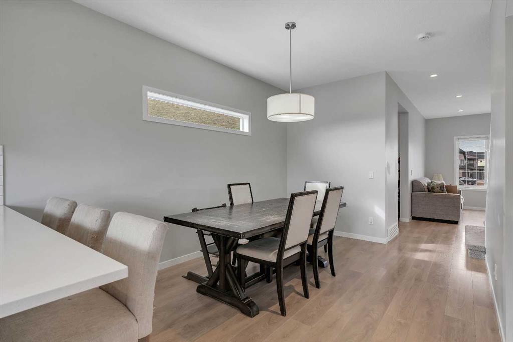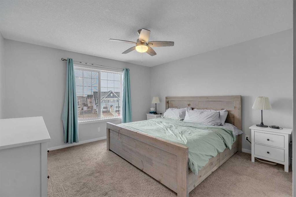Welcome to Marquis Court! This air-conditioned, fully developed home offers over 2,200 sq. ft. of developed living space, plus a separate backyard office. The main floor features 9-ft ceilings, luxury vinyl plank flooring, and an upgraded kitchen with pot lighting, extended cabinetry, quartz countertops, white subway tile backsplash, stainless steel appliances including a gas range, a pantry, and a peninsula island with seating. The kitchen opens to a spacious dining area with an added window for extra natural light. The family room is bright and inviting, and an additional flex space provides room for a home office or whatever suits your needs. A functional mudroom with a storage bench and closet, along with a powder room, completes the main level. Upstairs, you’ll find a spacious primary bedroom with a walk-in closet and a well-appointed ensuite featuring an oversized tiled shower, double sinks, quartz countertops, and a soaker tub. There are two additional bedrooms—one with a walk-in closet and one with a closet organizer—along with the main bathroom and a convenient upper-floor laundry room with extra cabinetry and a hanging bar. The builder-developed basement includes a large rec room, bedroom, full bathroom, and plenty of additional storage. A standout feature is the separate backyard office, complete with electricity, heat, and air conditioning—an ideal work-from-home setup. The oversized backyard offers a large deck, double garage, and plenty of space to enjoy. Located just steps from the wetlands in the award-winning lake community of Mahogany, you’ll enjoy year-round amenities including beaches, skating, paddleboarding, walking paths, and parks, along with nearby schools, shopping, restaurants, and all essential services just minutes away.