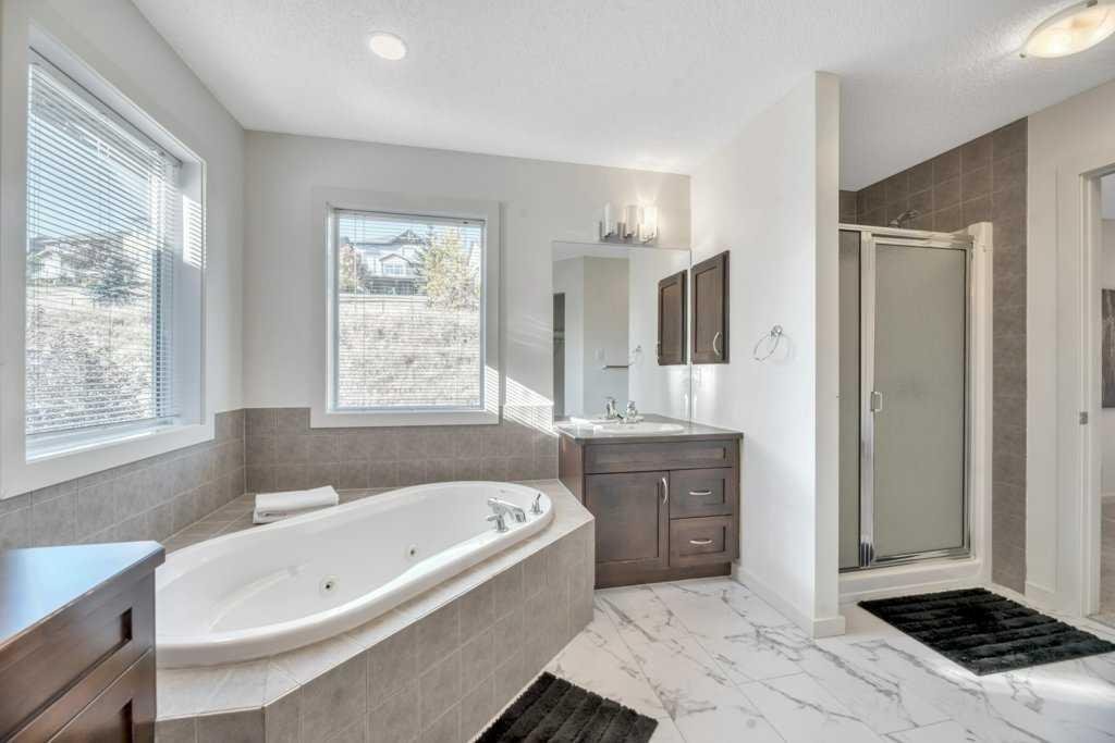 Beautifully updated 4 bedroom & 4 bathroom custom home built by Stepper and located in the desirable community of Springbank Hill, which offers lots of green space with great pathways & playgrounds, amazing schools and easy access to shopping, transit & all major routes. The main floor is warm & bright with lots of natural light and features an open to above formal living & dining room area with floor to ceiling 20ft high windows that gives you a majestic feeling as soon as you enter this home! On the other side is the cozy family room with a gas fireplace, a huge kitchen with lots storage & counter space, a spacious breakfast nook with patio doors leading out to your west facing backyard, and all of this in an open floor plan with rich walnut hardwood & cabinets. Upstairs you will find the master bedroom with a 5pc ensuite & big walk-in closet, a second master bedroom with 3pc ensuite, two more spacious bedrooms sharing a 4pc Jack & Jill bathroom, and a loft/bonus room ideal for a home office or recreation/games area. The laundry room is conveniently located on the main level adjacent to the 2pc bathroom. The unfinished basement awaits your imagination & ideas to turn into whatever your heart desires! This fabulous home is located just minutes from the Westside Rec Centre, 69st Train Station, Public Library, Superstore and Aspen Landing & Signal Hill Shopping Centers with all their amenities, restaurants & shopping!