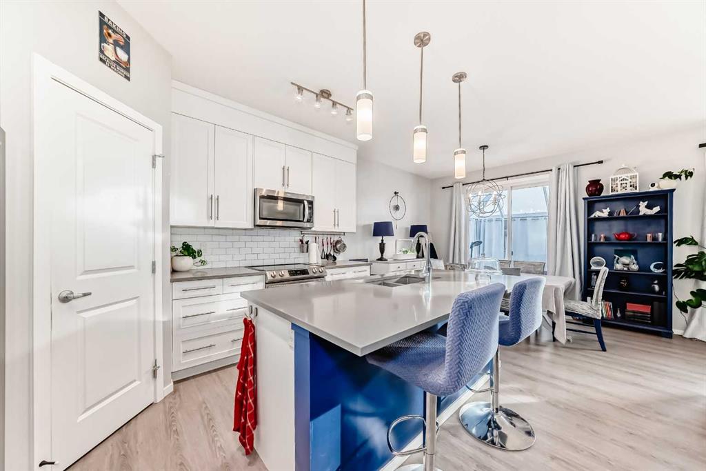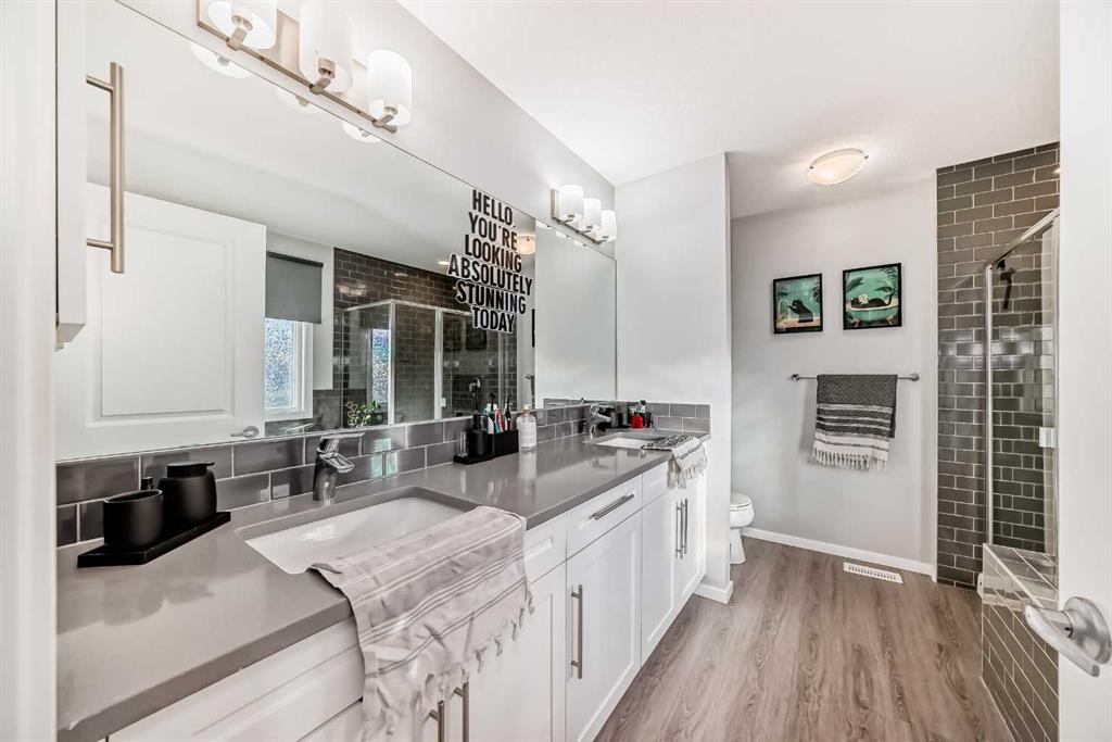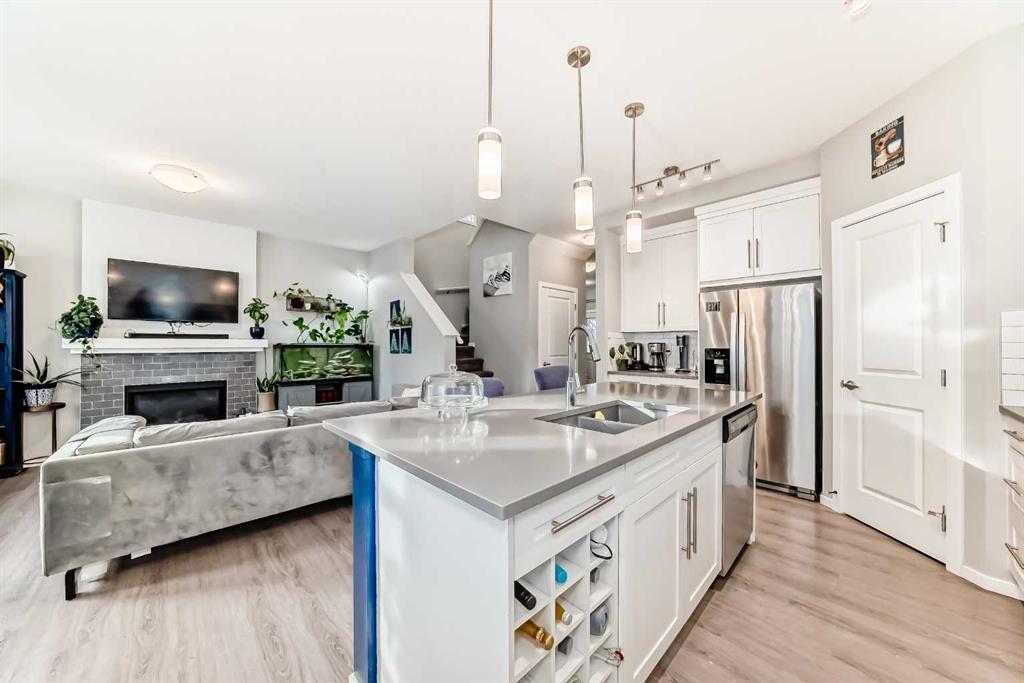 Immaculate and truly move in ready, this beautifully maintained home offers a desirable south facing backyard and is perfectly situated in the sought after community of Sunset Ridge. With 2,176 sq. ft. of thoughtfully designed living space, this modern 5 bedroom, 3.5 bathroom residence has clearly been lovingly cared for and enjoyed as a long term family home. From the moment you enter, you will appreciate the pride of ownership and attention to detail throughout. The main level features 9 foot ceilings and stylish luxury vinyl plank flooring, creating a bright and welcoming atmosphere. A spacious foyer sets the tone and leads to a dedicated home office, ideal for working from home, studying, or managing a busy household. The open concept layout is filled with natural light from expansive windows and flows seamlessly into the elegant living room, anchored by a cozy natural gas fireplace that makes this space perfect for everyday living and family gatherings. At the heart of the home is the sleek, gourmet kitchen, designed with both function and style in mind. It features stainless steel appliances, a corner pantry, grey quartz countertops, a large center island for casual meals or homework time, and modern full height white cabinetry offering ample storage. The adjacent dining area opens onto the south facing deck and patio, providing a private outdoor extension of the living space that is ideal for entertaining, playtime, or simply unwinding. The covered sunroom adds a versatile, sheltered area that can be enjoyed throughout the year. Upstairs, you will find four generously sized bedrooms, a full 4 piece bathroom, and a centrally located bonus or media room that works perfectly as a family lounge, playroom, or movie space. The primary retreat is a true escape, complete with a spacious walk in closet and a luxurious 5 piece ensuite featuring a soaker tub and separate stand up shower. The fully finished lower level, completed by the developer, adds exceptional flexibility with a large and bright great or media room, a convenient kitchenette, a fifth bedroom, and a 5 piece bathroom, making it ideal for guests, teens, or extended family. Every level of this home reflects thoughtful planning and long term enjoyment. Located close to schools, parks, playgrounds, and all essential amenities, this is a home where families can truly settle in and grow. Well cared for, beautifully presented, and ready for its next chapter, this exceptional property is a must see. Book your private showing today, you will not be disappointed.