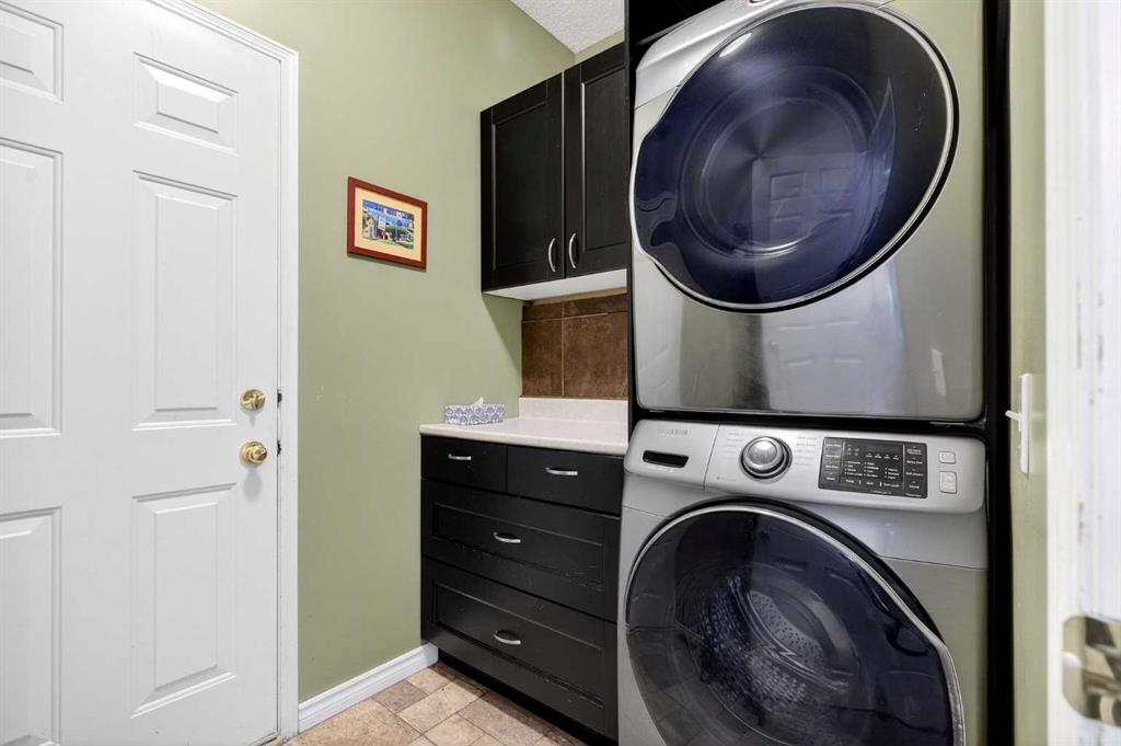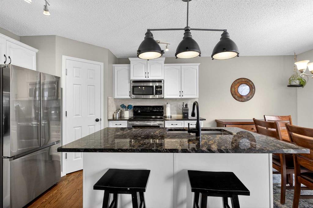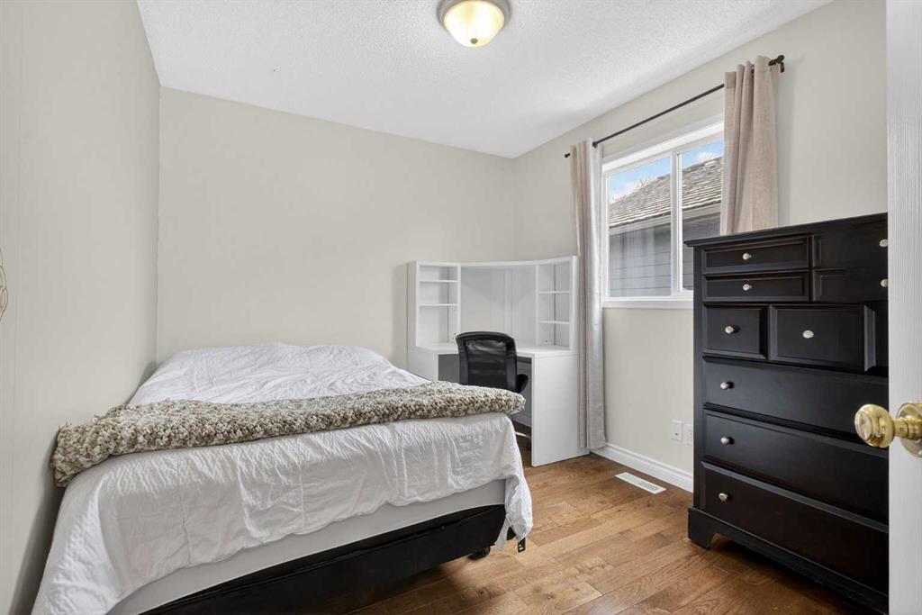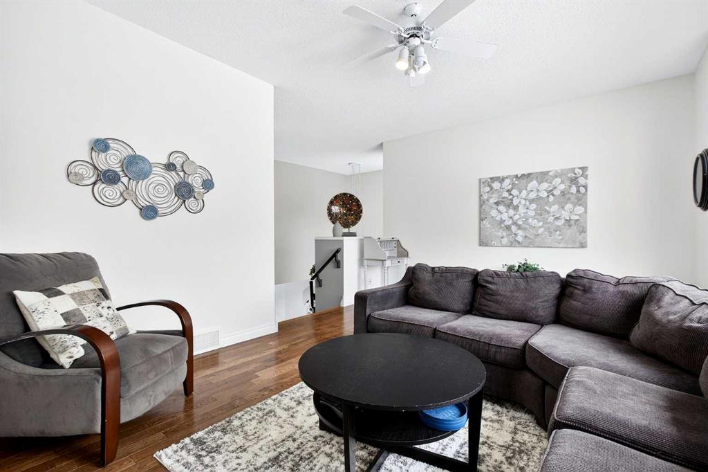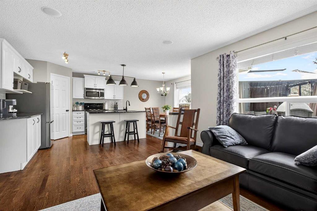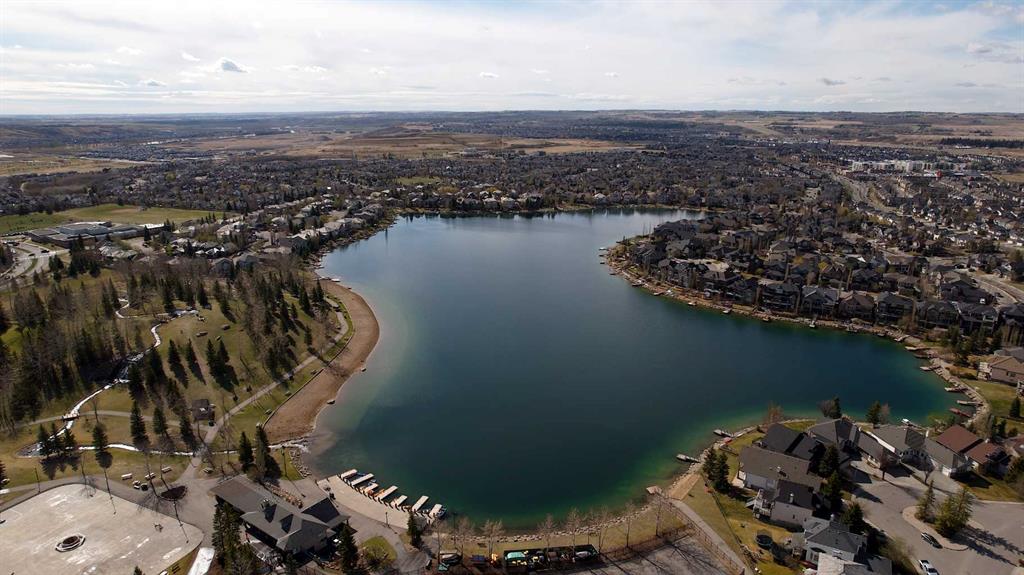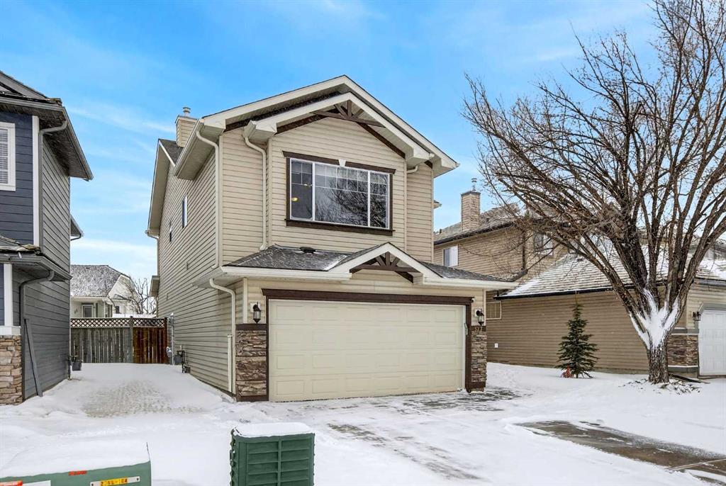 This beautifully maintained two-storey home offers a functional layout and thoughtful finishes throughout. Hardwood flooring extends across the main and upper levels, creating a seamless and inviting feel. The main floor features a warm and welcoming living room anchored by a corner stone-faced fireplace, a well-appointed kitchen complete with pantry, stainless steel appliances, and stone countertops, as well as a spacious dining area ideal for everyday living and entertaining. A convenient powder room and dedicated laundry/mud room add everyday practicality. Upstairs, a bright bonus room provides flexible living space, complemented by two well-sized bedrooms and a four-piece bathroom. The primary suite offers a private retreat with its own four-piece ensuite, including a relaxing soaker tub. The fully finished basement has a large carpeted recreation room, an additional bedroom, and a three-piece bathroom. Outside, enjoy the fully fenced backyard featuring a wood deck with gazebo and firepit—perfect for summer evenings. A double attached front garage and additional driveway parking complete the home. Recent updates include shingles (2025), paint throughout (2025), dishwasher (2025), HWT (2024), refrigerator (2024), furnace humidifier(2023) Residents enjoy access to exceptional community amenities including a private lake with beach, boat rentals and fishing, basketball and volleyball courts, tennis and pickleball courts, BBQ pits, fitness facilities, playgrounds, and a tobogganing hill, all within walking distance. Chaparral School and St. Sebastian are mere blocks away. With convenient access to Stoney Trail and Deerfoot Trail, commuting throughout the city is quick and easy.
