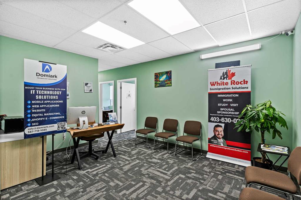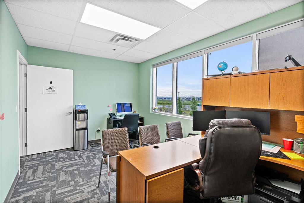 Invest in a fully rented office space located on the 2nd floor of one of the busiest retail plazas in Jacksonport, NE Calgary. This 1,516 sq/ft gross area (usable sq/ft is less, accounting for common areas) is fully developed and features eight (8)separate offices, all currently leased, along with a welcoming waiting area.The office boasts front and back man doors from the upper hallways and convenient elevator access. Ideally situated at the northwest corner of Metis Trail and 104th Avenue NE, this prime location is near vibrant communities such as Cityscape, Skyview, Cornerstone, and Redstone.