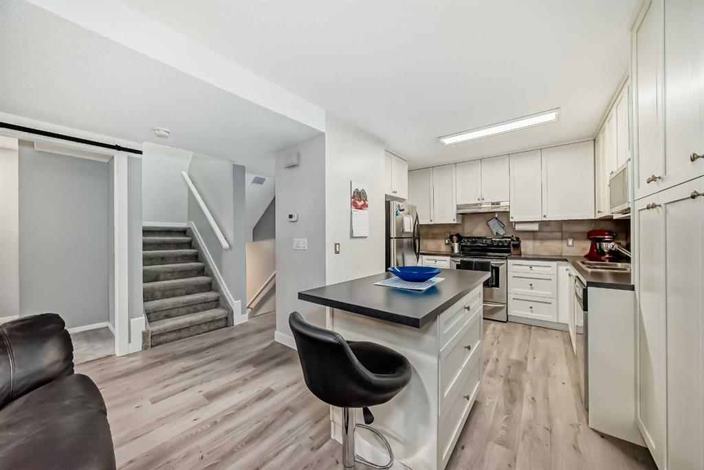 This fully renovated 3 bed/1 bath pet friendly stacked townhouse in a quiet complex in Forest Heights is a must see! The open plan main floor features updated luxury vinyl plank flooring throughout. The large newer renovated kitchen (2020) features full height white cabinetry, large pantry, good sized island and plenty of storage. The open concept living & dining space are great for entertaining family & friends. The first bedroom is off the main living area & features a glass door allowing in loads of light. The balcony overlooks the serene common area of the complex, perfect for relaxing on warm summer nights. The laundry/utility room has a new stacked washer/dryer, completing the main floor. Upstairs you’ll find a large primary bedroom featuring a large custom built in wardrobe. The good sized third bedroom features a large walk in closet. The 4 pc bath has been fully renovated (2021) with a large white vanity featuring tons of storage & soaking tub/shower combo. if storage is your thing the large custom built in cabinetry linen closet, with secret drawers as well as another good sized storage room for all your extra items! Other upgrades throughout include brand new carpet in the bedrooms & stairwells, new solid core doors throughout and new paint., as well as a new roof (2024). The quiet complex features plenty of green space and is close to Marlborough Mall, Peter Lougheed hospital, schools, playgrounds, recreation facilities and is centrally located for easy access to Memorial Dr & Deerfoot Trail, making getting downtown & around the city a breeze. Book your showing today!