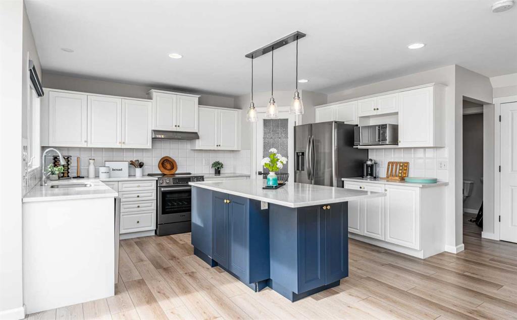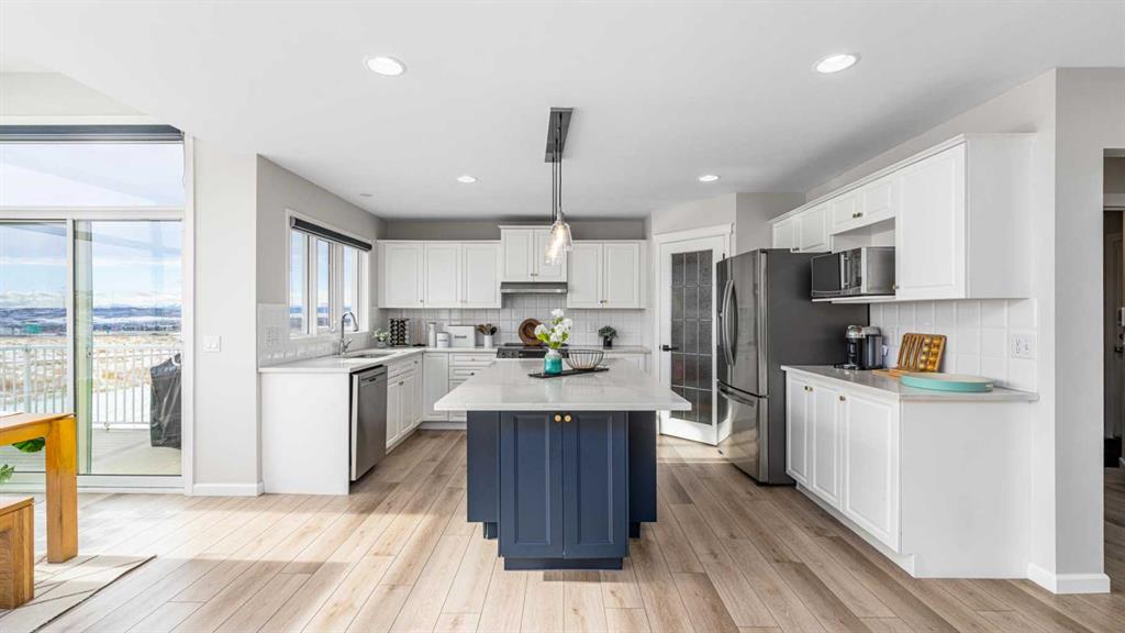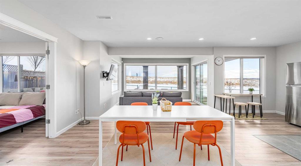 The main floor features a modern white kitchen paired with nearly new 2024 appliances, making everyday cooking a true pleasure. The kitchen flows seamlessly into the dining area and living room, where large south-facing windows fill the entire space with natural sunlight. From morning to evening, the main living areas are bright, warm, and inviting.