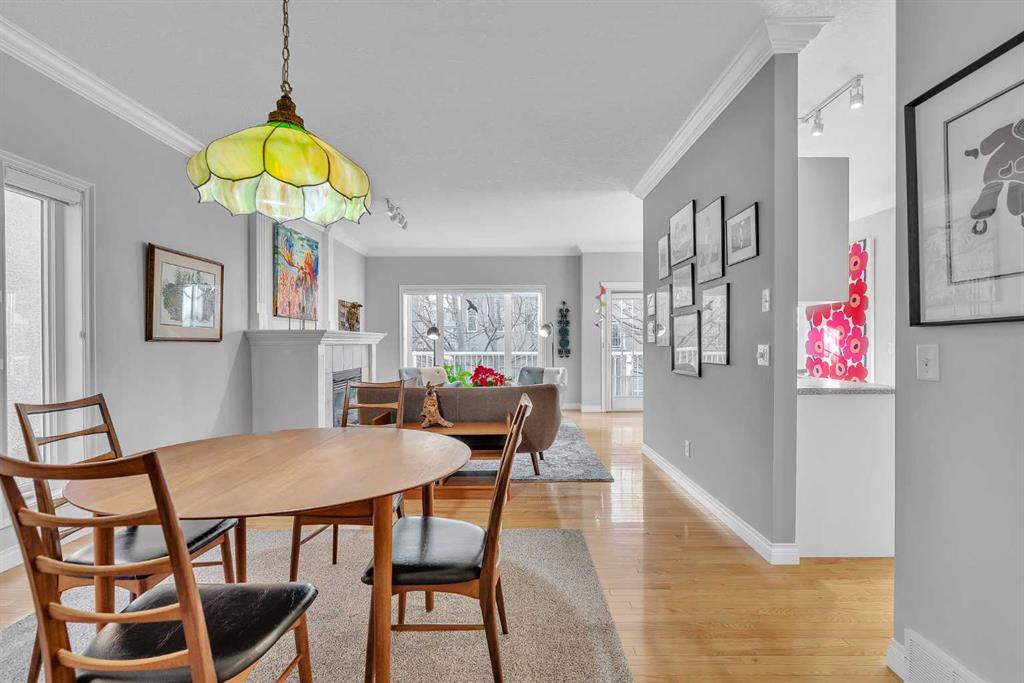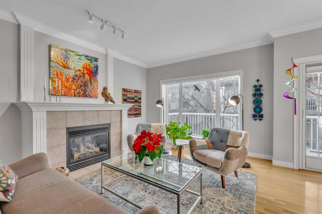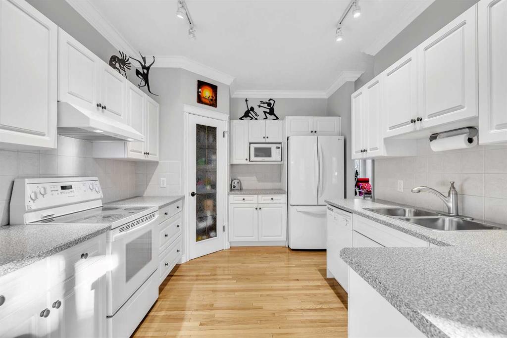 Natural light and timeless design, as well as one of the biggest floorplans in this complex, give this beautiful Shawnessy villa style and comfort in this sought-after adult (35+) estate area. Attractive landscaping frames the front porch, and inside, transom windows flood a spacious entryway with sunshine from the east. A front room makes a great home office, and features statement floor-to-ceiling windows that bring in the morning light for a perfectly illuminated workspace. The main living space begins with a sunny and open dining area. Clean lines and gorgeous hardwood balance warmth and elegance as you continue into the open living room. A gas fireplace is the focal point, inviting guests to cozy up for great conversation. In the kitchen, a monochrome palette creates an understated yet sleek aesthetic complete with white appliances. A full pantry is a desirable element, and counterspace is plentiful; sure to impress the chef of the household. A breakfast nook steps out to the balcony, with dappled shade from the treed courtyard – an ideal setting for winding down as you take in the sunset skies to the west. This level holds the primary bedroom, which is a peaceful private retreat. This secluded space includes a huge walk-in closet and an ensuite with a soaker tub and separate stand-up shower. A functional layout has the powder room and laundry just next to the entry from the double attached garage to finish this level. Downstairs, the finished basement provides tons of additional living space, with a large family room, another bedroom with a walk-in closet, and another full bathroom. The utility room also offers a massive storage area for all your seasonal items. This home has a central vac and air conditioning, as well as a new hot water tank. The complex itself is well laid out, with privacy and quiet as priorities. This home is very near the recycling and waste sheds and visitor parking, perks you and your guests will appreciate. This neighbourhood is popular for its green space, with pathways beginning only steps from your door and winding all the way to Fish Creek Park. Convenience is also a benefit; the Shawnessy shopping area is just minutes down the road, offering a plethora of stores, services, and amenities. The C-train is also nearby, giving commuters the option to hop on the LRT, or drive downtown via convenient access to Macleod Trail. Proximity to major routes like Stoney Trail put any area of the city in easy driving distance, and this community is also near Highway 22X, where you will find iconic Spruce Meadows, as well as an easy escape west into the mountains for your favourite outdoor activities like camping, hiking, mountain biking, and skiing. With 2195 sqft of developed space, this floorplan is a rare find, call today.