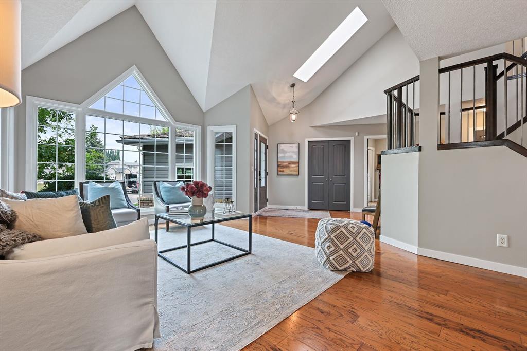 Situated on one of the largest lots in the community and backing onto green space and a dog park, the covered deck, mature trees, and perennial gardens create a private setting designed to capture exceptional sunset views — exclusive to this property within the neighbourhood.