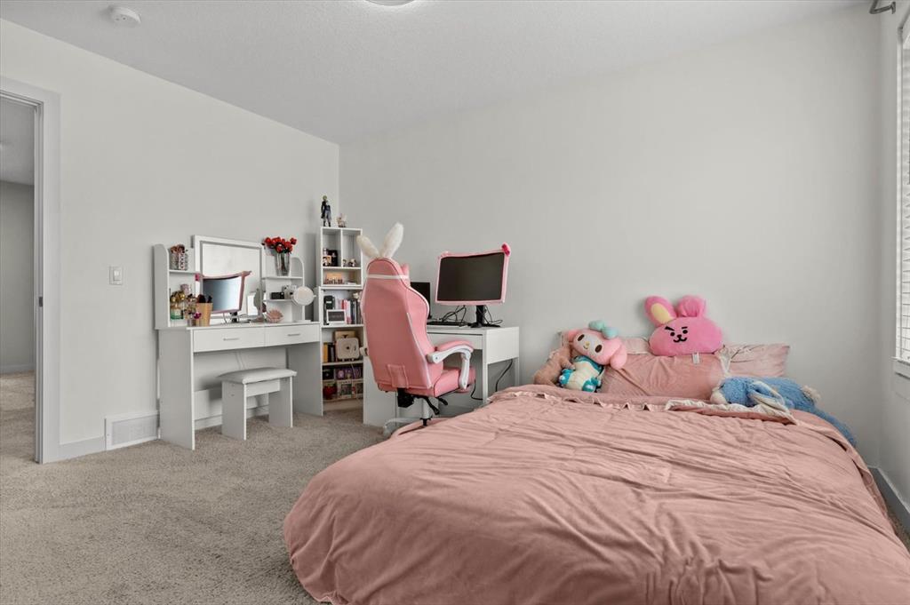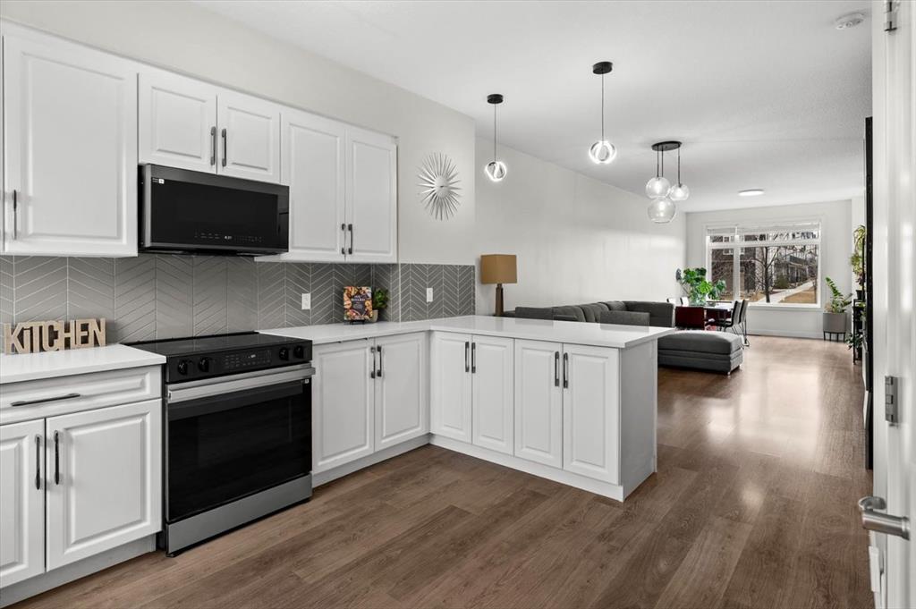 Are you looking to get into the market but shudder at being part of a condo corporation? What about into a newer townhome with air conditioning, a fenced yard and detached garage? Set across from a current green space that will eventually be a K-6 school, this is a wonderful home for a young family or if you plan on that in your future. Built by Streetside Developments and walkable to grab dinner at Cal City Pizza or Punjabi Chulha, this location is transit friendly and has easy access to both Stoney Trail and Metis Trail. Stepping inside the home to a tiled foyer with closet, this feels more like an inner-city infill instead of a townhome, thanks to 9’ ceilings, the large footprint and the kitchen being set back overlooking the yard. The front dining room is where you’ll share many laughs and memories, and the bright windows face west – allowing your plants to flourish. The center living room can fit an impressive sized sectional and is set across from a built-in media center, complete with storage cabinets and drawers, plus a statement panelled wall. The bright kitchen offers white quartz counters, grey chevron backsplash and a new upgraded smart appliance package with display fridge! The sink overlooks the back yard and is set across from the pantry and rear mudroom. This level completes with a powder room and access to the fenced yard and detached garage. Upstairs, plenty of room including an owner’s suite with walk in closet and a 4-piece ensuite! You will also find a large center bonus room, laundry and a second bedroom with a 4 piece bathroom set right next to it – so it feels like a dual primary. The lower level has high ceilings and awaits your development ideas. This home also provides new window coverings, replaced roof and siding – all while being at an affordable price. Contact your trusted agent to book a showing before She Gon’!