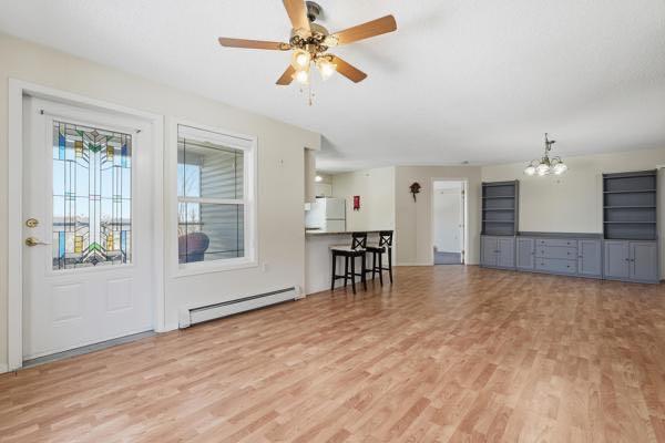 Welcome to this beautifully maintained 60+ condo in the heart of Millrise, offering comfort, convenience, and a true sense of community. Freshly updated with brand new carpets, this bright and inviting unit is move-in ready and designed for easy, low-maintenance living.