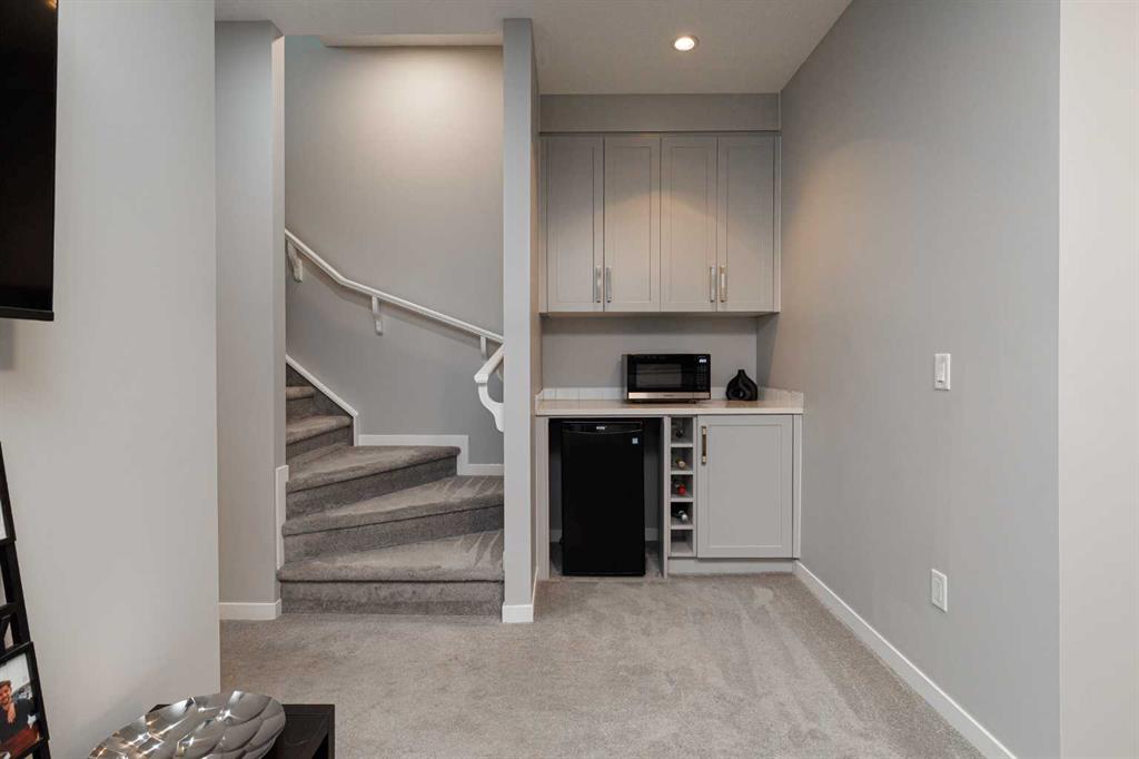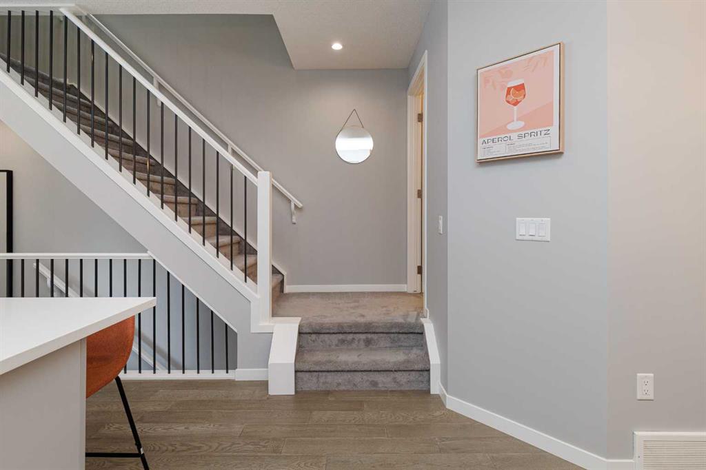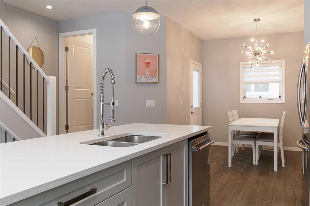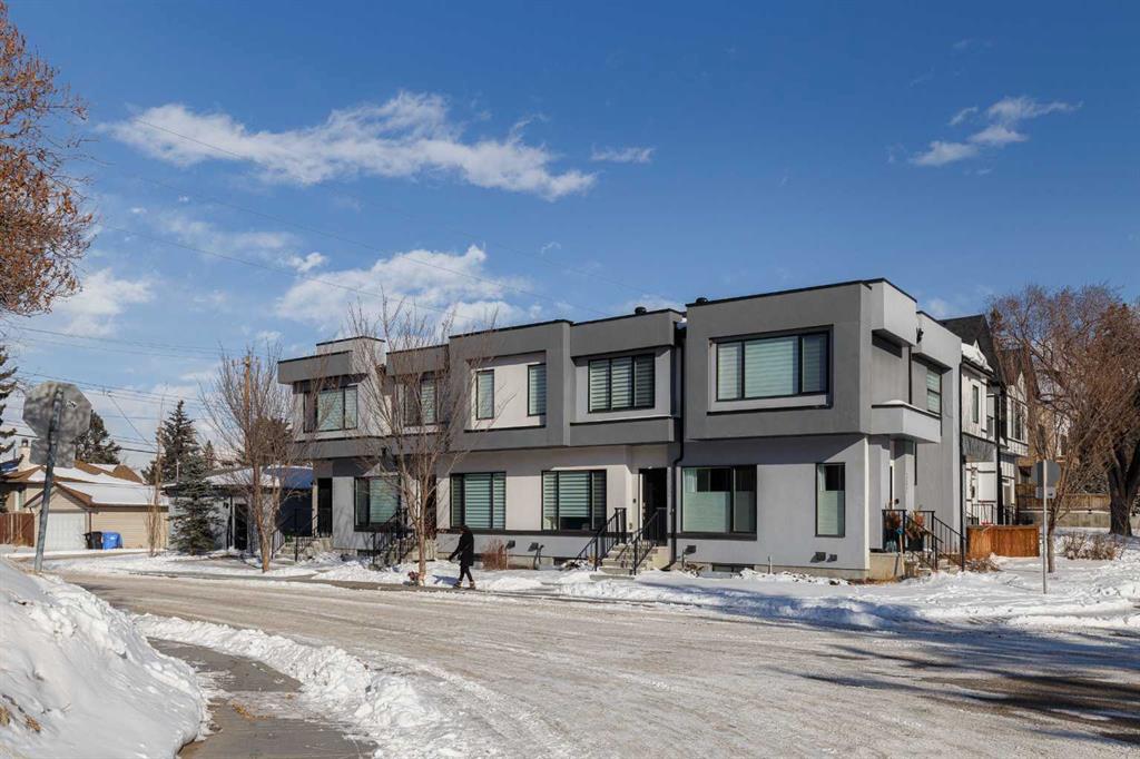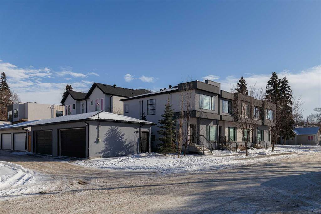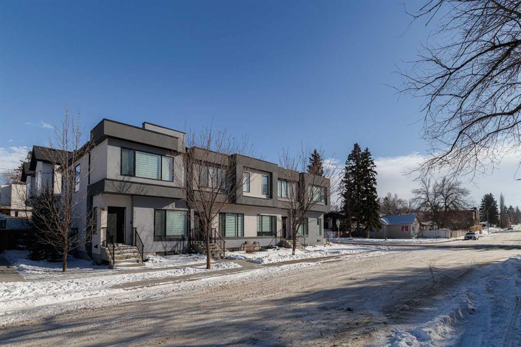 OPEN HOUSE – Saturday, Feb 28. 1:00-4:00 Ideally situated on a serene, tree-lined street in the sought-after community of Highland Park, this exquisitely designed townhouse awaits. Upon entering, you are welcomed by an expansive, sun-drenched floor plan characterized by massive West facing windows that bathe the interior in a warm, natural glow, highlighting the sophisticated modern finishes and wide-plank flooring throughout. The inviting front living room serves as a perfect sanctuary for relaxation, anchored by a sleek focal fireplace with a floor-to-ceiling stone surround. Flowing effortlessly from the living area is the central kitchen featuring an oversized quartz island, stainless steel appliances, and high end cabinetry. This culinary hub transitions gracefully into a dedicated dining area, making the main level an ideal setting for both intimate family evenings and grander entertaining. A two piece washroom completes this floor. The upper level is thoughtfully designed, and houses three bedrooms including a generously sized primary retreat with a walk-in closet and a four-piece ensuite. Down the hall, are the other two bedrooms, and an additional full bathroom. For added convenience, the laundry facilities are located on this upper floor. Extending the living space further, the professionally finished basement features a large recreation room, a stylish bar, a fourth spacious bedroom with walk-in closet, and a third full bathroom, making it perfect for guests or a family member wanting their own separate living space. Beyond the interior, the property includes a small, fenced backyard space, as well as a single detached garage for secure, convenient parking. This is a great opportunity to live in an amenity rich, vibrant neighbourhood, just minutes away from the recreational opportunities at Confederation and Nose Hill Park. Call today to book your showing.