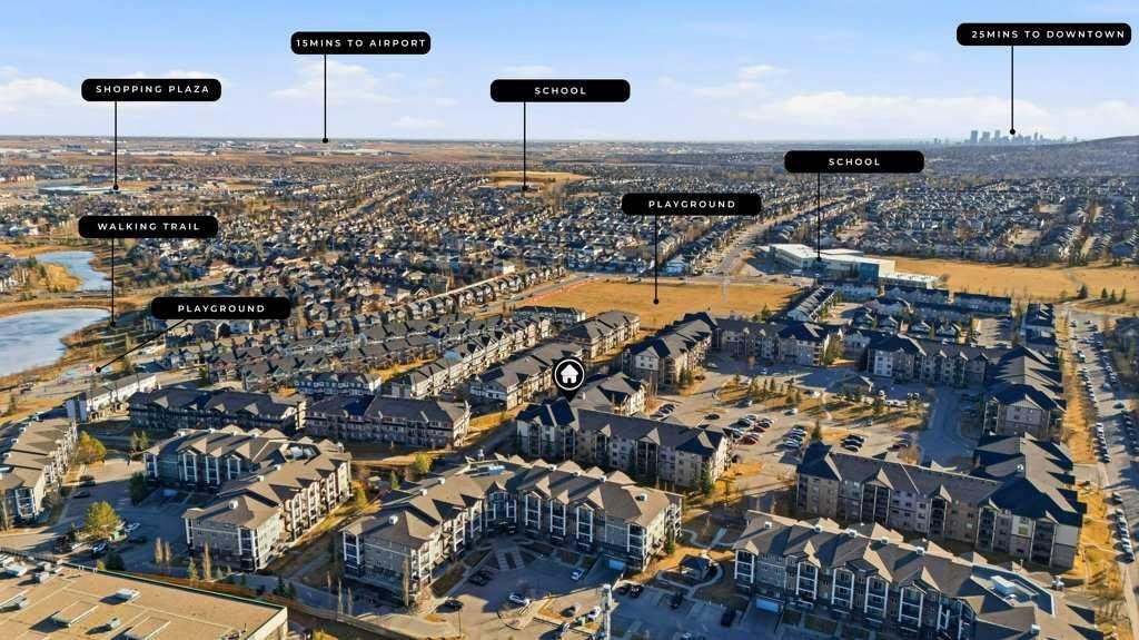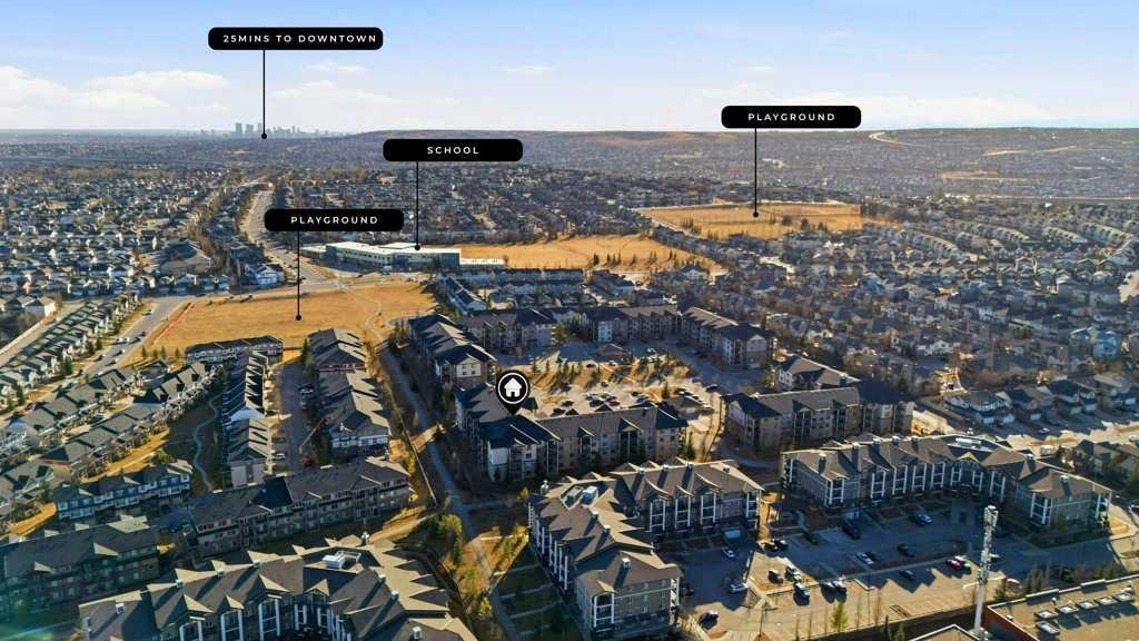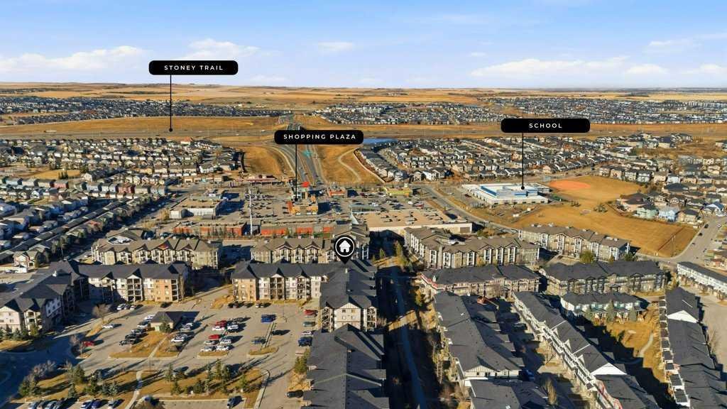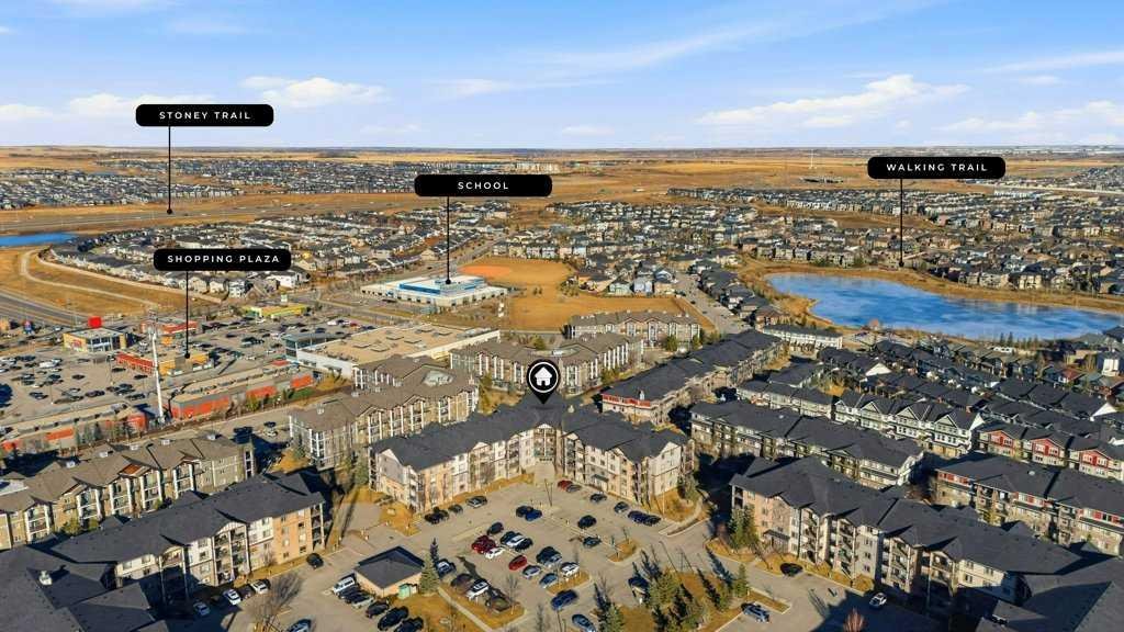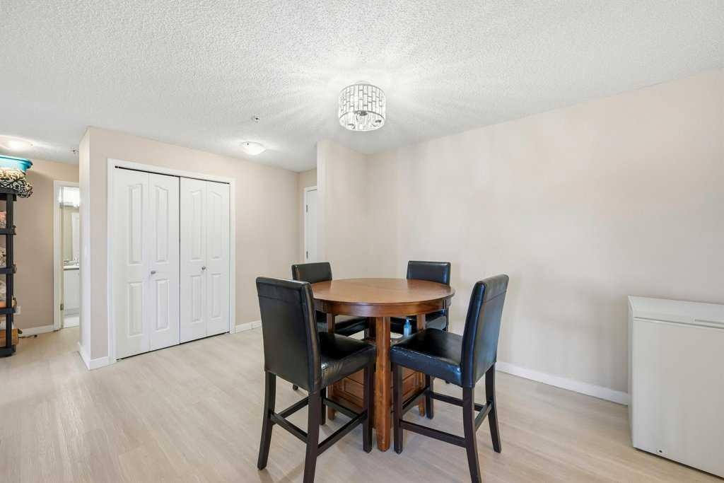 Welcome to Panorama Hills, one of the most desirable communities in Northwest Calgary, a friendly, welcoming neighbourhood with unbeatable convenience. Enjoy walking distance to amenities, excellent schools, parks, and pathways. This bright third-floor condo features an open-concept floor plan and is flooded with natural light. The unit opens to a spacious foyer with a large mirrored closet, leading into a generous dining area that easily accommodates a table for 4–6. The corner kitchen offers ample cabinetry and flows seamlessly into a large, inviting living room.