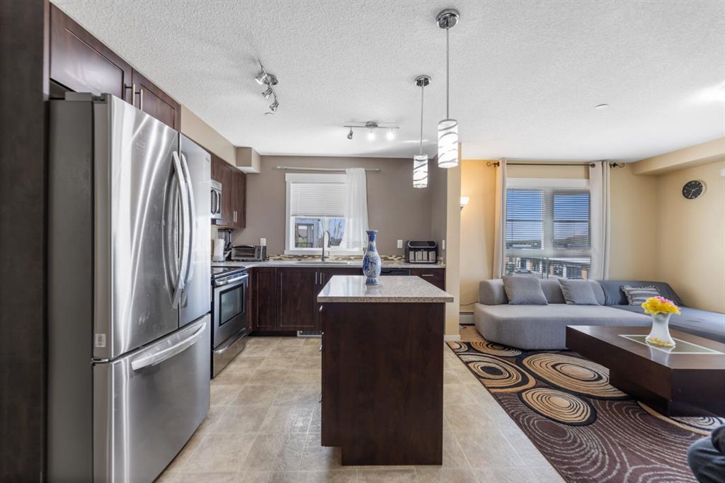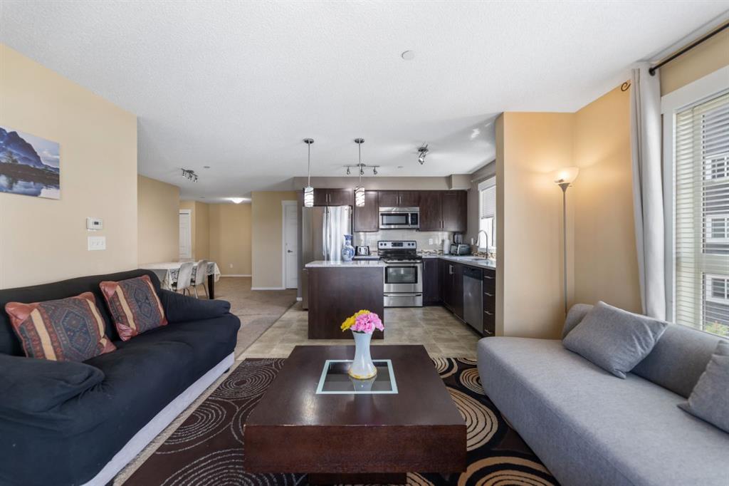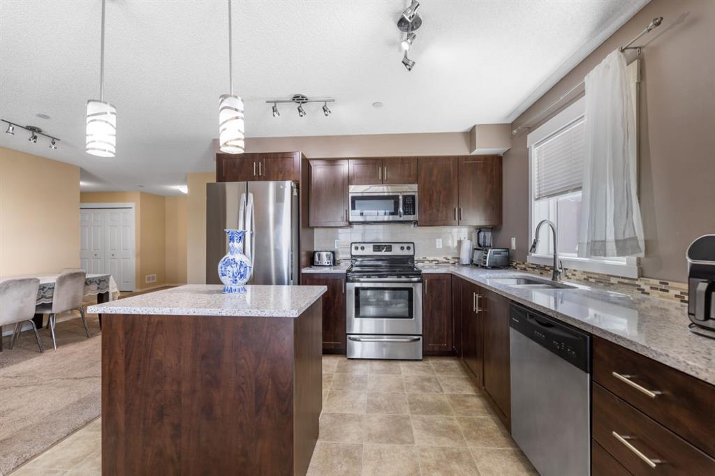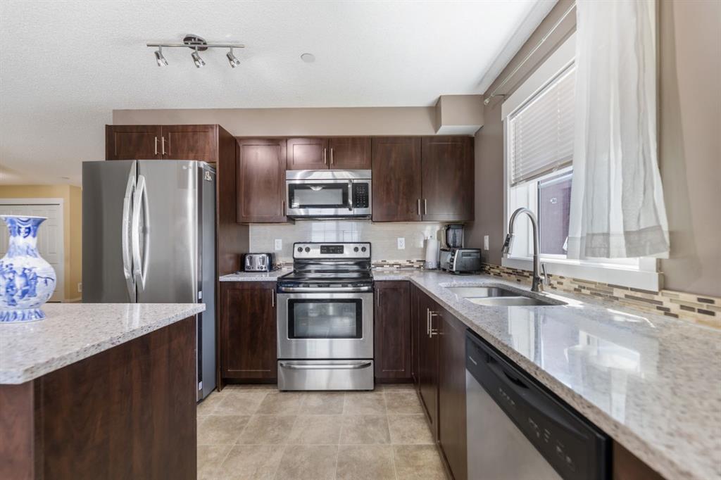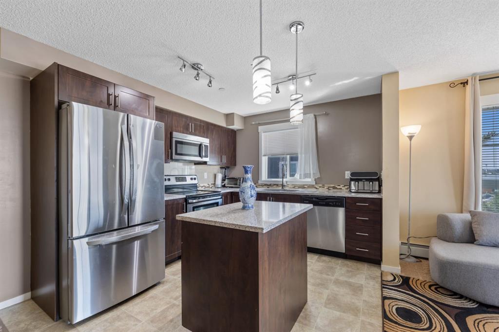Maintenance-Free Living in Copperfield – 2 Bed, 2 Bath Condo with a Balcony Welcome to this beautifully maintained third floor unit located in the highly sought after and amenity rich community of Copperfield. This spacious 2-bedroom, 2-bathroom condo offers the perfect blend of comfort, style, and convenience, ideal for professionals, small families, or anyone looking to enjoy a low-maintenance lifestyle. Designed with an open concept layout and equipped with central air conditioning, this home features a modern kitchen with stainless steel appliances, ample cabinetry, elegant countertops, a central island with breakfast bar seating, and contemporary lighting. The bright and inviting living room opens to a balcony, offering natural light throughout the day and a gas BBQ hookup perfect for entertaining or relaxing outdoors. The well designed floor plan ensures privacy, with the two bedrooms located on opposite sides of the unit. The primary bedroom includes a spacious walk through closet leading to a 4-piece ensuite bathroom complete with a soaker tub. A second generously sized bedroom, an additional 4-piece bathroom, and in-suite laundry round out the unit’s practical features. Additional highlights include a titled parking stall and condo fees that cover nearly all utilities, making this a stress free and cost effective living option. The building itself is exceptionally well maintained and professionally cleaned three times a week, contributing to a consistently clean, quiet, and welcoming atmosphere for residents. Copperfield is a vibrant and family friendly community known for its extensive green spaces, scenic walking paths, ponds, and playgrounds. Residents enjoy access to a variety of recreational amenities including a community center, skating rinks, tennis courts, and an active homeowners association that hosts events year round. With close proximity to schools, shopping, dining, and major roadways, Copperfield offers the perfect balance of suburban tranquility and urban convenience. Don’t miss this opportunity to be part of a thriving community while enjoying modern, maintenance free living!
