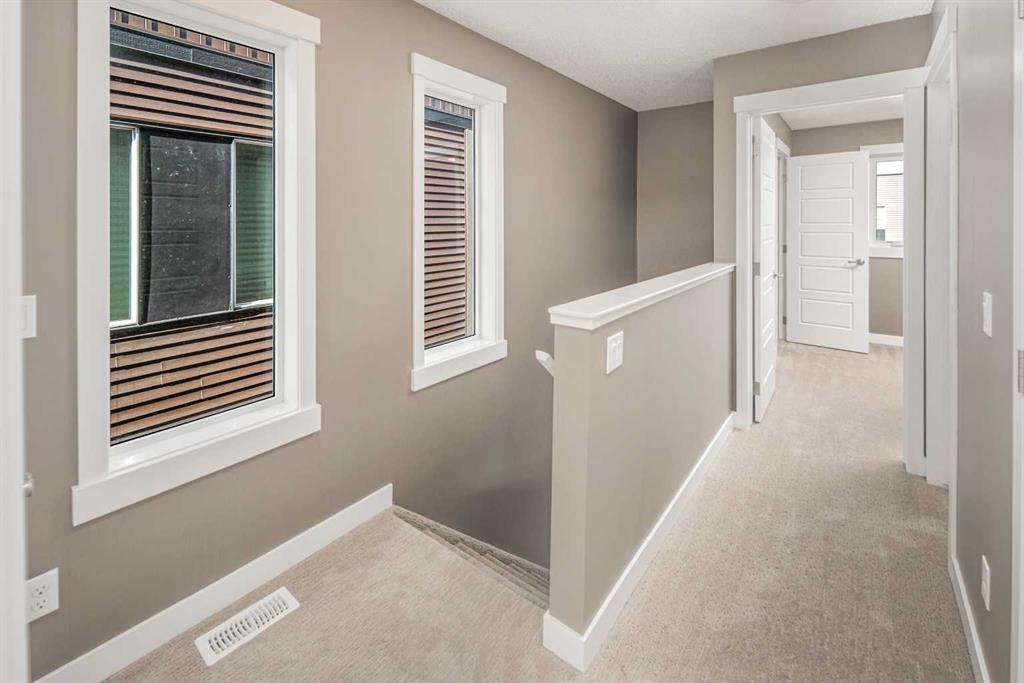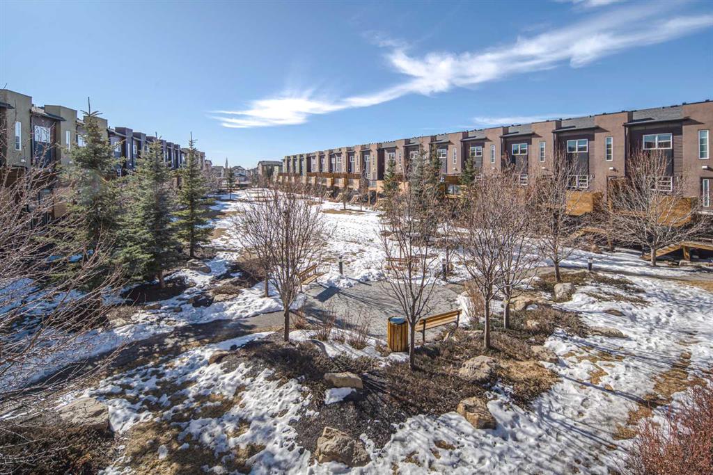 Welcome to this end unit townhome backing onto a lush courtyard—one of the desirable units in Coventry Station. This well-designed home features 2 bedrooms, 2 bathrooms, a versatile flex room, a private outdoor entrance, and an attached single garage, offering the perfect blend of space, functionality, and privacy. The open-concept main level is ideal for everyday living and entertaining, showcasing hardwood flooring and large windows that fill the space with natural light. The stylish kitchen is equipped with granite countertops, dark espresso cabinetry, and stainless steel appliances, and flows seamlessly into the living and dining areas. Step out onto the spacious elevated deck overlooking the courtyard, an ideal spot for relaxing, entertaining, or enjoying your morning coffee. Upstairs, the primary suite offers beautiful courtyard views, a walk-in closet, and a 3-piece ensuite with a walk-in shower. The second bedroom is generously sized and conveniently located next to a full 4-piece bathroom and an upper-level laundry area. The ground-level flex room provides excellent versatility and is perfect for a home office, gym, or creative space. It also features its own private outdoor entrance for added convenience. From the upper deck, stairs lead to a lower patio area, expanding your outdoor living options. Located in the heart of family-friendly Coventry Hills, this home is just minutes from schools, parks, shopping, and the renowned Vivo Recreation Centre. With quick access to Stoney Trail and Deerfoot Trail, commuting across the city is easy and convenient. Don’t miss this opportunity—book your private showing today!