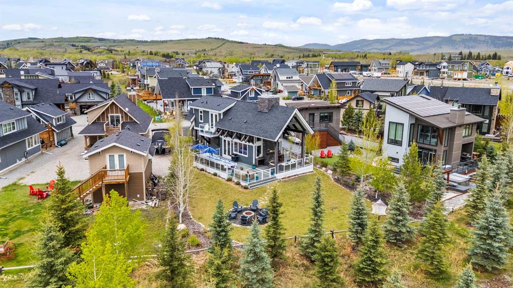 Upstairs, you’ll find a cozy bunk room that sleeps four, perfect for kids or guests, alongside the primary bedroom and a 3-piece bathroom. The fully finished basement extends your living space with a generous recreation room and hosts the laundry area, offering both comfort and practicality. The magic continues outdoors where a wraparound deck invites you to host unforgettable gatherings under the stars. Lounge by the second wood-burning fireplace, unwind in the inflatable hot tub, or simply soak in the peaceful surroundings of this dark sky community. A separate carriage house offers even more flexibility, featuring its own coffee bar, queen sized bunk beds, and another 3-piece bathroom – perfect for hosting extended family, guests, or creating a private retreat space. As part of this exclusive lakeside community, you’ll enjoy unmatched amenities including lake access, an indoor pool, hot tub, tennis courts, fitness facility, community dock, kitchen, and beach volleyball courts – all set against the stunning backdrop of the Rocky Mountains.