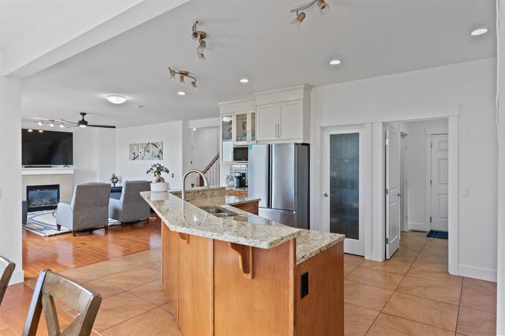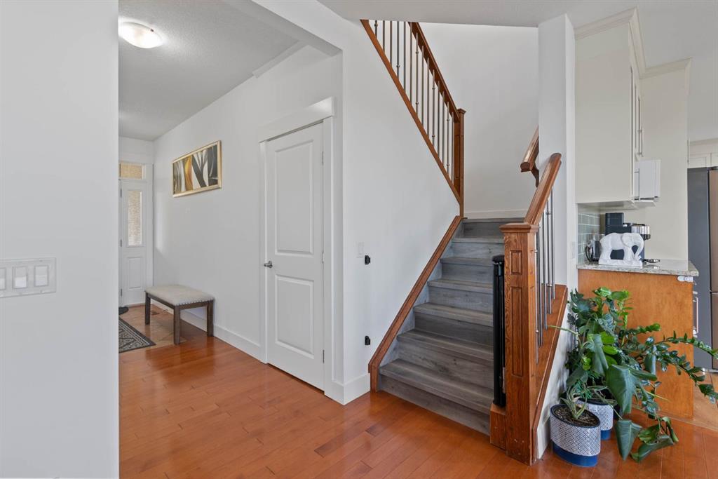 From the moment you walk in, you’ll notice the attention to detail everywhere — from the spacious tiled foyer to the 9-foot knockdown ceilings and rich hardwood floors that flow throughout the main level. French doors open to a bright main floor den, ideal for your home office or study.