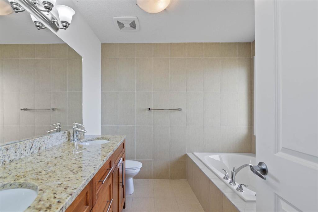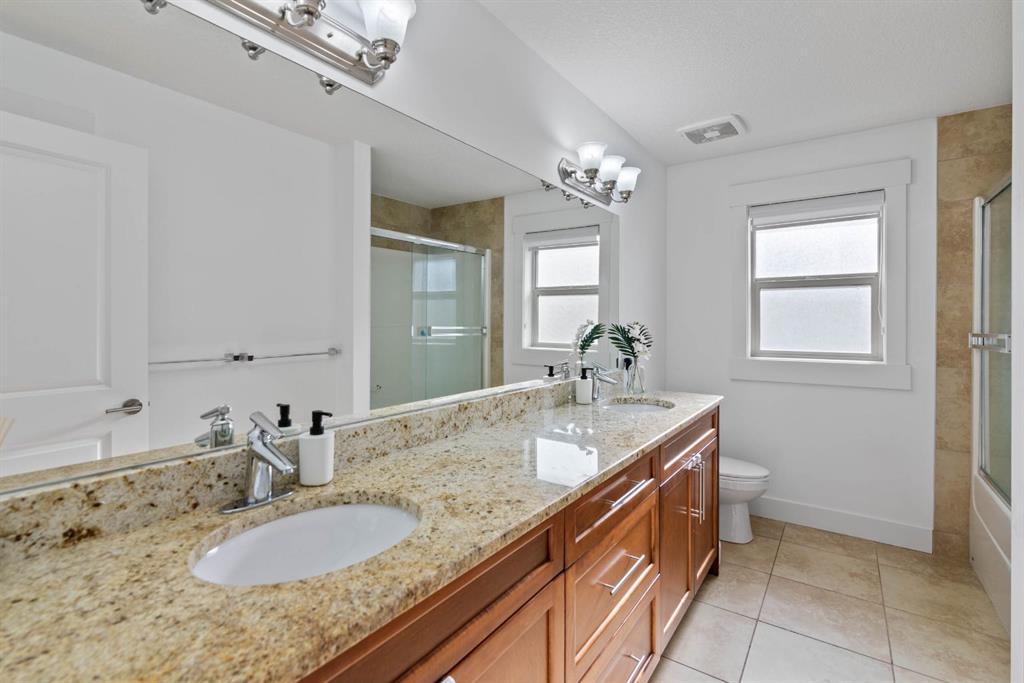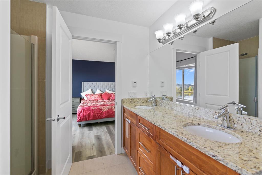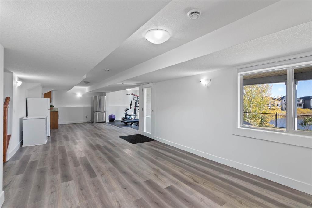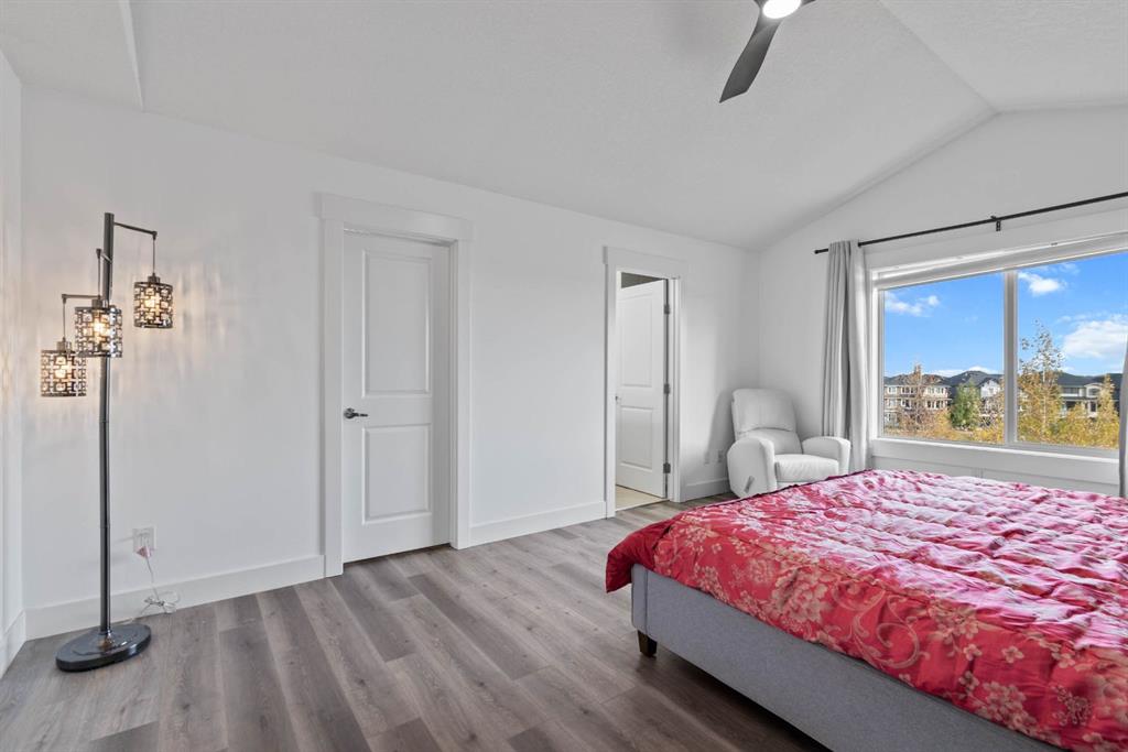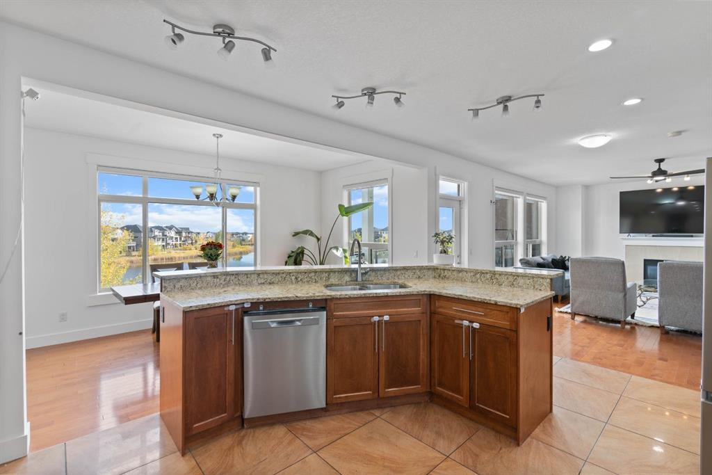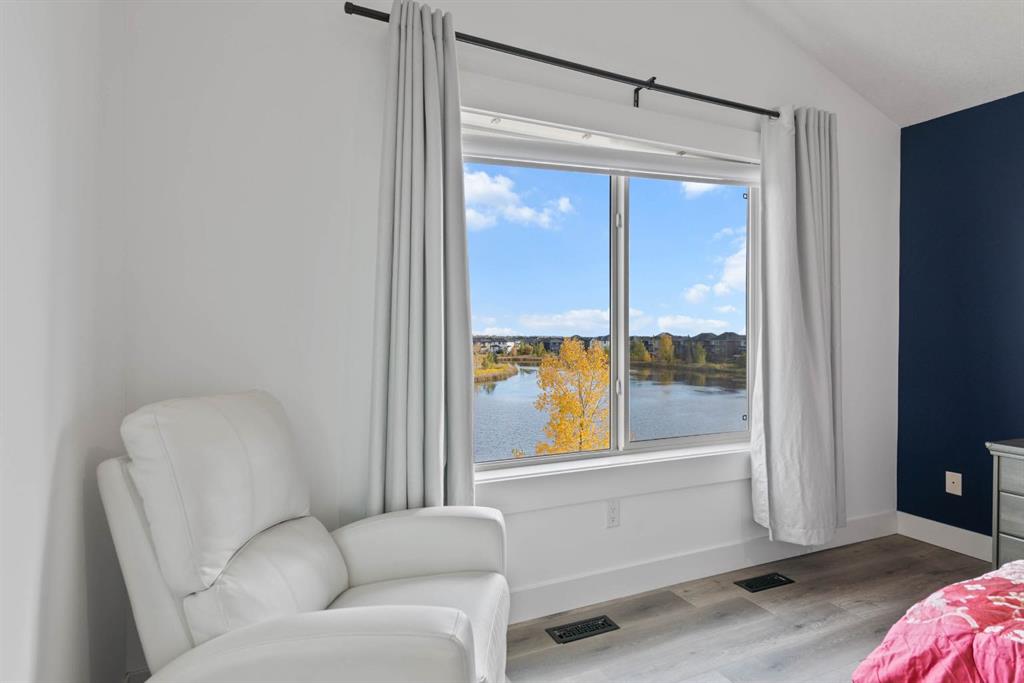 Upstairs, you’ll find four spacious bedrooms, including a luxurious primary suite with vaulted ceilings and picturesque pond views. The spa-inspired ensuite includes double granite vanities, a large soaker tub, a separate shower, and heated tile floors (also found in every bathroom!). A bonus room and stylish 5-piece main bath complete the upper level — perfect for family movie nights or a homework zone. No carpet anywhere — just elegant hardwood , tile and vinyl plank throughout, combining luxury style with easy upkeep.