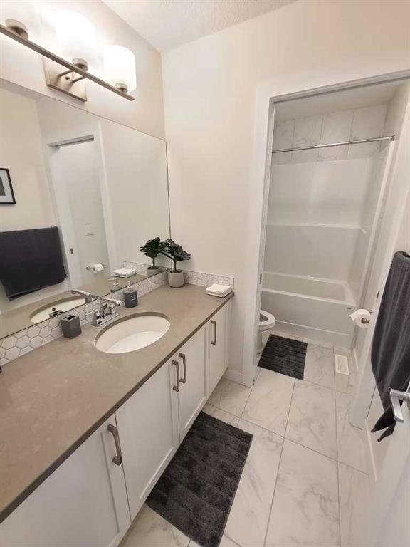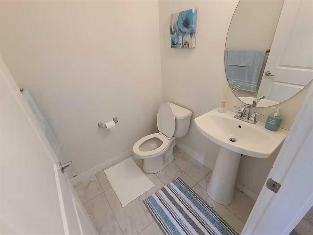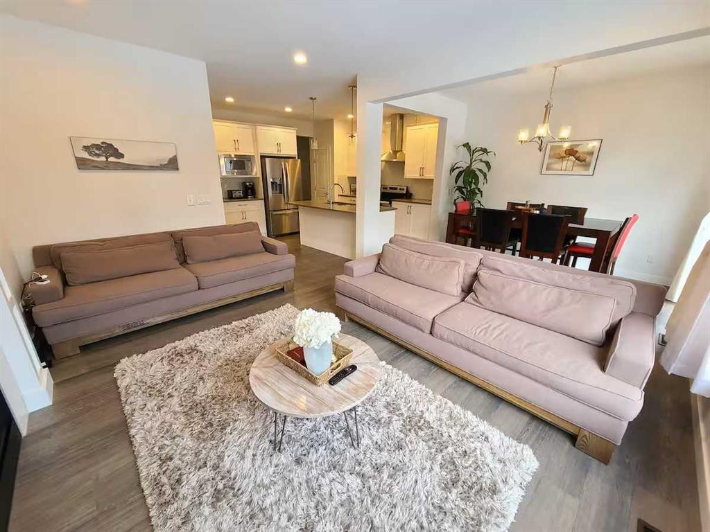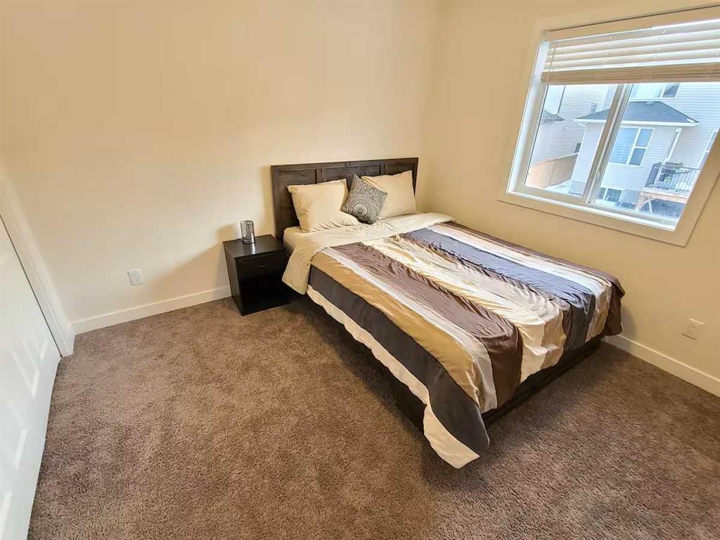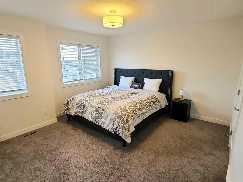 Welcome to Bayview! This stunning 2-story, 3-bedroom home is in excellent condition and has been lovingly maintained. The main floor boasts an open-concept design with 9-foot ceilings, high-quality laminate flooring, upgraded stainless steel appliances, a pantry, a dedicated dining area, and a cozy gas fireplace in the living room. Upstairs, the large primary bedroom features a luxurious ensuite with a tiled shower and a walk-in closet. The two additional bedrooms are spacious and filled with natural light from large windows. The second floor also includes a central bonus room. The basement is thoughtfully designed, with the mechanical area tucked to the side for extra space, large windows that could accommodate a fourth bedroom, and a bathroom. The southwest-facing backyard is generously sized and includes a large deck. Located in a peaceful neighborhood, this home is conveniently close to schools, parks, churches, canals, and all the amenities Airdrie has to offer.