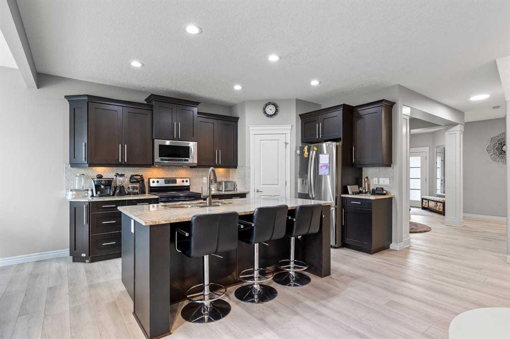Terrific family home in the family oriented community of Bridlewood. Quality built by Centrex Homes with close to 2000 SQFT.Close to all amenities. Close to schools, playground, public transportation and Laminate through out the house, granite counter top. Unique 2 way fire place (Inside facing the family room/out to the deck. See the picture)over size jetted tub. You truly would be proud to call this home…Your Home..:).