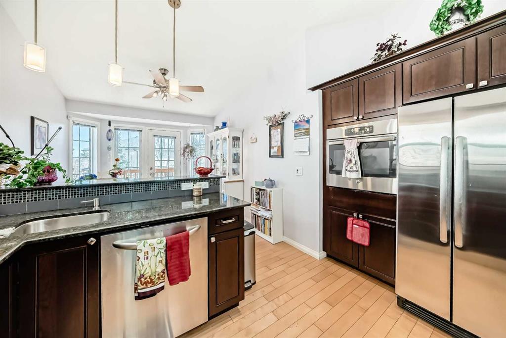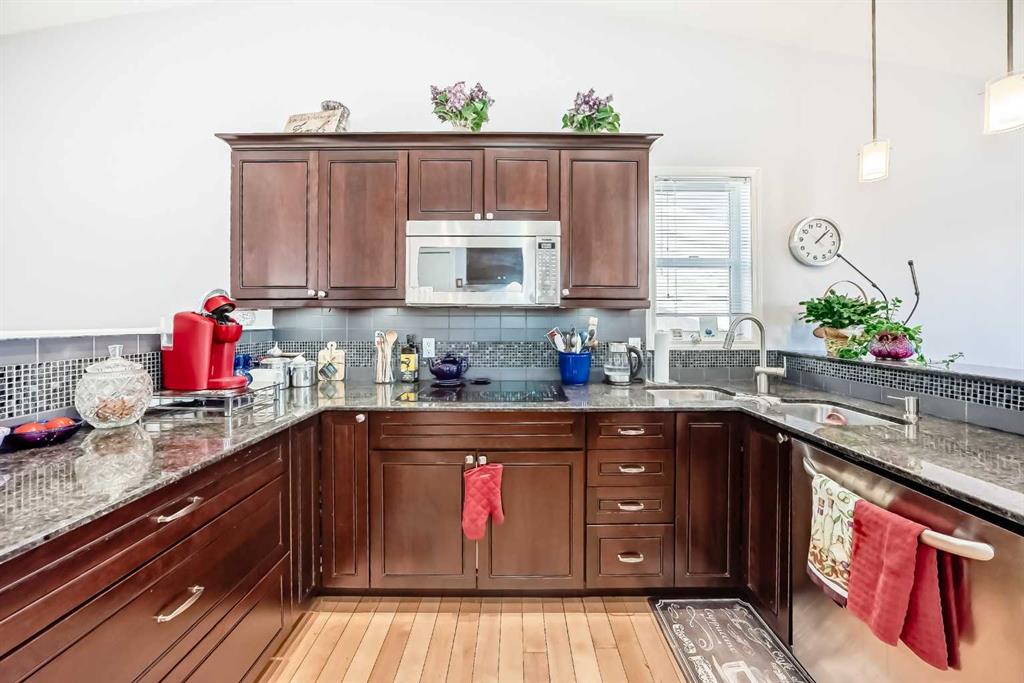 This charming bungalow villa is located in the desirable 55+ age restricted community of Harvest Lake Greens Villas, combines convenience and style. This Walk out bungalow with 1793 square feet of developed living space is ideally located on a quiet cul-de-sac. This is not a condo! There is a management company and HOA that takes care of the snow and the landscaping. Main floor features spacious open living room, kitchen with breakfast bar, dining area and an additional bedroom, 4-piece bathroom and main floor laundry. The primary bedroom is spacious and designed with a focus on comfort and practicality. It includes a private three-piece en-suite bathroom, complete with walk-in shower, adding convenience to everyday routines. Additionally, a roomy walk-in closet offers ample storage space, making it easy to stay organized. The developed area in the walk out basement is currently used as a large family room with two spacious bedrooms and a 4-piece bathroom. This home has a double attached finished garage and a front driveway for additional parking! Brand new roof shingles! (2025) This lovely property won’t last long! Call your favorite Realtor to set up a private showing!