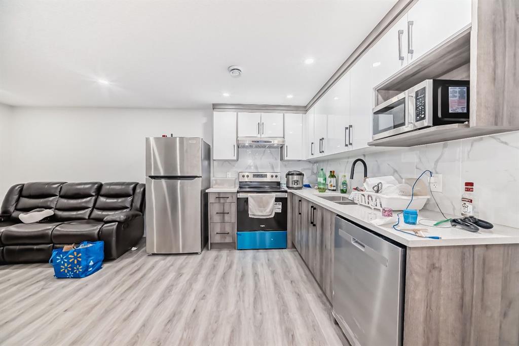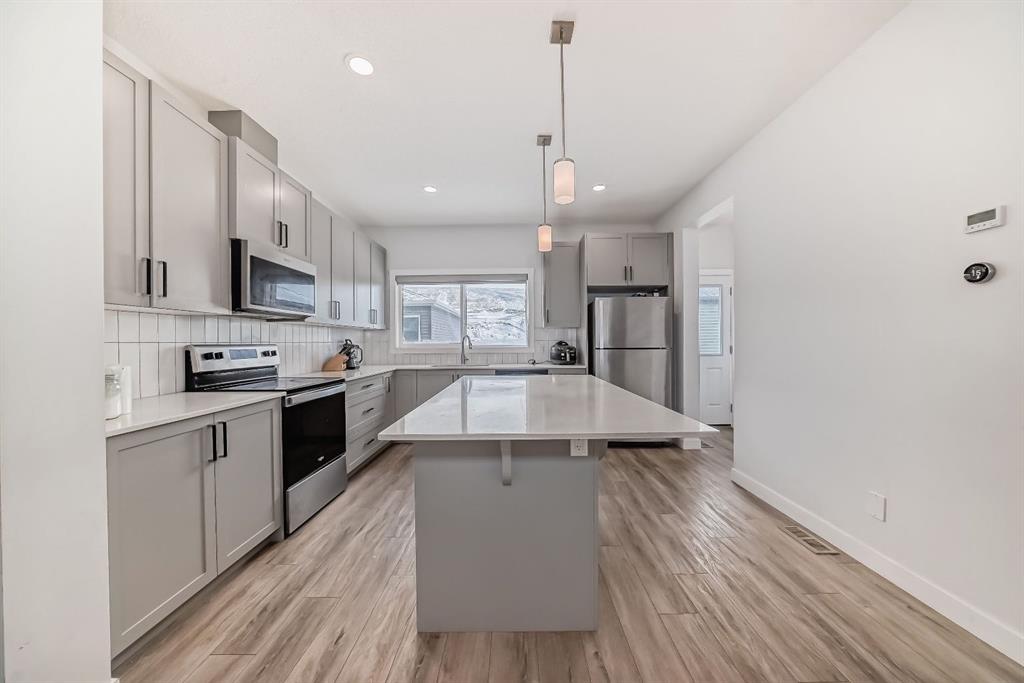 Discover the perfect blend of modern elegance and everyday comfort in this stunning 2023-built duplex, nestled in the vibrant Wolf Willow community! This home welcomes you with 3 spacious bedrooms upstairs with 1 bedroom downstairs , a family room, 2.5 stylish bathrooms, and an open-concept floor plan designed to inspire with soaring ceilings, recessed lighting, and an abundance of natural light. The sleek, contemporary kitchen is a masterpiece, featuring quartz countertops, stainless steel appliances, chic two-tone cabinetry, a modern backsplash, and a generous walk-in pantry for all your storage needs. The bright and inviting living and dining areas provide an ideal setting for entertaining or creating cozy family moments. Upstairs, escape to the grand primary suite, complete with a walk-in closet and a spa-like ensuite, while two additional bedrooms, a well-appointed 4-piece bathroom, and a convenient upper-level laundry room add to the thoughtful design. Additional highlights include a mudroom with closet storage, a Legal basement with a side entrance and legal suite for additional investment income and a rear concrete patio with a concrete double parking pad with paved alley access. Enjoy easy access to major roads, transit options, grocery stores, and essential amenities. The community offers incredible community perks like walking paths, playgrounds. This home delivers style, comfort, and convenience in one irresistible package. Don’t miss out — schedule your showing today!