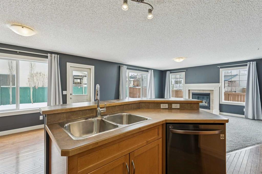 Meet “Sage” – The Natural Light Lover’s Dream – Situated on a large corner lot in Sagewood, this well-maintained home offers space, light, and flexibility both inside and out, complete with an attached double garage. The west-facing backyard is ideal for evening sun and features a brand new deck (2025), with potential for RV parking, adding even more versatility. Inside, the main floor is bright and inviting with abundant natural light, a functional kitchen complete with pantry and eating bar, and recent upgrades including a new fridge (2025), gas range (2022), and hood fan (2026). The living room centers around a cozy gas fireplace with an abundance of windows, while a convenient 2-piece bathroom and laundry room featuring a new washer (2025) and dryer (2026) complete the level.