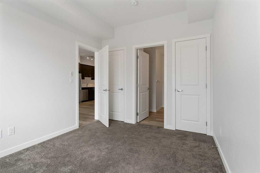 Stylish, well laid out TOP FLOOR 2 bedroom, 2 bathroom condo. Located in popular Sage Hill in the well maintained “Mark 101” by Shane Home, walking distance to shopping and amenities! Features include 9 foot ceilings, Luxury Vinyl Plank flooring and quartz counter tops throughout , vinyl windows with sleek blinds, and in-suite laundry. As you enter the unit, you will find a 4 piece bathroom, and the laundry closet. The modern Kitchen has a functional and warm feel, with dark brown laminate finished cabinets, quartz countertops, modern white subway tile backsplash and stainless steel appliances. Opening on to the kitchen is the family room with a large, bright, sunny window and a patio door leading to your private covered balcony, with gas line roughed in. The primary bedroom has an en-suite bathroom and double closets. The second bedroom is across the family room from the primary allowing for maximum privacy. This unit also includes 1 titled underground parking stall, a storage locker, and there is secure bike storage available in the parkade. Condo fees are affordable and include heat/water/sewer. Located just steps away from public transit, shopping, restaurants, and many other amenities, this is a GREAT place to live OR a wonderful investment property.