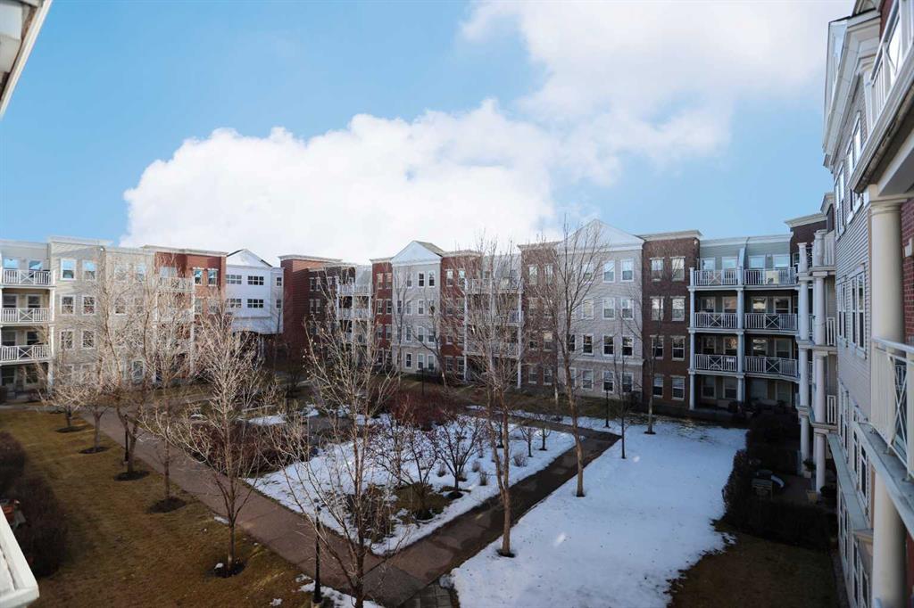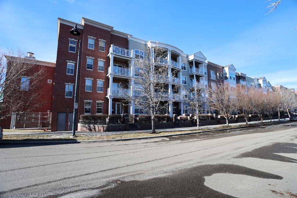 Here is the sought-after neighbourhood of Garrison Green is this fantastic 1 bedroom condo the popular GATEWAY GARRISON GREEN project, walking distance to beautiful Peacekeepers Park with its memorial to our veterans. Available for quick possession, this 3rd floor unit enjoys laminate floors & high ceilings, maple kitchen with granite counters, titled underground parking stall & covered South-facing balcony overlooking the central courtyard. You’ll love this sun-drenched home with its open concept floorplan, featuring the spacious living/dining room & stylish kitchen with island & pantry, black subway tile backsplash & stainless steel appliances which includes a Bosch dishwasher. Great-sized bedroom with 2 windows looking out onto the balcony. Full bathroom with shower/tub combo & laundry closet with space-saving Whirlpool washer/dryer. Overlooking the courtyard, the balcony – complete with natural gas line for your BBQ, is the perfect spot to relax, unwind & enjoy the fresh open air. Also included with this terrific home in this concrete building is a titled parking stall in the secure underground parkade & titled storage locker which is conveniently located just steps from your parking spot. Monthly condo fees include heat, water-sewer & electricity, plus access to the building amenities: main floor fitness centre & yoga studio, residents lounge, bike storage & library; there is also an onsite property manager, underground visitor parking & guest suites you can rent. Prime location just minutes to Mount Royal University, transit & trendy Marda Loop, North Glenmore Park, highly-ranked schools, museums & downtown.