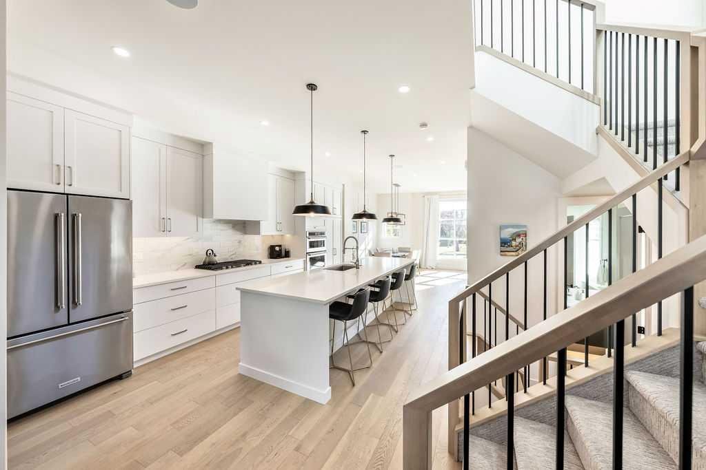 ** OPEN HOUSE – Saturday, October 18 from 1-3pm ** STUNNING HOME looking out onto a beautiful PARK and situated on a CORNER for maximum natural light throughout! This home was built thoughtfully with luxury UPGRADES from top to bottom. As you enter the home from the private side main entrance you will be greeted with the high ceilings and streams of natural light coming in through the large front windows. The amazing chef style kitchen features custom solid slab cabinetry with lots of storage, beautiful large island with plenty of seating and all upgraded appliances. Enjoy relaxing in the cozy family room by the gas fireplace. Custom built-in shelving and large patio doors make this room a great place to entertain. A large mudroom with plenty of custom cabinetry makes it easy to tuck away coats and shoes. A stylish 2 piece bathroom with soaring ceilings completes the main level. The upper level features a beautiful primary retreat looking out onto the park through it’s large bright windows. The ensuite features heated floors, oversized custom shower, beautiful stand alone bath tub and a double vanity. The walk-in closet has plenty of built-in cabinetry and closet space. An additional 2 bedrooms, full 5 piece bathroom and large laundry room complete the upper level. The lower level is great for entertaining or relaxing in the large family room with built-in entertainment center and custom built bar with high end beverage fridge. An additional bedroom and full 4 piece bathroom are a great addition to the lower level. Feel comfortable all summer with A/C or enjoy sitting outside on the aggregate patio in the professionally landscaped private backyard. The oversized double garage and parking around the home make it easy and convenient for to park anywhere. Great school and shopping all nearby. This home must be seen to be appreciated!