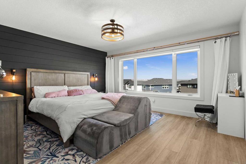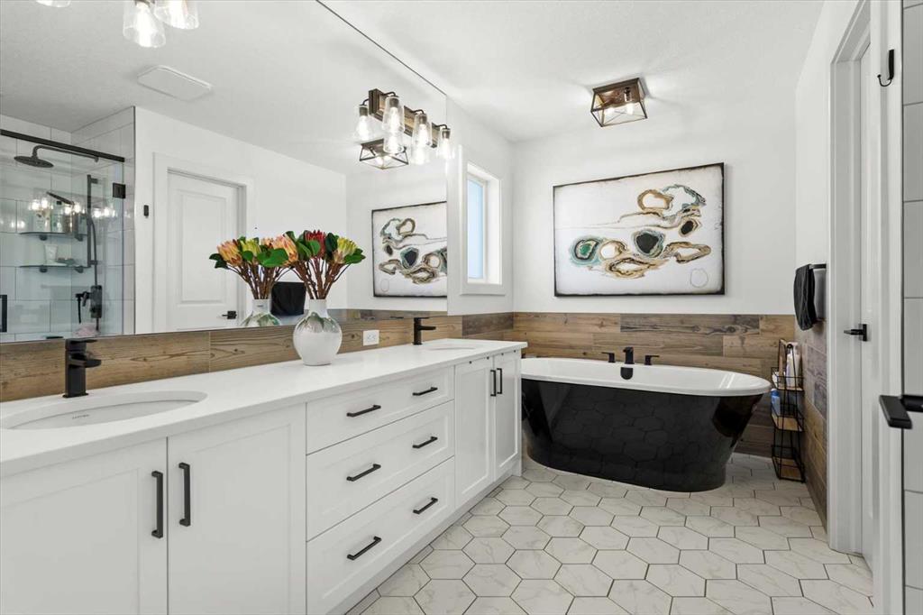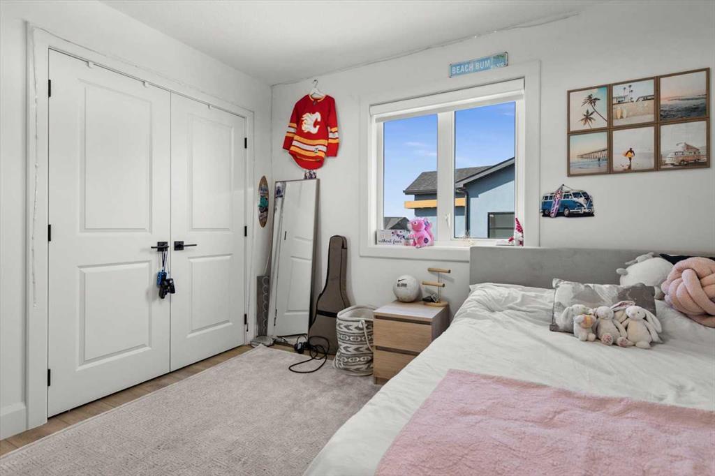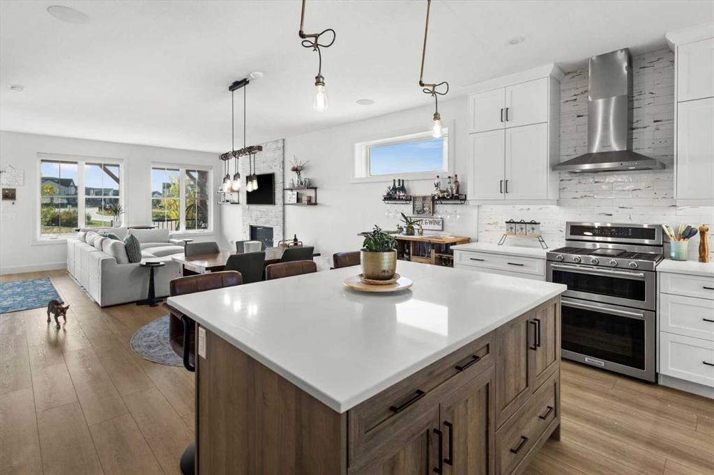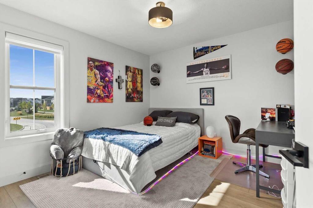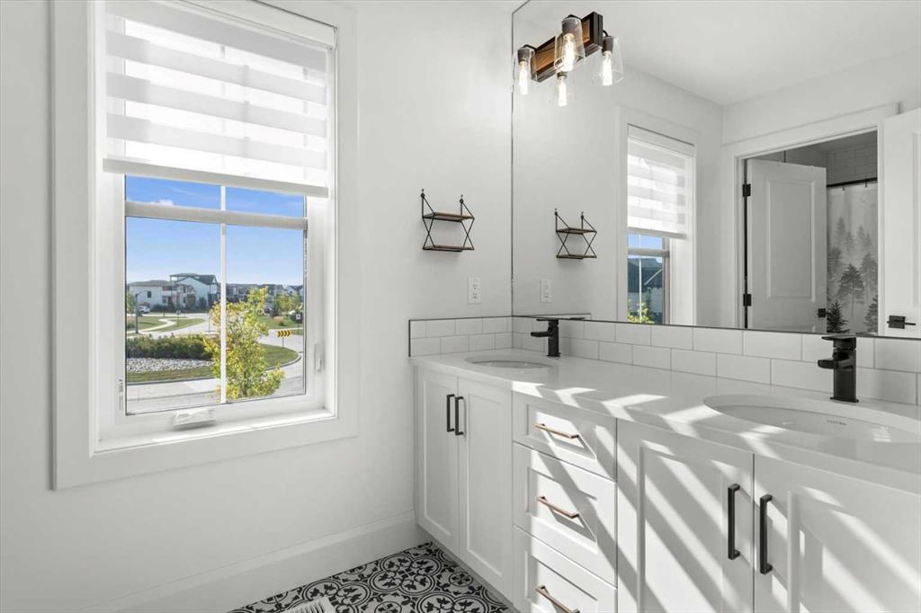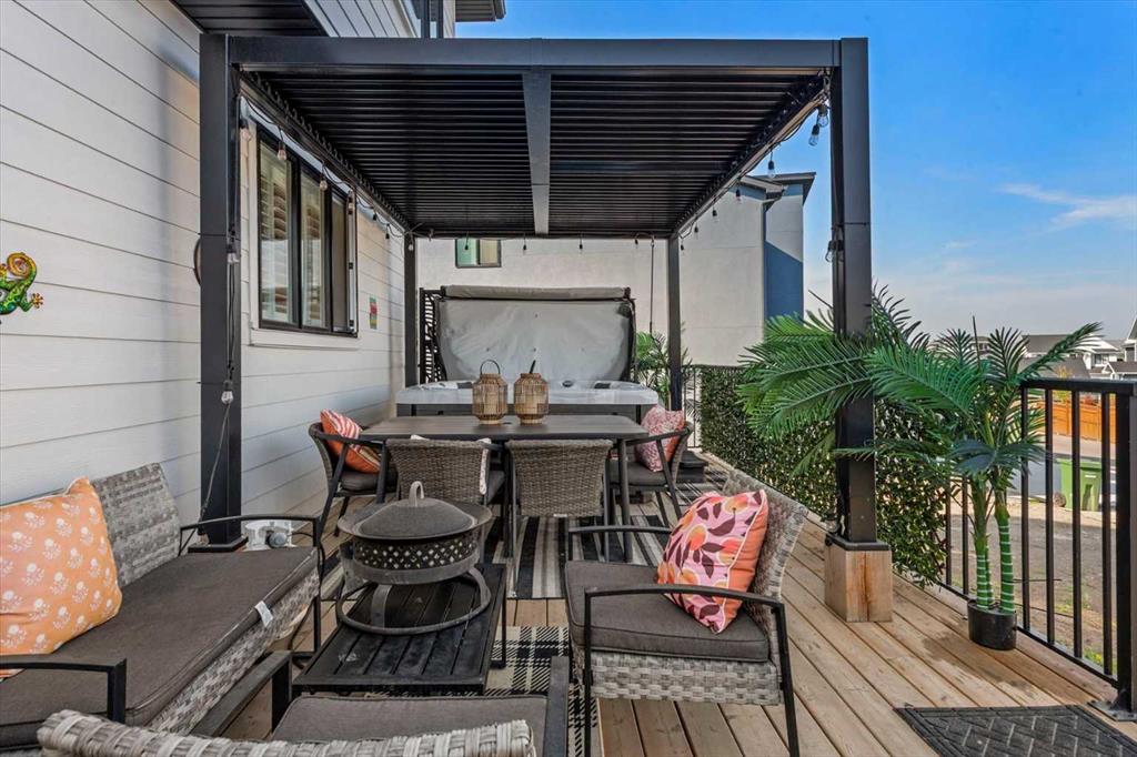 Located in the sought-after, award-winning community of Harmony, this newly built farmhouse-inspired modern design is sure to impress. With over 2,300 sq. ft. of thoughtfully designed living space and more than $40,000 in upgrades, this Broadview-built home is the perfect family retreat, complete with a double detached garage and plenty of storage options throughout. Move-in ready with thoughtfully selected upgraded finishes, it’s designed for both comfort and style. The main floor, with abundant natural light and large windows, features an open-concept living and dining area, a modern chef’s kitchen with quartz countertops, beautiful backsplash and stainless steel appliances, a private office, and a stylish powder room. Step outside to your dream oasis, a full-length deck with a custom built pergola, privacy walls, BBQ area, lounge space, outdoor lighting and hot tub—perfect for entertaining or relaxing evenings. Upstairs, a modern bonus room provides an exceptional space for relaxing, alongside two bedrooms with closet organizers, a 5-piece bathroom, and a laundry room with plenty of additional storage. The primary suite is spacious and bright with large windows, featuring a spa-inspired 5-piece ensuite with beautiful tile, a modern freestanding tub, and a large walk-in closet. The basement remains undeveloped, ready for your personal touch. Additional highlights include gemstone lighting, air conditioning, water softener, premium flooring, custom built-ins, upgraded staircase railings, and upgraded lighting and tile throughout. The yard is an open canvas awaiting your green thumb—perfect for creating your own outdoor oasis. Combined with striking curb appeal, a functional family-friendly layout, and Harmony’s exceptional amenities—including scenic lakes, pathways, golf course, and welcoming community spirit—this farmhouse-inspired home truly has it all. Conveniently located across from the school bus stop, it’s an ideal family home. VIRTUAL TOUR AVAILABLE.