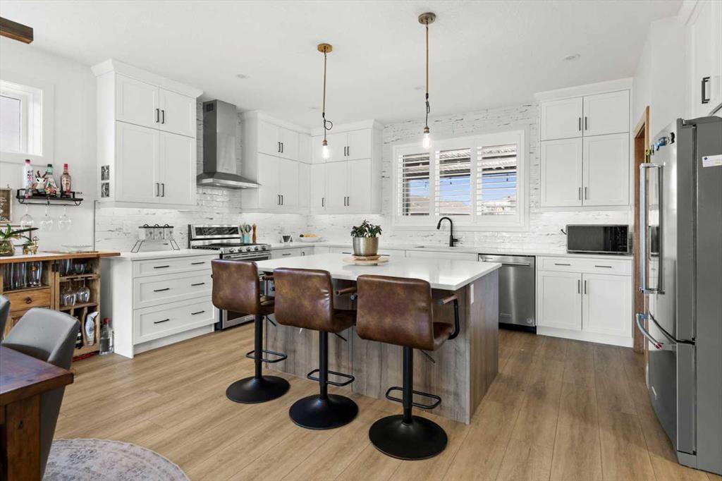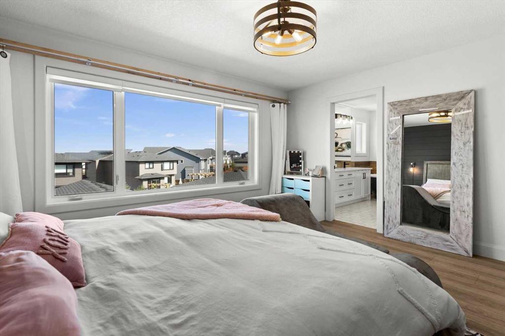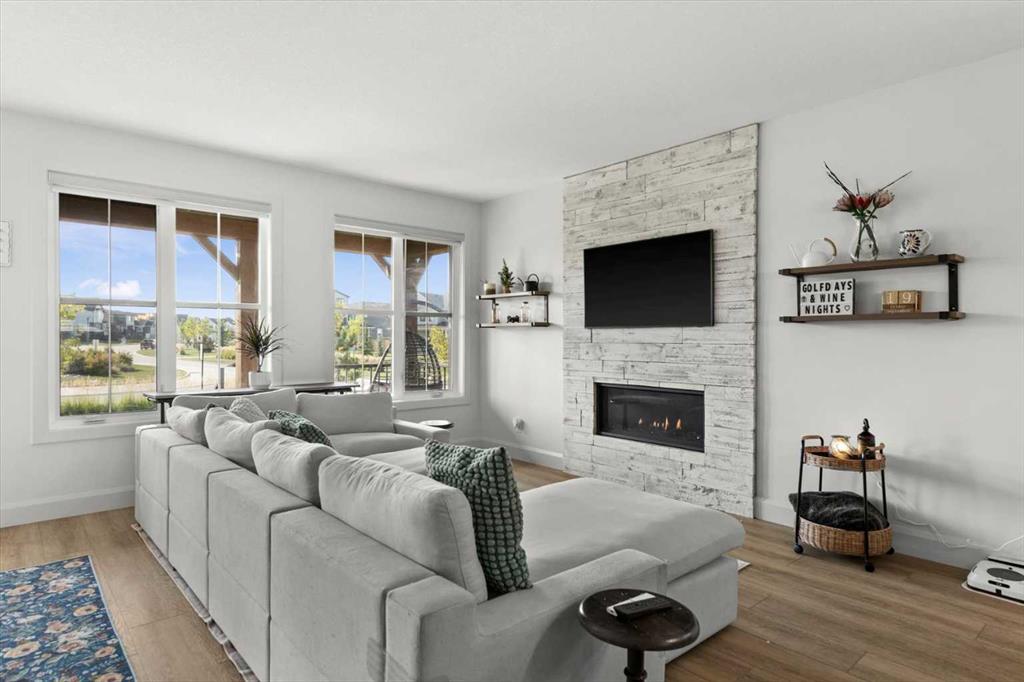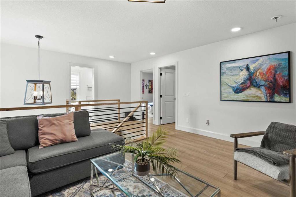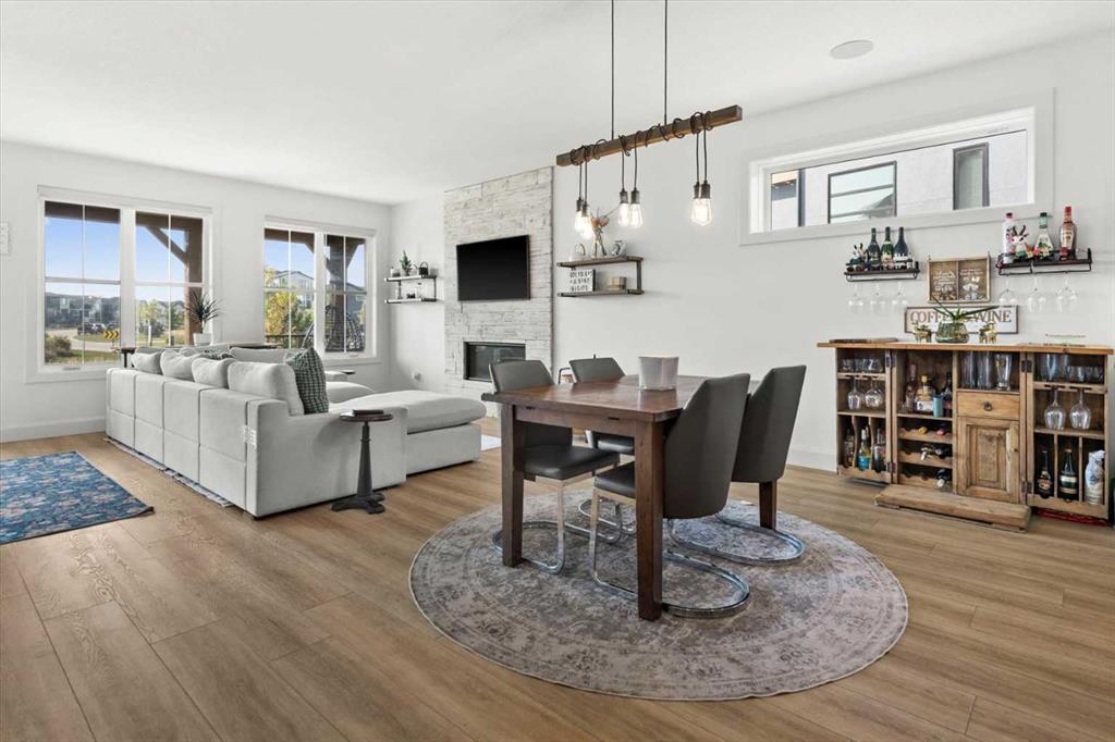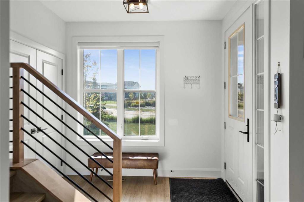 Located in the sought-after, award-winning community of Harmony, this newly built farmhouse-inspired modern design is sure to impress. With over 2,300 sq. ft. of thoughtfully designed living space and more than $40,000 in upgrades, this Broadview-built home is the perfect family retreat, complete with a double detached garage and plenty of storage options throughout. Move-in ready with thoughtfully selected upgraded finishes, it’s designed for both comfort and style. The main floor, with abundant natural light and large windows, features an open-concept living and dining area, a modern chef’s kitchen with quartz countertops, beautiful backsplash and stainless steel appliances, a private office, and a stylish powder room. Step outside to your dream oasis, a full-length deck with a custom built pergola, privacy walls, BBQ area, lounge space, outdoor lighting and hot tub—perfect for entertaining or relaxing evenings. Upstairs, a modern bonus room provides an exceptional space for relaxing, alongside two bedrooms with closet organizers, a 5-piece bathroom, and a laundry room with plenty of additional storage. The primary suite is spacious and bright with large windows, featuring a spa-inspired 5-piece ensuite with beautiful tile, a modern freestanding tub, and a large walk-in closet. The basement remains undeveloped, ready for your personal touch. Additional highlights include gemstone lighting, air conditioning, water softener, premium flooring, custom built-ins, upgraded staircase railings, and upgraded lighting and tile throughout. The yard is an open canvas awaiting your green thumb—perfect for creating your own outdoor oasis. Combined with striking curb appeal, a functional family-friendly layout, and Harmony’s exceptional amenities—including scenic lakes, pathways, golf course, and welcoming community spirit—this farmhouse-inspired home truly has it all. Conveniently located across from the school bus stop, it’s an ideal family home. VIRTUAL TOUR AVAILABLE.