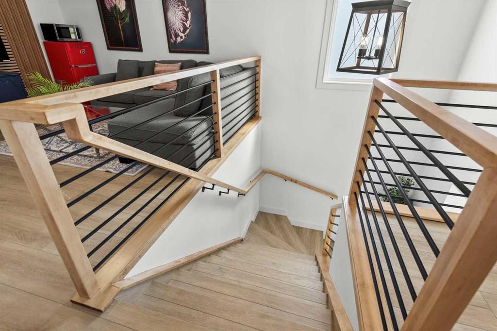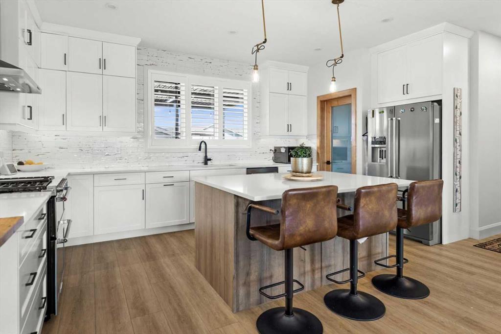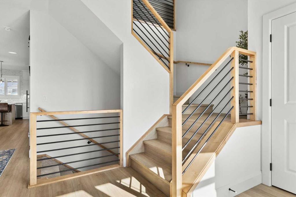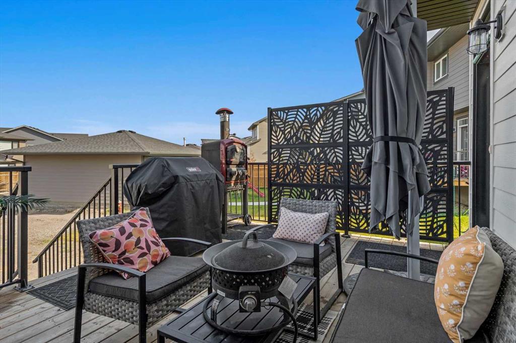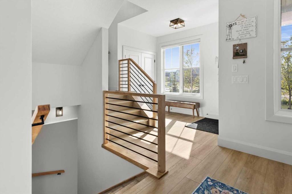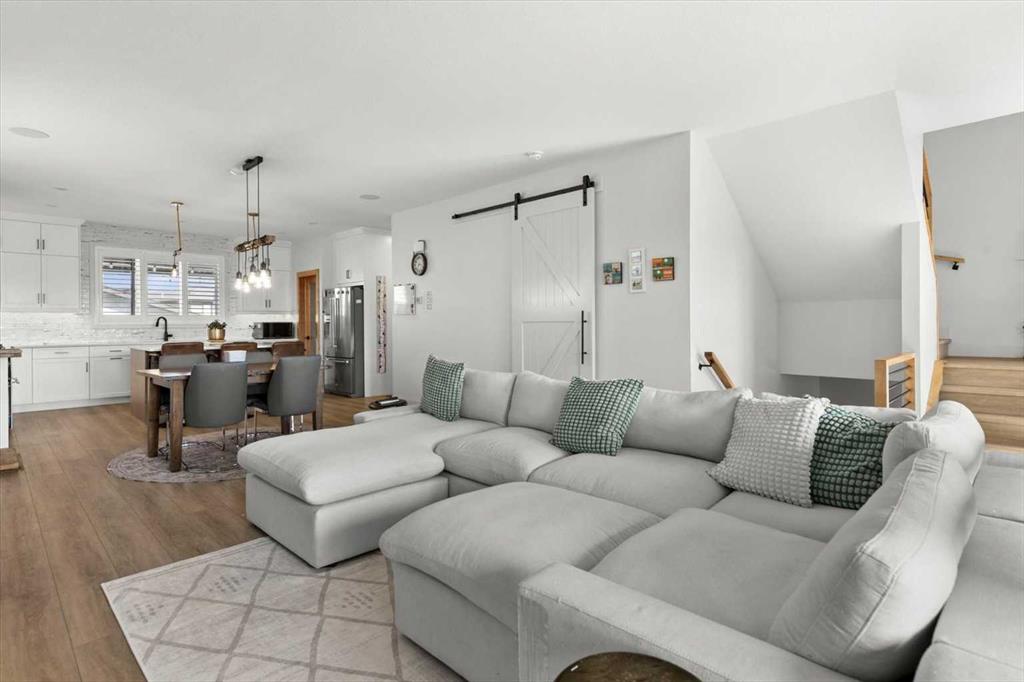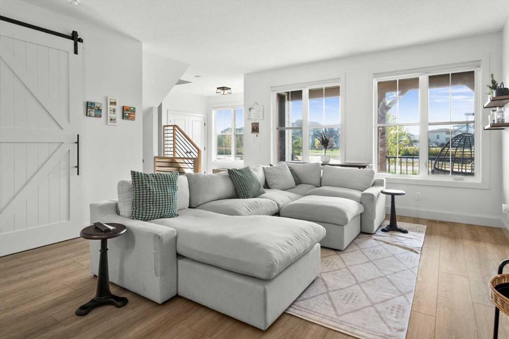 Located in the sought-after, award-winning community of Harmony, this newly built farmhouse-inspired modern design is sure to impress. With over 2,300 sq. ft. of thoughtfully designed living space and more than $40,000 in upgrades, this Broadview-built home is the perfect family retreat, complete with a double detached garage and plenty of storage options throughout. Move-in ready with thoughtfully selected upgraded finishes, it’s designed for both comfort and style. The main floor, with abundant natural light and large windows, features an open-concept living and dining area, a modern chef’s kitchen with quartz countertops, beautiful backsplash and stainless steel appliances, a private office, and a stylish powder room. Step outside to your dream oasis, a full-length deck with a custom built pergola, privacy walls, BBQ area, lounge space, outdoor lighting and hot tub—perfect for entertaining or relaxing evenings. Upstairs, a modern bonus room provides an exceptional space for relaxing, alongside two bedrooms with closet organizers, a 5-piece bathroom, and a laundry room with plenty of additional storage. The primary suite is spacious and bright with large windows, featuring a spa-inspired 5-piece ensuite with beautiful tile, a modern freestanding tub, and a large walk-in closet. The basement remains undeveloped, ready for your personal touch. Additional highlights include gemstone lighting, air conditioning, water softener, premium flooring, custom built-ins, upgraded staircase railings, and upgraded lighting and tile throughout. The yard is an open canvas awaiting your green thumb—perfect for creating your own outdoor oasis. Combined with striking curb appeal, a functional family-friendly layout, and Harmony’s exceptional amenities—including scenic lakes, pathways, golf course, and welcoming community spirit—this farmhouse-inspired home truly has it all. Conveniently located across from the school bus stop, it’s an ideal family home. VIRTUAL TOUR AVAILABLE.