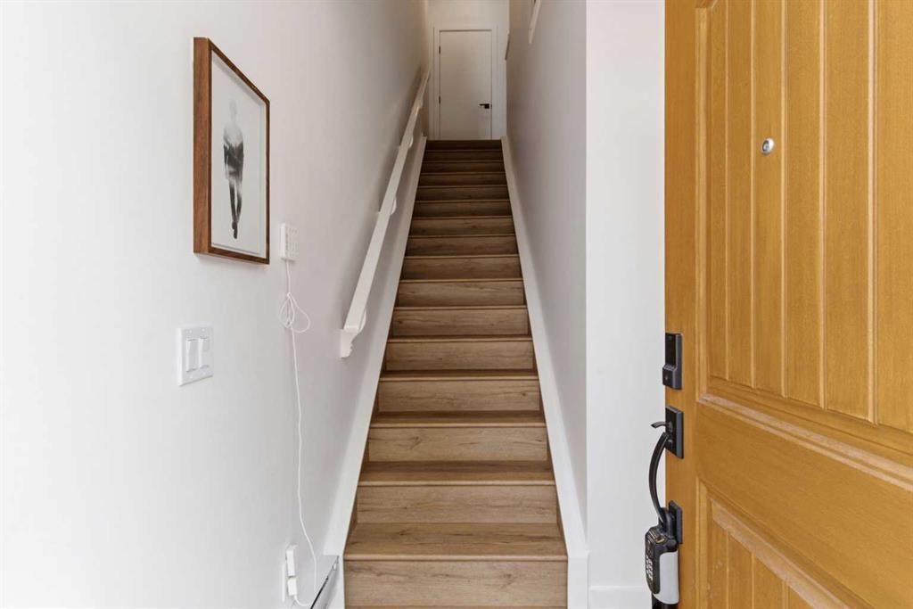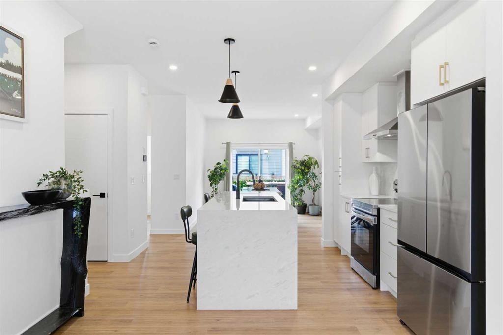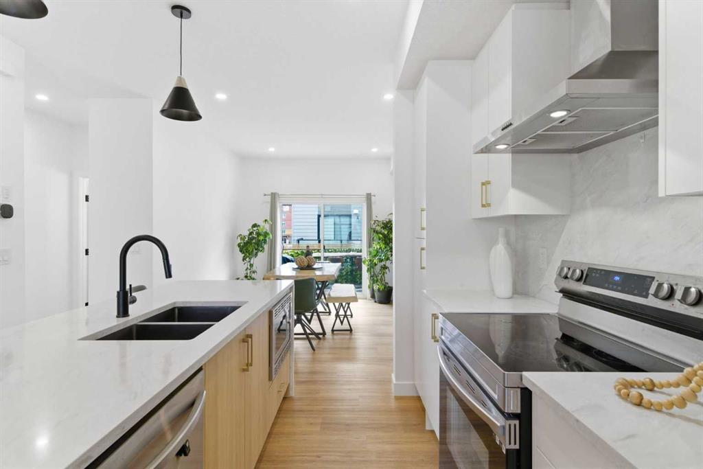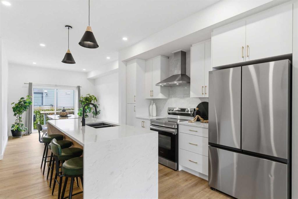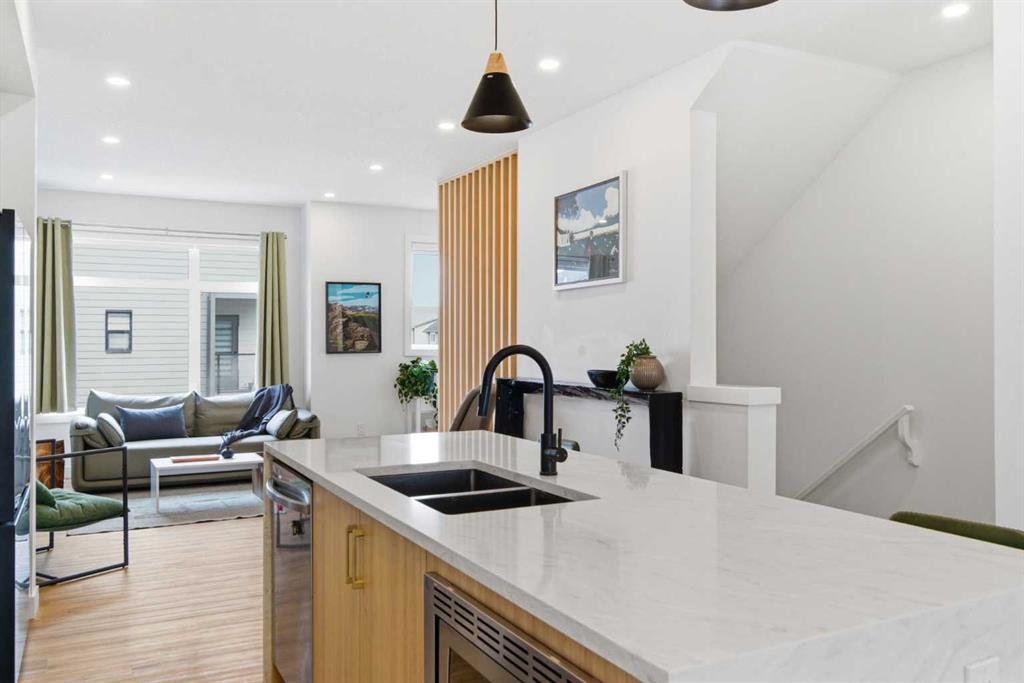 Wow – this is it! Located in the heart of Mahogany, this three-level townhome blends modern design with functionality, all within one of Calgary’s most sought-after lake communities. The entry level is where this home sets itself apart. The SINGLE ATTACHED GARAGE is finished with a clean EPOXY FLOOR and offers more than just parking, with additional STORAGE tucked neatly UNDER THE STAIRS, giving you a place for seasonal items, gear, or everyday extras that need to stay organized but out of sight. Just beyond, the OFFICE / FLEX SPACE becomes one of the most valuable areas in the home. Fully separated from the main living space, this room offers true privacy, making it ideal for working from home without distraction. It’s equally suited for a home gym, creative studio, or even a quiet guest retreat. Natural light and direct access to the lower concrete PATIO add to its versatility. Upstairs, the main living level opens into a bright, welcoming space designed for connection. The kitchen sits at the center, anchored by a stunning WATERFALL QUARTZ ISLAND that naturally becomes the place people gather. STAINLESS STEEL APPLIANCES, elegant GOLD HARDWARE, and clean finishes give the space a polished, modern feel, while LUXURY VINYL PLANK flooring ties everything together with warmth and durability. The dining area flows seamlessly onto a SOUTH-FACING BALCONY, bringing in beautiful natural light and offering the perfect spot for morning coffee & summer BBQs. On the opposite side, the living room is spacious with a custom FEATURE WALL that adds character without overwhelming the space. REMOTE CONTROLLED BLINDS & CENTRAL AIR CONDITIONING elevate daily comfort. A well-placed powder room completes the floor. The upper level is designed for rest & simplicity. The primary bedroom is complete with a WALK-IN CLOSET and a beautifully finished ENSUITE featuring QUARTZ COUNTERS, designer tile, dual vanities w/ undermount sinks & a stunning walk-in shower. The second bedroom, also offering its own WALK-IN CLOSET, is thoughtfully positioned to provide separation and flexibility for guests, roommates, or family. A second ensuite bathroom mirrors the same elevated finishes, and UPPER LEVEL LAUNDRY makes daily routines feel effortless. This home continues to stand out with features that go beyond the expected. A SINGLE GARAGE PLUS AN OUTDOOR PARKING STALL adds flexibility for multi-vehicle households or guests, while the PET FRIENDLY complex makes it easy to enjoy life here with your 4-legged companions. Living in Mahogany is where this home becomes something more. Known for its incredible LAKE ACCESS, this community offers a lifestyle that’s hard to match. Summer days can be spent paddleboarding, swimming, or relaxing on the beach, while winter brings skating and peaceful walks along the pathways. Schools, parks, shops, restaurants, and amenities are all close by, creating a neighbourhood that feels vibrant year-round. Book your showing today!