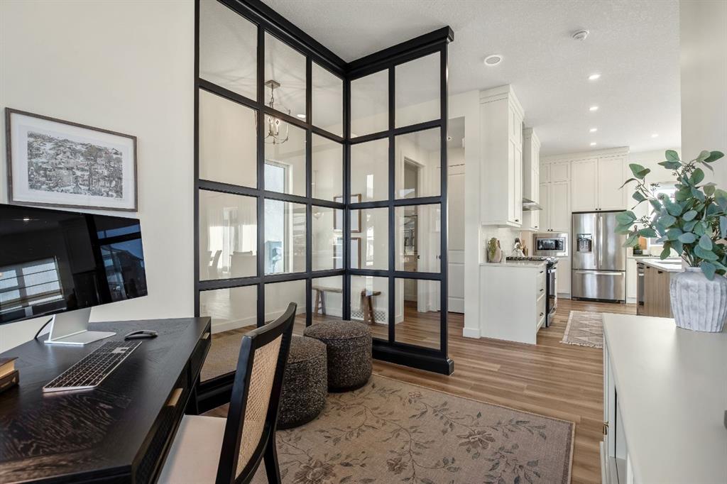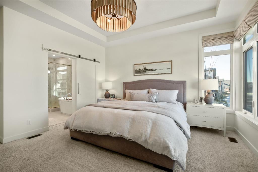 Experience the essence of luxury living in this exquisite home. Situated in the highly desirable community of Alpine Park. As you approach this residence on an oversized corner lot you will notice the great curb appeal, gemstone lights, and welcoming front porch. In like-new condition, this stunning custom-built home offers over 2,600sq. ft, an OVER SIZED TRIPLE CAR HEATED GARAGE, a South-facing fully landscaped yard with irrigation, and extensive upgrades throughout. The sophisticated design boasts soaring 10-foot ceilings on the main-floor. Highlighted by an expansive chef’s kitchen. Complete with ceiling-height shaker-style cabinets, soft-close doors and drawers, high-end upgraded appliances, and gorgeous stone counters. Around the corner is a separate coffee space, large pantry for additional storage, and mudroom leading to your convenient TRIPLE ATTACHED HEATED GARAGE with an additional bay for storage, EV ready rough-in and 220-amp service. There is direct access off the kitchen to your large low maintenance TREX deck and sun-drenched, South facing yard. The kitchen seamlessly transitions to the elegant well sized dining area with a floor to ceiling patio sliders leading to the deck creating a great indoor-outdoor space. Adjacent is the grand living room accentuated by a gas fireplace adorned with a wood mantle and millwork detail. The main level is completed with an office or playroom and a convenient powder room. As you head upstairs notice the airy open riser staircase and elegant railing. This opens to a generous family room creating a versatile space for relaxing, watching movies, or spending quiet evenings together. There are 9-foot ceilings throughout this level, which includes two well sized bedrooms, a 5pc main bath with stone counters, and a convenient upper-level laundry room with sink rough in, all situated away from the Primary retreat. The primary retreat serves as a tranquil sanctuary, boasting a tray ceiling detail, walk-in closet, and luxurious ensuite, complete with a freestanding soaking tub including MOUNTAIN VIEWS, a generously sized fully tiled shower, and a private water closet. The unfinished lower level is ready for your creativity with oversized windows, 9’ ceilings, bathroom and bar rough ins. Enjoy the comforts of air conditioning, custom drapes, designer lights, upgraded plumbing fixture, and triple pane windows. Easy access to the mountains, via Stoney trail, downtown 20 minutes away, and 5 minutes to Costco and shopping This estate home is a rare find with no neighbour beside you. Don’t miss this opportunity—schedule your private showing today or explore the virtual tour!