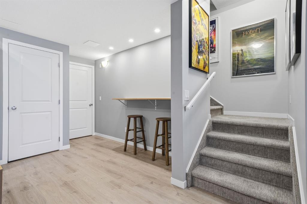 The fully developed walkout basement extends the living space with a three piece bathroom featuring in floor heating, along with enhanced soundproofing in both the ceiling and flooring, ideal for media, guests, or a quiet retreat or “Man Cave”.