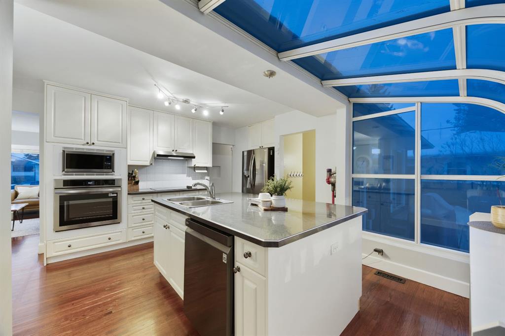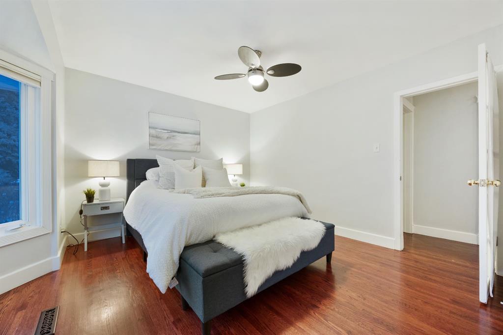 Welcome to this charming bungalow with over 2100 sq.feet of living space, located on a quiet street in the highly sought after community of Glamorgan- just moments away from one of Calgary’s top TLC Schools, parks, pathways and just a short walk to the iconic Glamorgan Bakery (home of the famous cheese bun)! Thid home features 4 bedrooms and 2 full bathrooms with 3 bedrooms conveniently located on the main floor. This main level showcases beautiful REAL hardwood floors, large windows that fill the space with natural light and an open concept kitchen with direct access to the back yard. The lower level includes an additional bedroom with a huge walk in closet, and an ensuite bathroom. This level also has a large rec room, perfect for a gym, media space or even a 5th bedroom! Outside you will find a huge private yard complete with a brick patio, detached garage AND an additional parking pad! This home has been extremely well maintained with the roof replaced in 2018, the water tank replaced in 2020, updated appliances, custom built ins and much more. Whether you are looking for move in ready, or an investment property with renovation potential, this property offers exceptional value in a prime location.